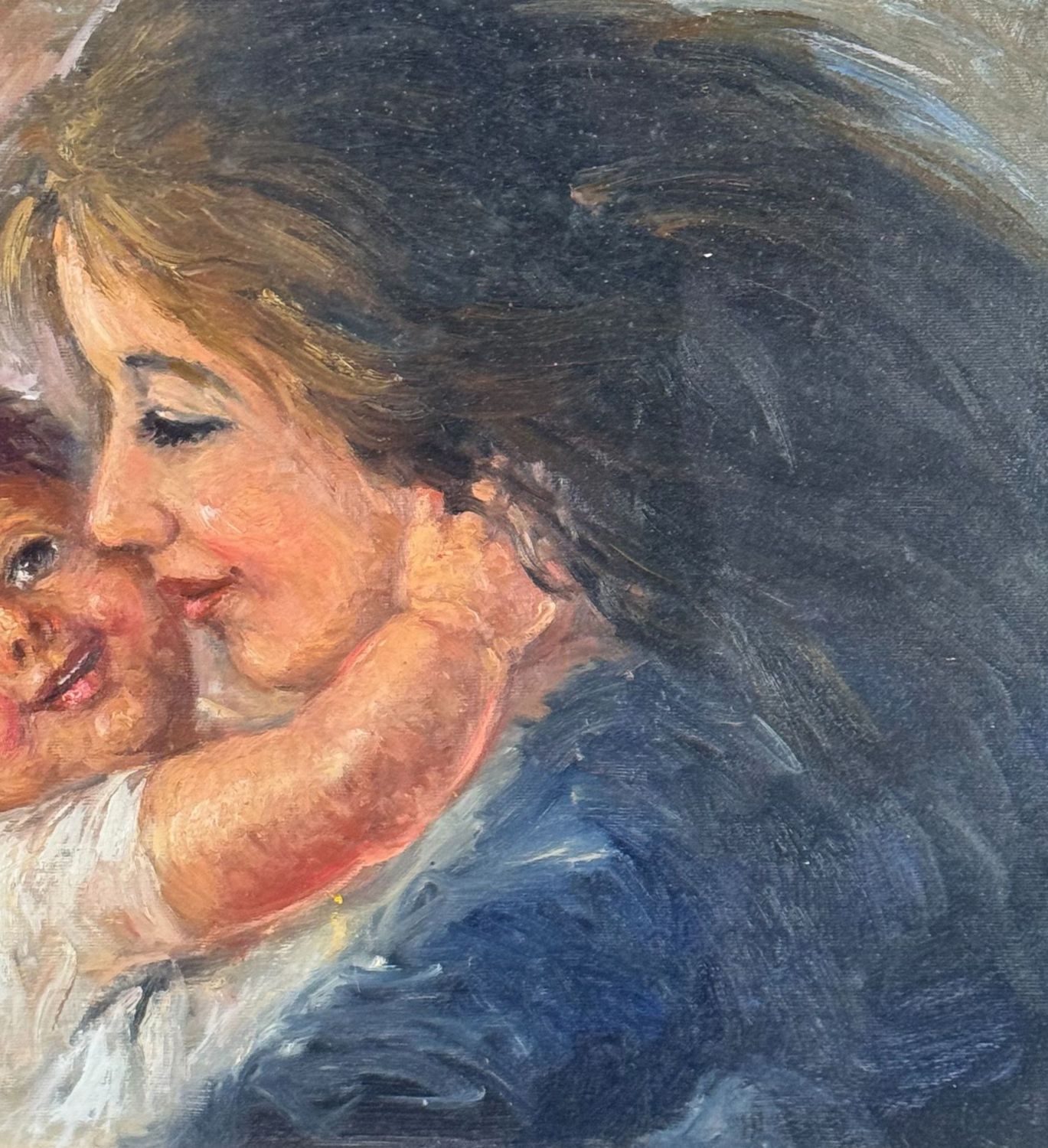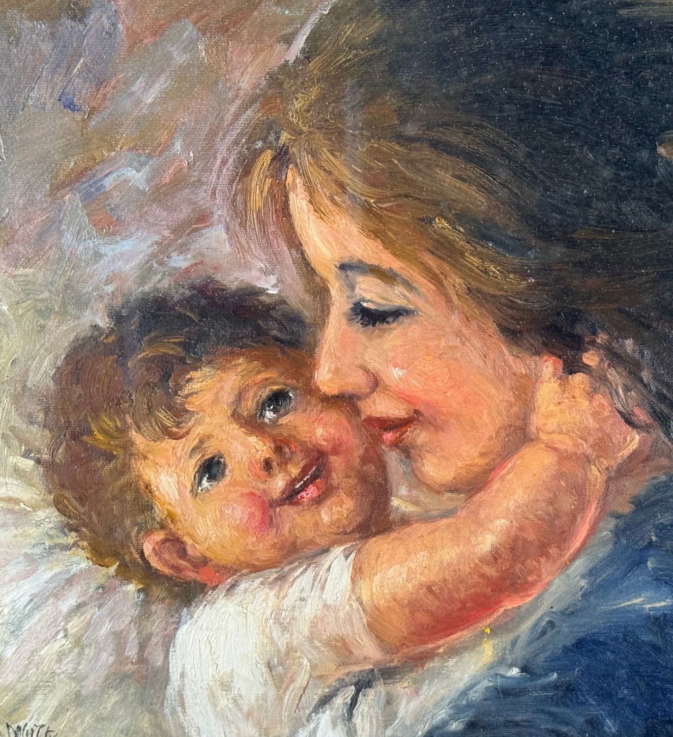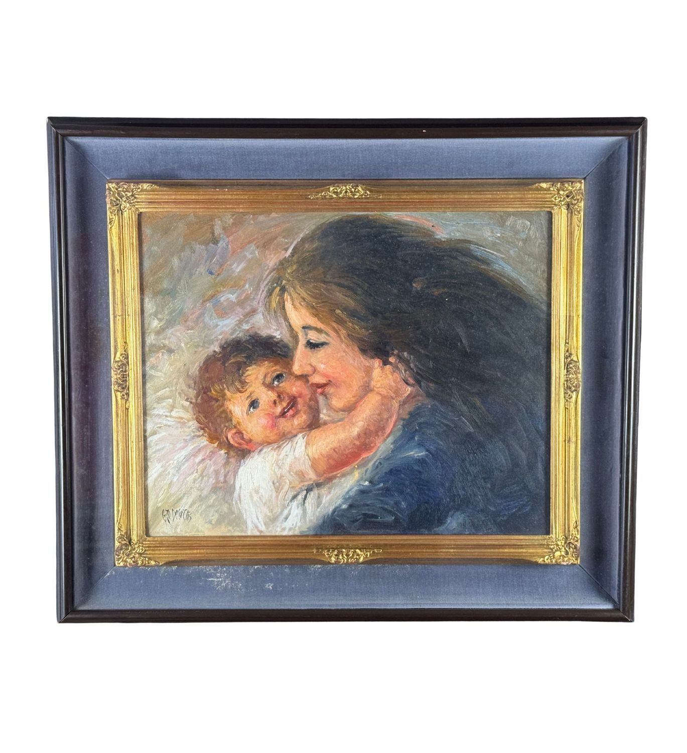 DE CURTIS - Dipinto olio su tela, periodo XX secolo, scuola Italiana, raffigurante Ritratto di scena materna. Dimensioni compreso cornice: 70x60. Dimensioni interno cornice: 40x50 cm. Firmato in basso a sinistra De Curtis. Opera in buone condizioni.