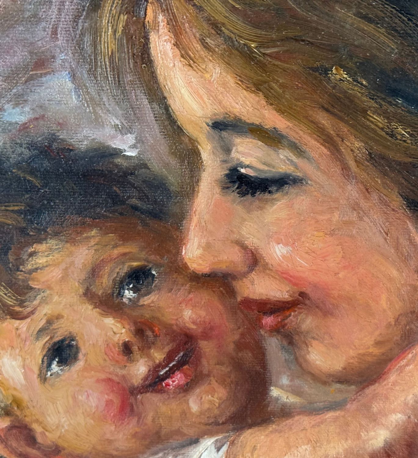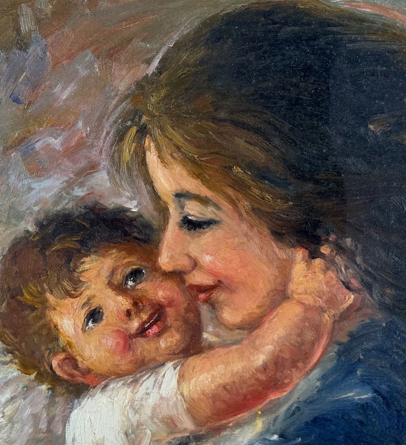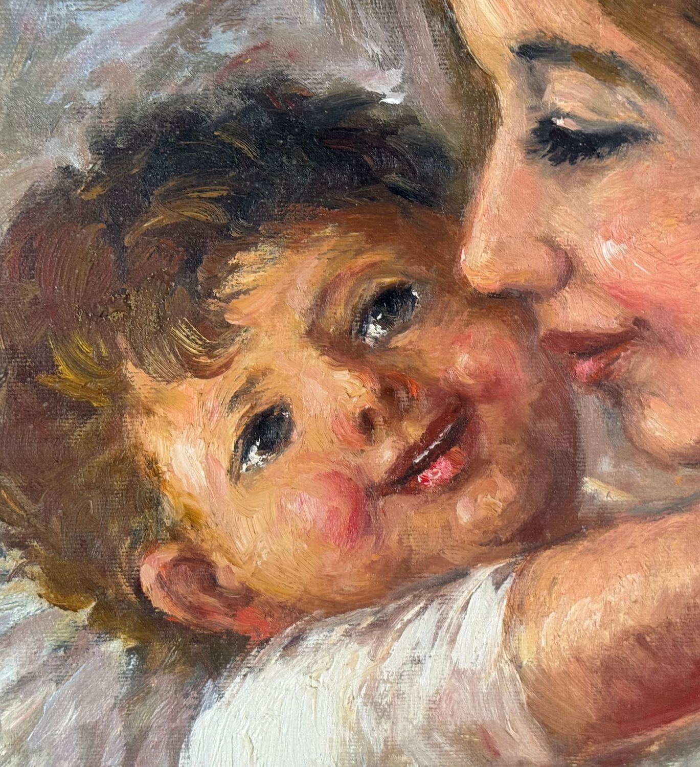DE CURTIS - Dipinto olio su tela, periodo XX secolo, scuola Italiana, raffigurante Ritratto di scena materna. Dimensioni compreso cornice: 70x60. Dimensioni interno cornice: 40x50 cm. Firmato in basso a sinistra De Curtis. Opera in buone condizioni.