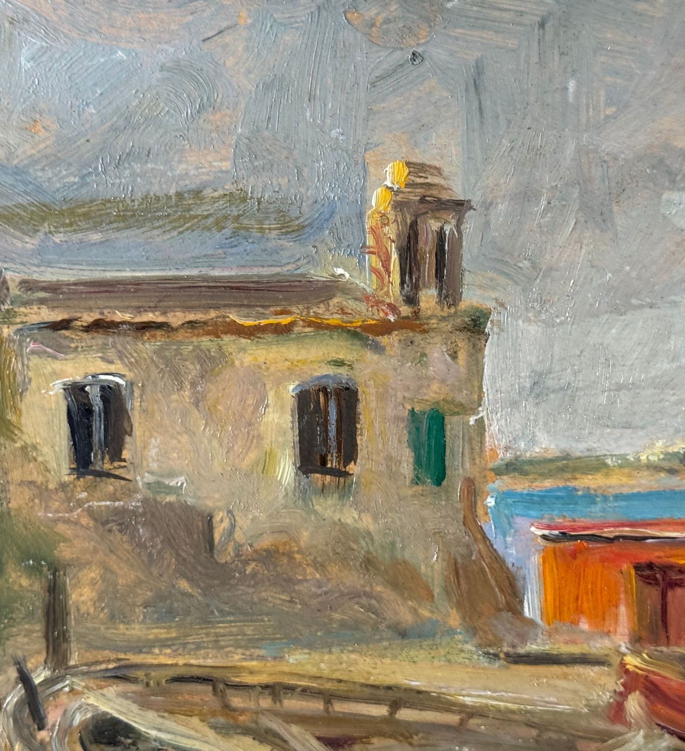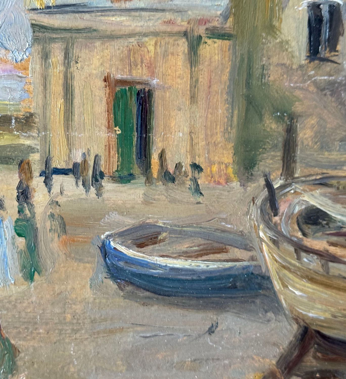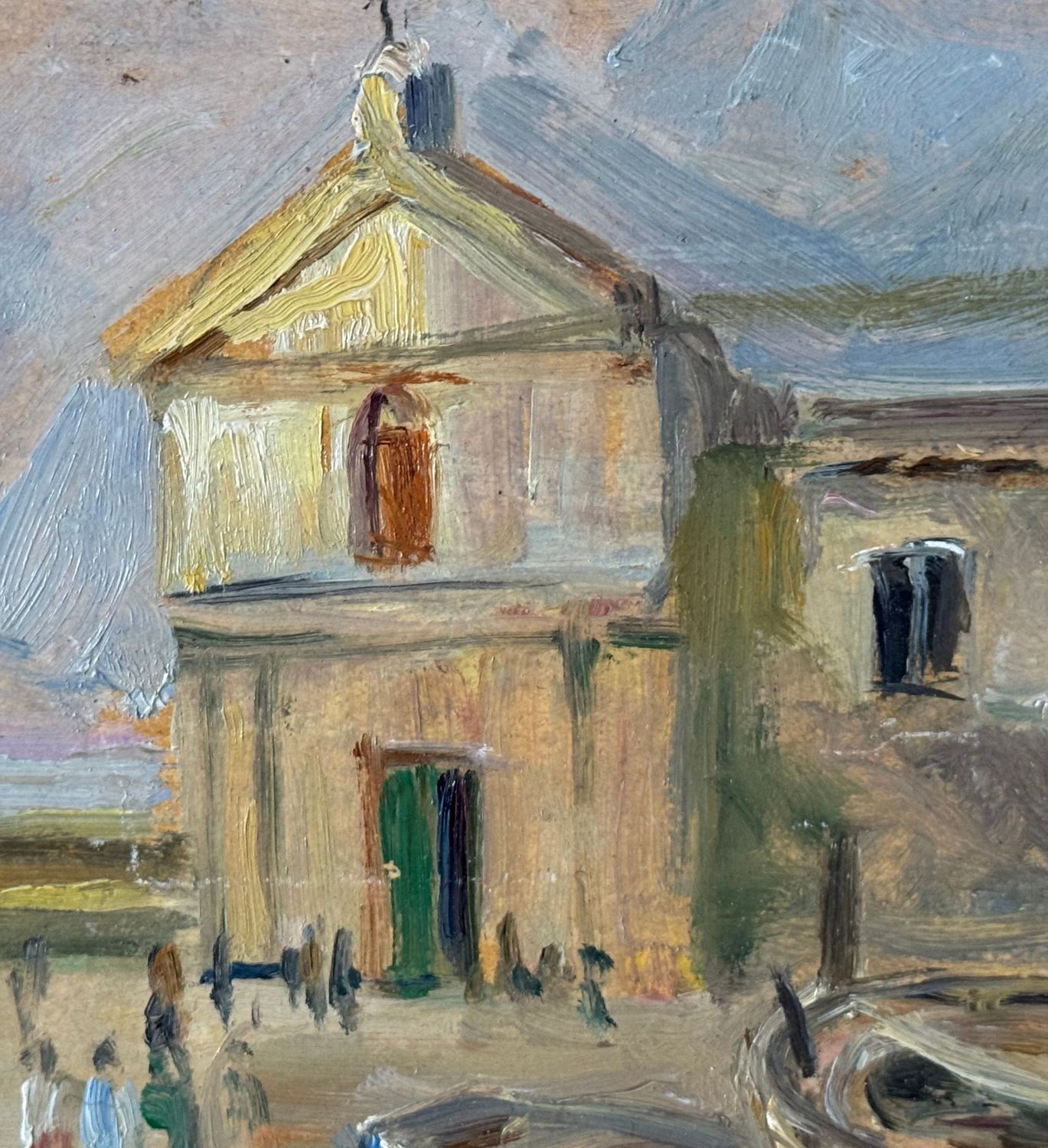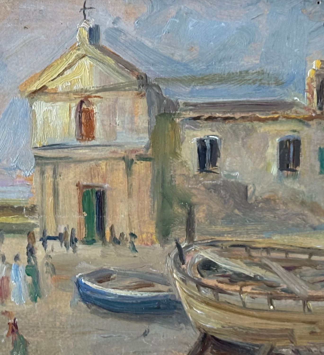 ANGELA CARUGATI - Dipinto olio su pannello, periodo XX secolo, scuola Italiana, raffigurante Scorcio di marina con chiesetta e barche. Dimensioni compreso cornice: 42x30 cm. Dimensioni interno cornice: 34x21 cm. Firmato in basso a destra Angela Carugati. Opera in buone condizioni.