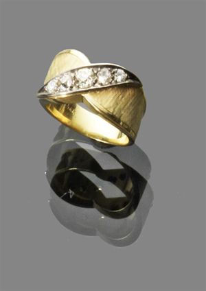ANELLO Anello in oro giallo titolo 14 kt con diamanti vecchio taglio per complessivi ct 0,55 ca Peso gr 7,60 14 kt yellow gold ring with antique cut diamonds approx totaling 0,55 kt Weight 7.60 gr