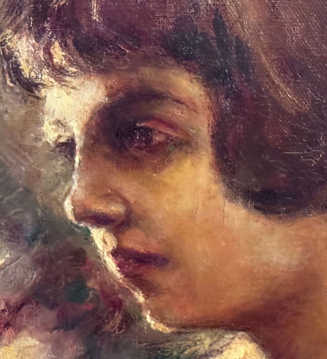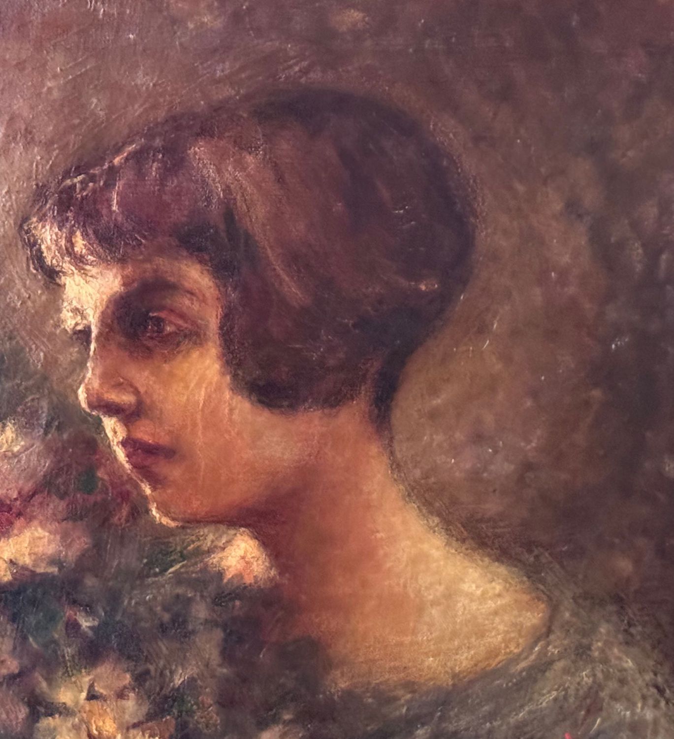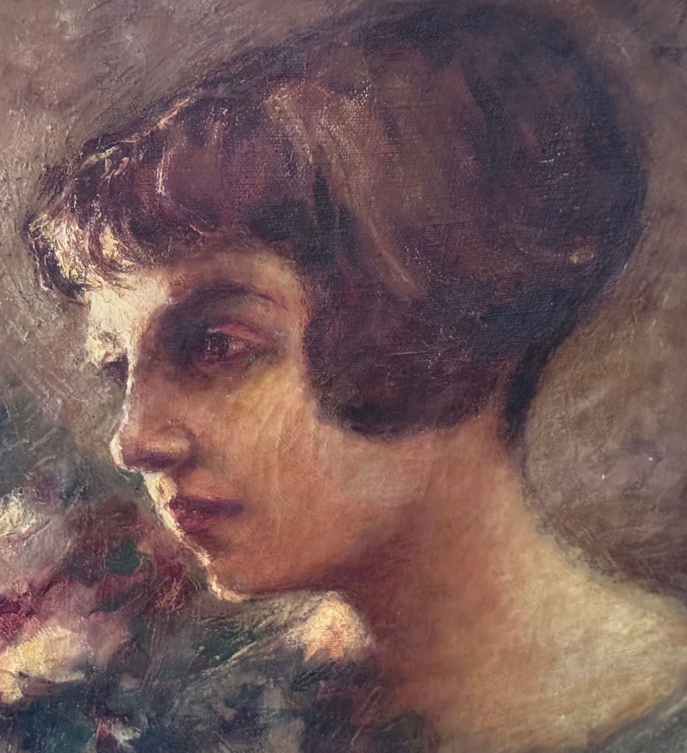 Giuseppe Ferrari - Dipinto olio su tela, periodo XX secolo, scuola Italiana, raffigurante Ritratto di donna con fiori. Dimensioni compreso cornice: 57x63 cm. Dimensioni interno cornice: 41x48 cm. Firmato in basso a destra Giuseppe Ferrari. Opera in buone condizioni con lievi segni di vissuto come da foto allegate.