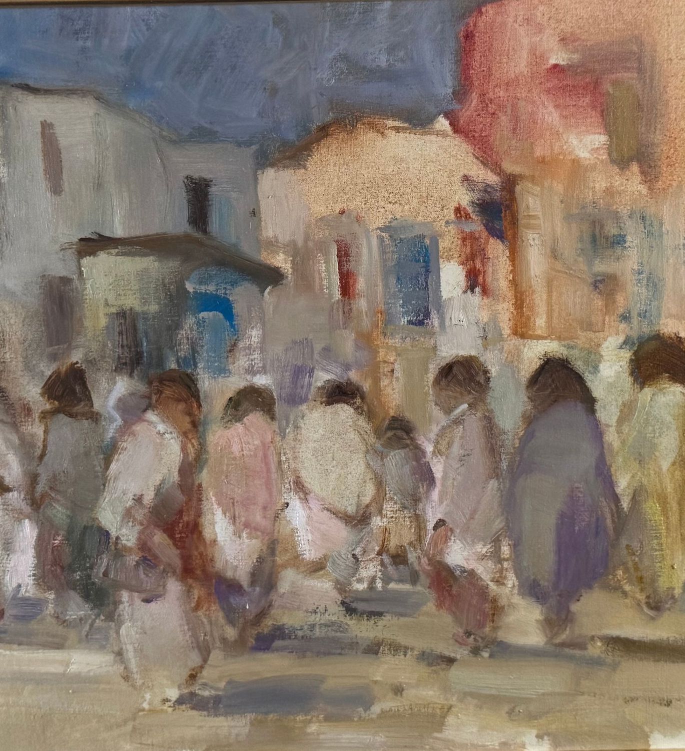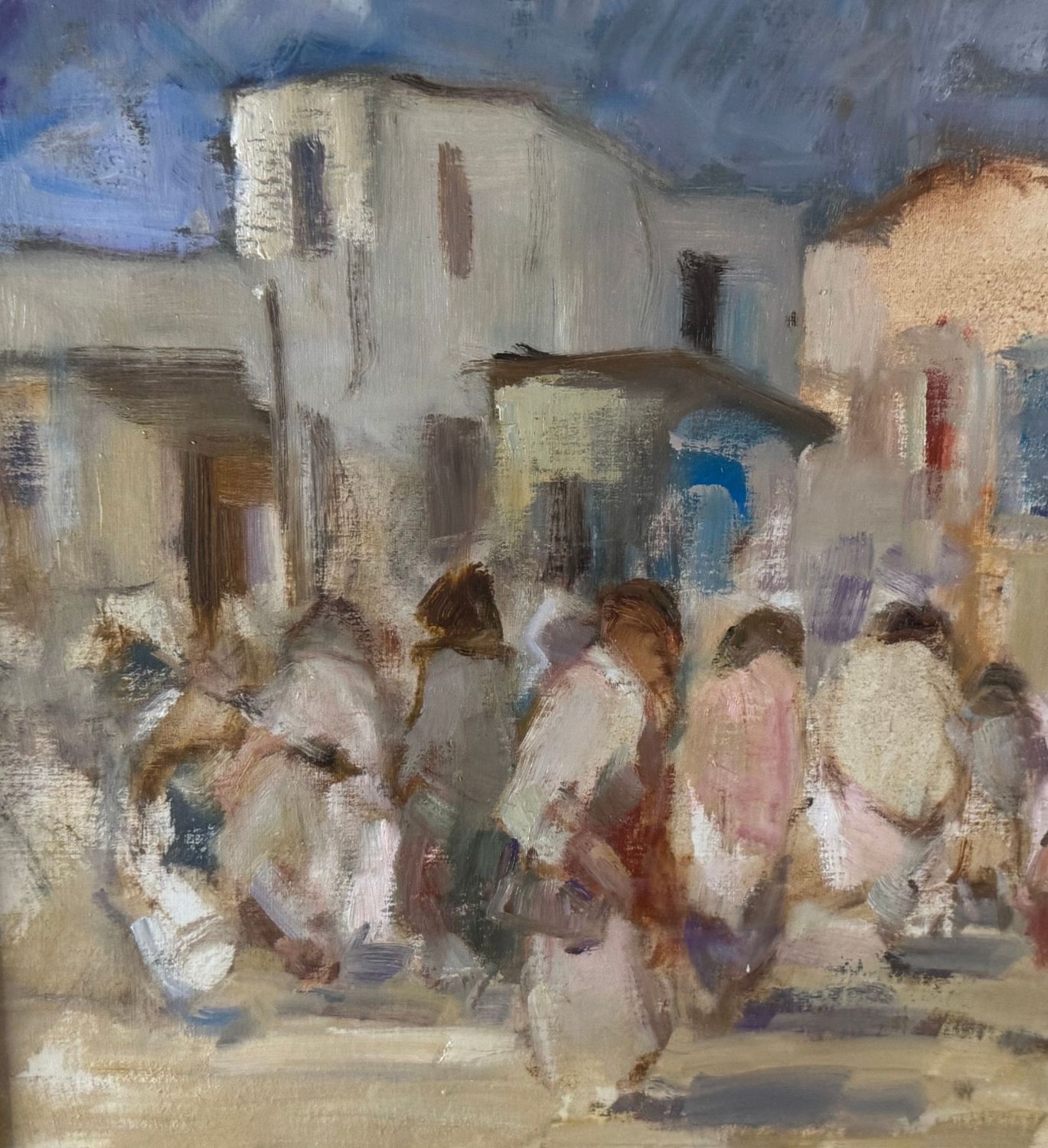 Michele D'Aniello - Dipinto olio su tavola, periodo XX secolo, scuola Italiana, raffigurante Personaggi. Dimensioni compreso cornice: 84x64 cm. Dimensioni interno cornice: 57x37 cm. Firmato in basso a destra Michele D'Aniello. Opera in buone condizioni.