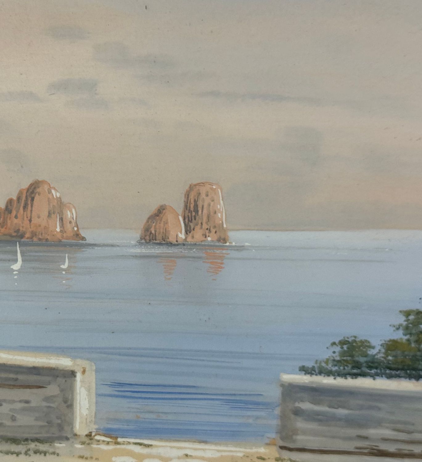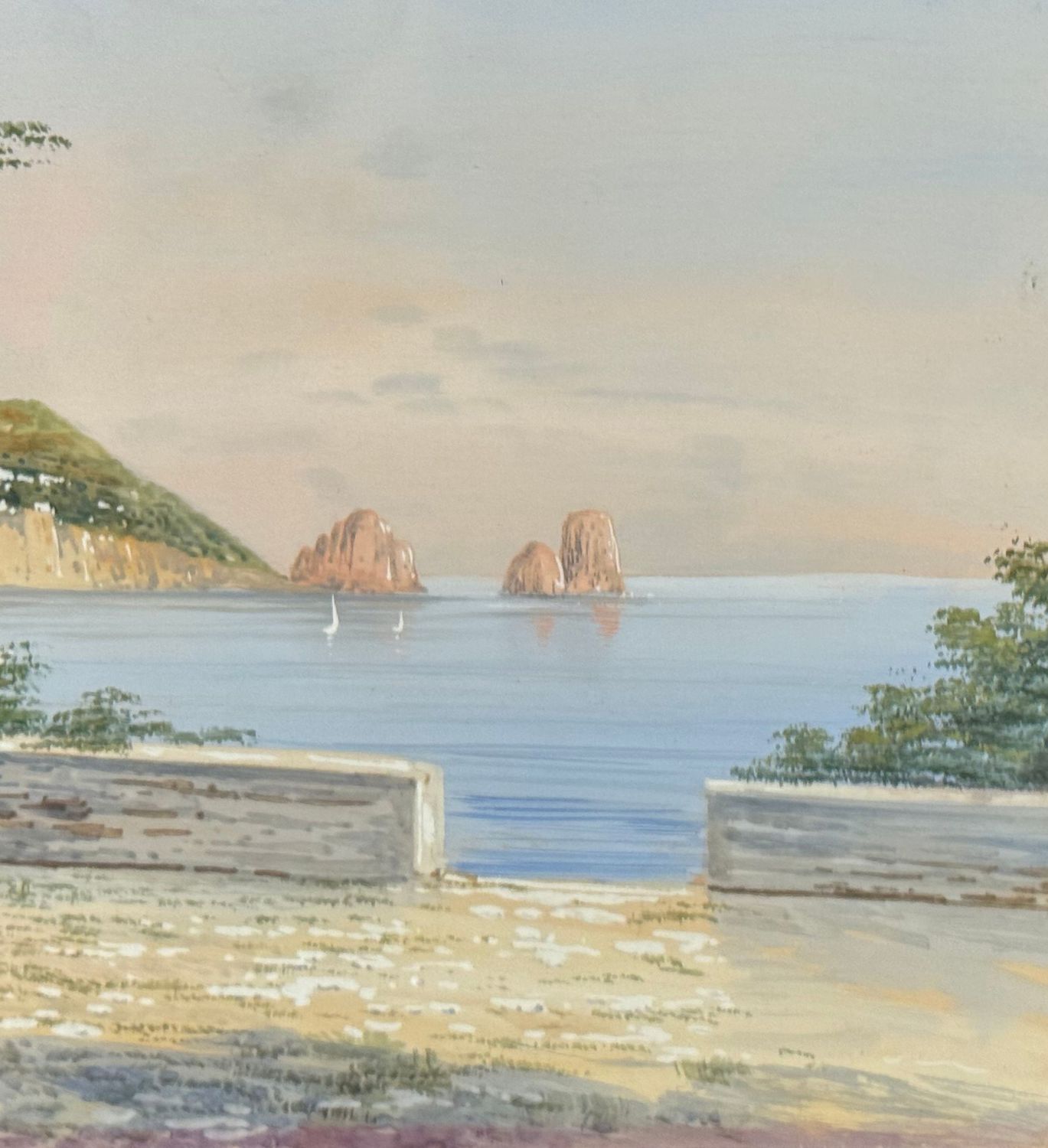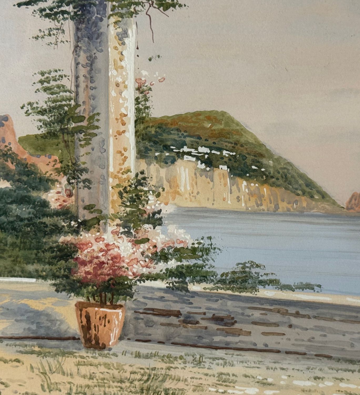 UNIDENTIFIED SIGNATURE - Dipinto acquerello su carta, periodo XX secolo, scuola Italiana, raffigurante Scorcio di Capri. Dimensioni compreso cornice: 47x38 cm. Dimensioni interno cornice: 34x24 cm. Firmato in basso a sinistra artista non identificato. Opera in buone condizioni e eccelente qualità artistica. Finemente incornicato.