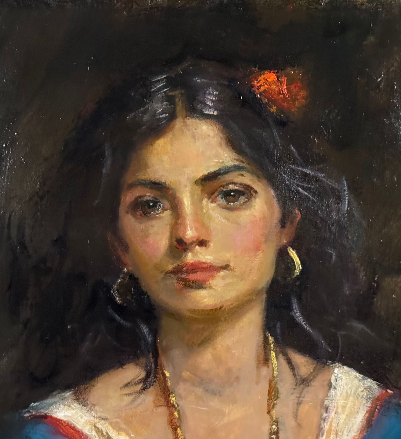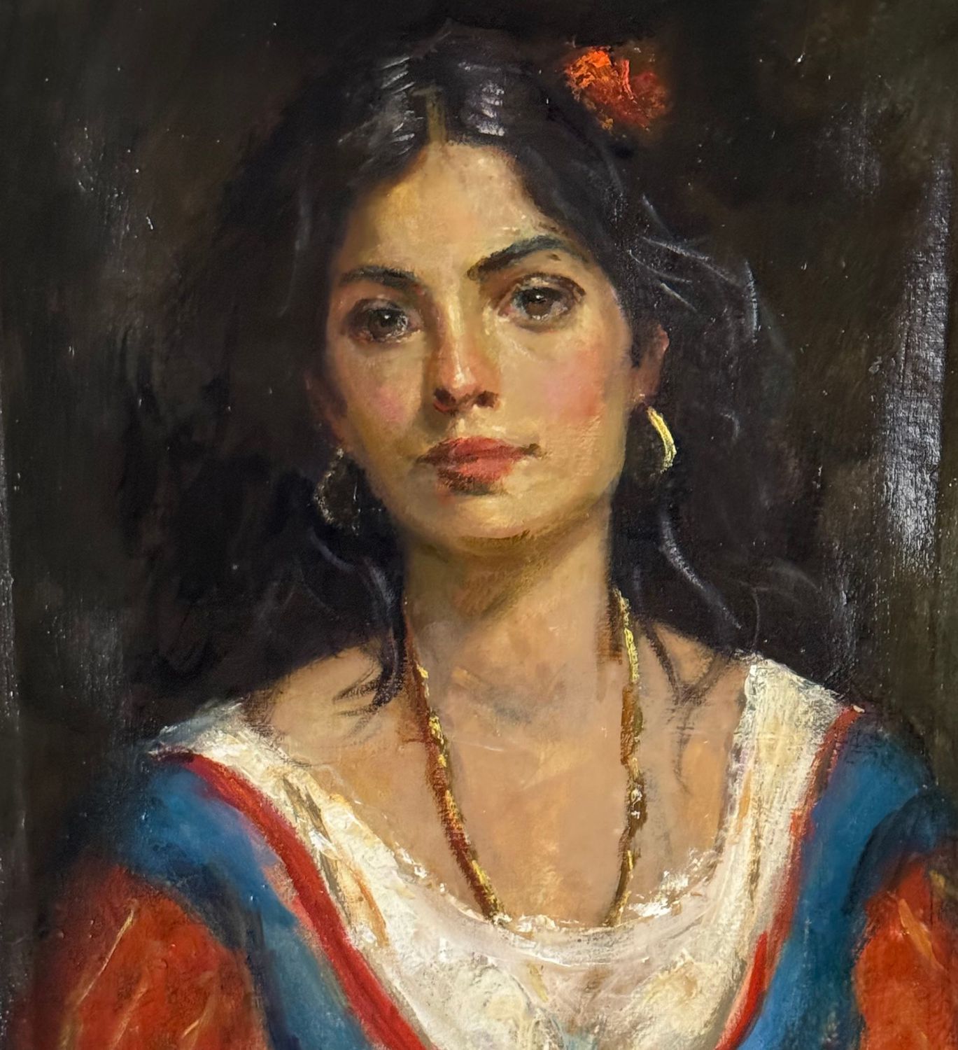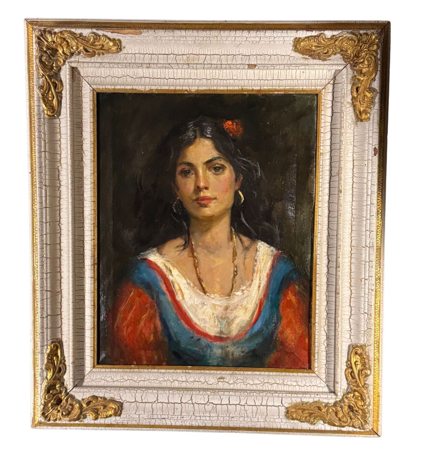 ANONIMO - Dipinto olio su tela, periodo XX secolo, scuola Italiana raffigurante Ritratto di Gitana. Dimensioni compreso cornice: 64x74 cm. Dimensioni interno cornice: 40x50 cm. Da artista anonimo. Opera in buone condizioni.