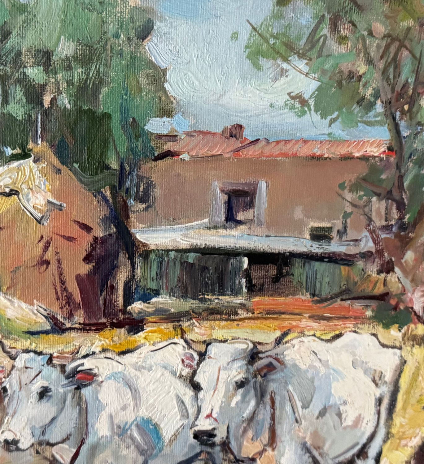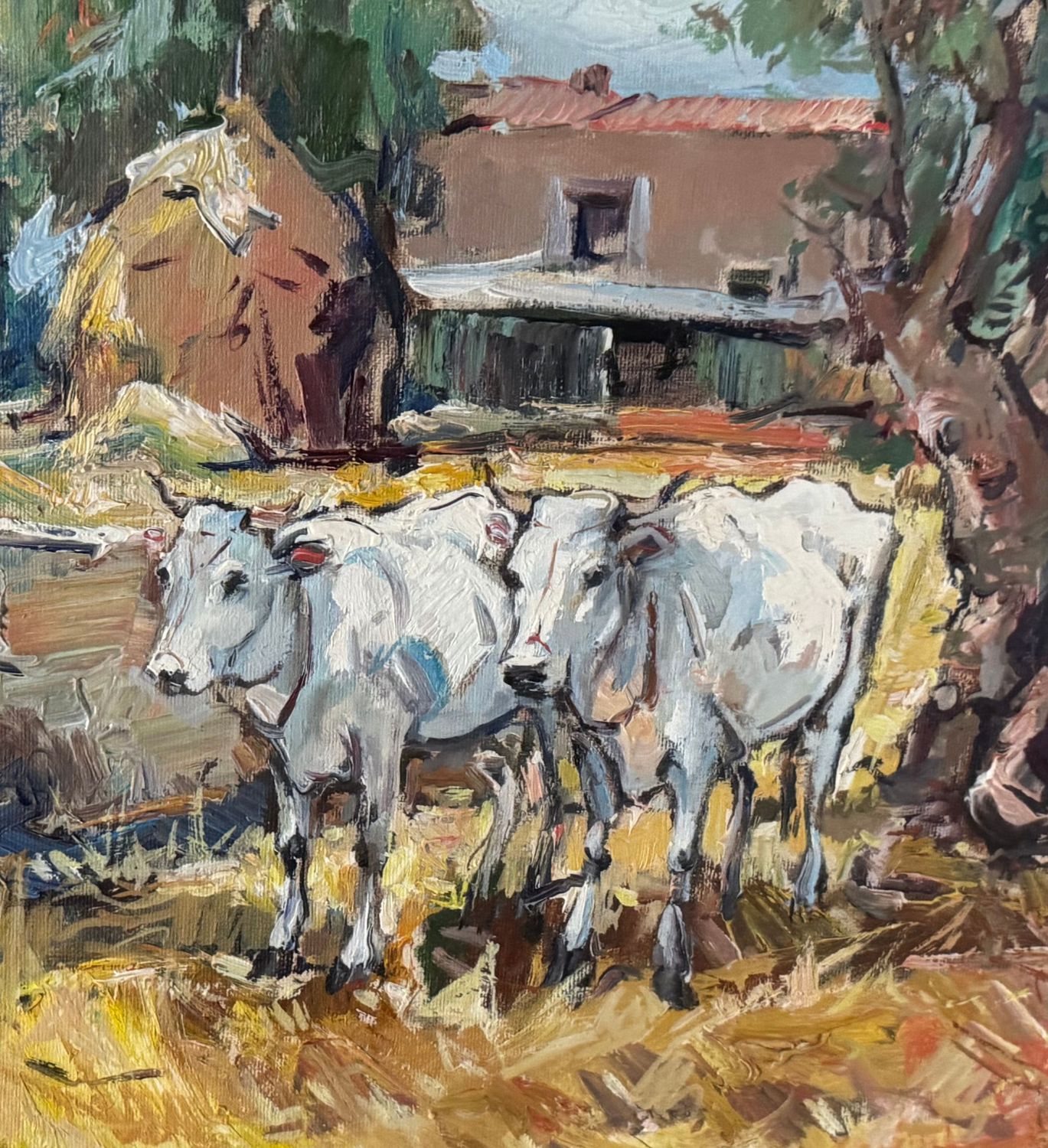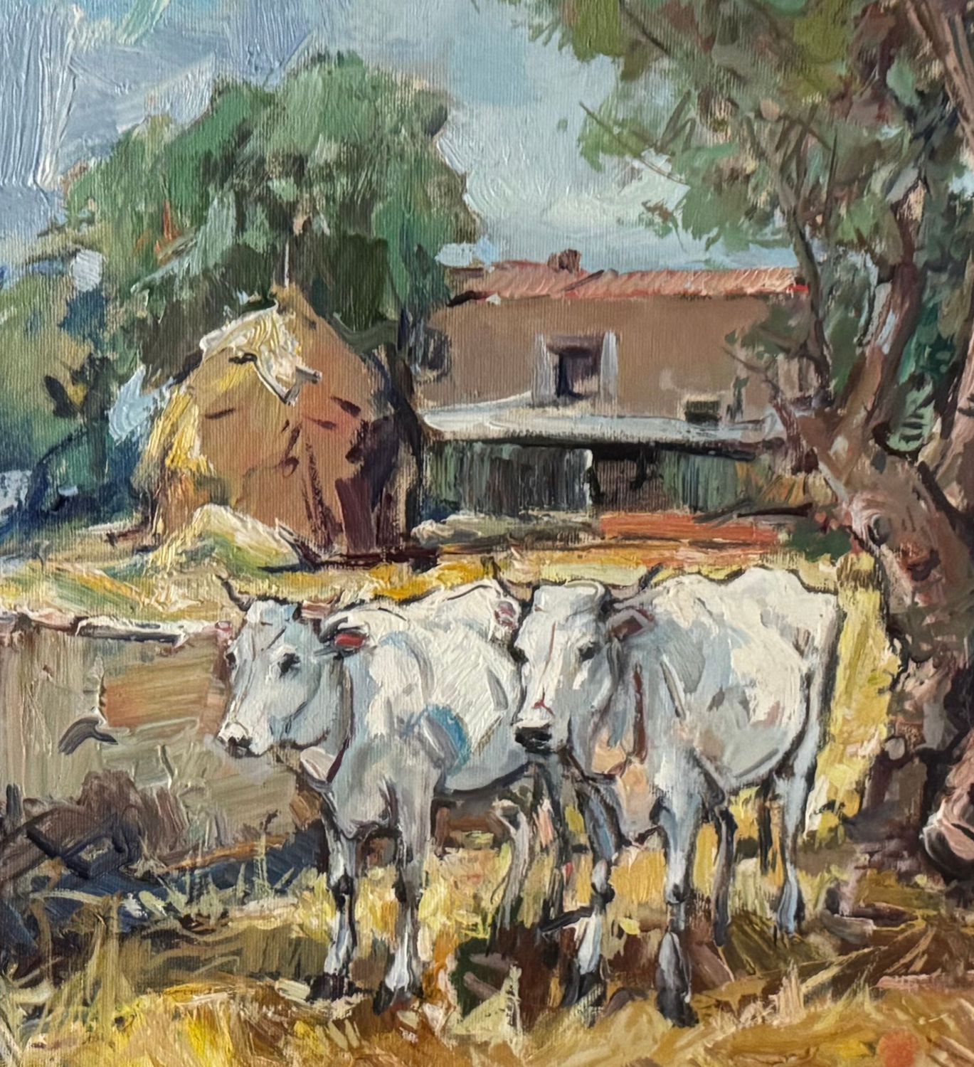 NICOLA CANZANELLA - Dipinto olio su tela, periodo XX secolo, scuola Italiana, raffigurante Fattoria con bestiame. Dimensioni compreso cornice: 78x68 cm. Dimensioni interno cornice: 50x40 cm. Firmato in basso a destra Nicola Canzanella. Opera in buone condizioni.