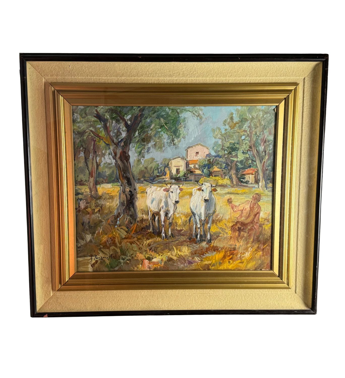 NICOLA CANZANELLA - Dipinto olio su tela, periodo XX secolo, scuola Italiana, raffigurante Paesaggio con contadino e gregge. Dimensioni compreso cornice: 78x88 cm. Dimensioni interno cornice: 50x60 cm. Firmato in basso a sinistra Nicola Canzanella. Opera in buone condizioni e di eccellente qualità artistica.