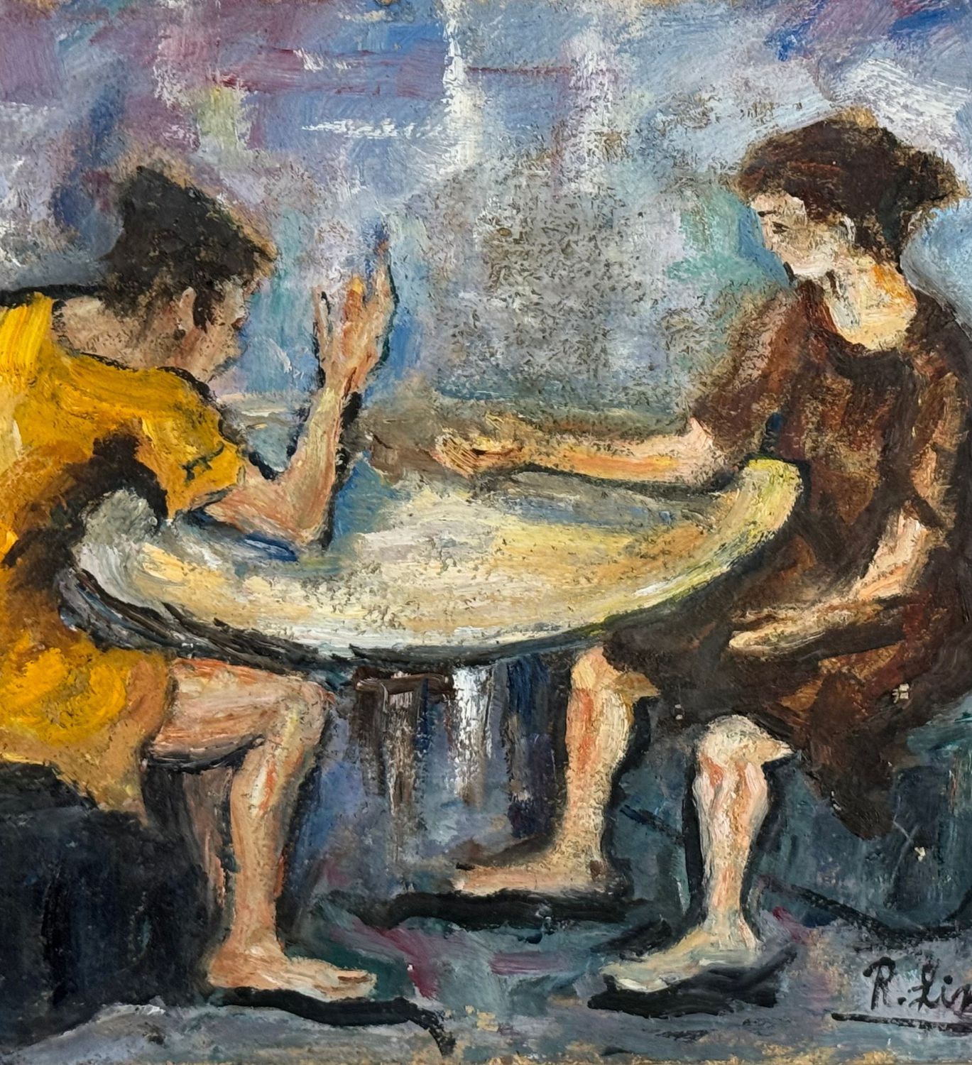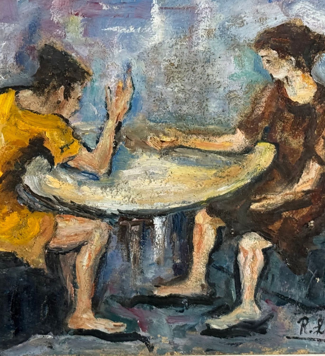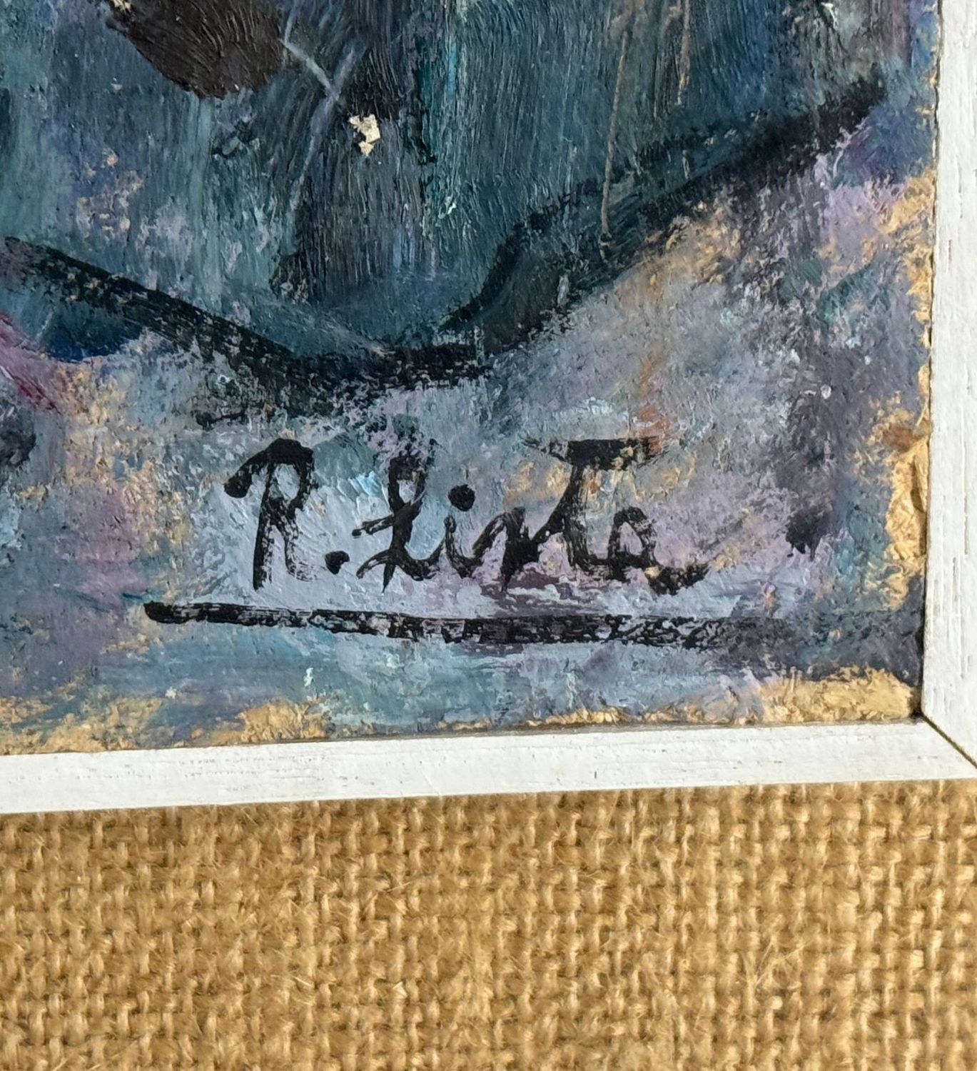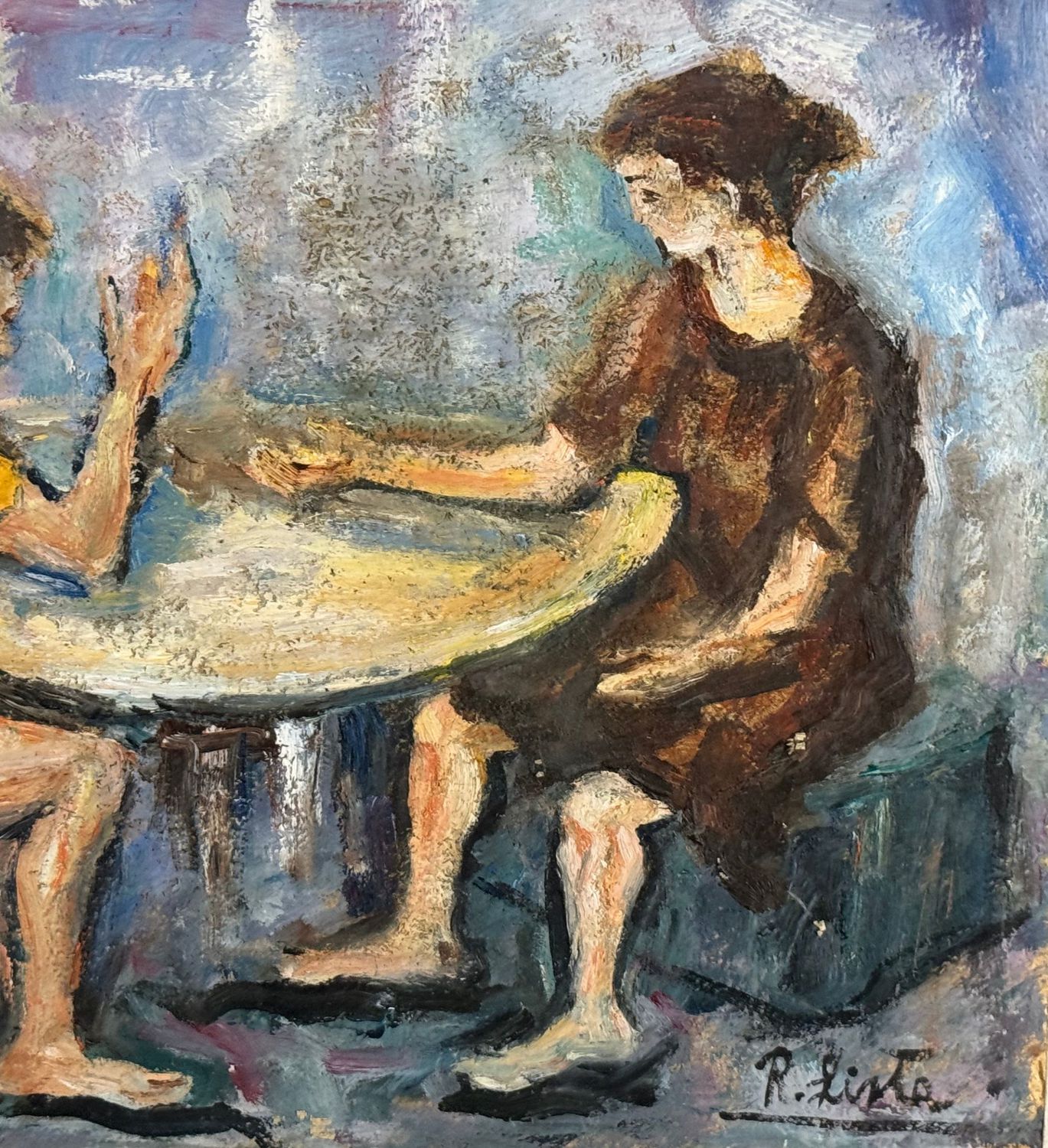 R. Lista - Dipinto olio su tela, periodo XX secolo, scuola Italiana, raffigurante Due personaggi. Dimensioni compreso cornice: 53x42 cm. Dimensioni interno cornice: 35x25 cm. Reca firma in basso a destra R.Lista. Opera in buone condizioni.