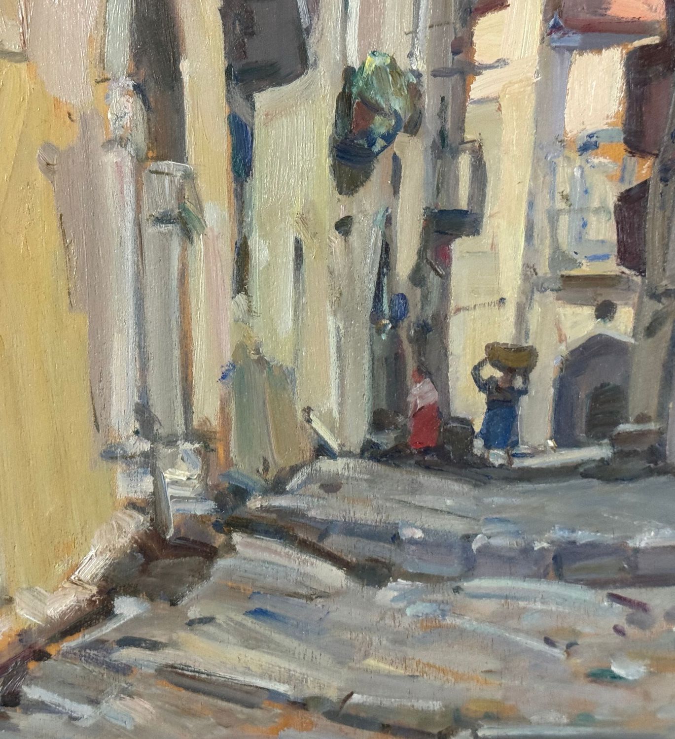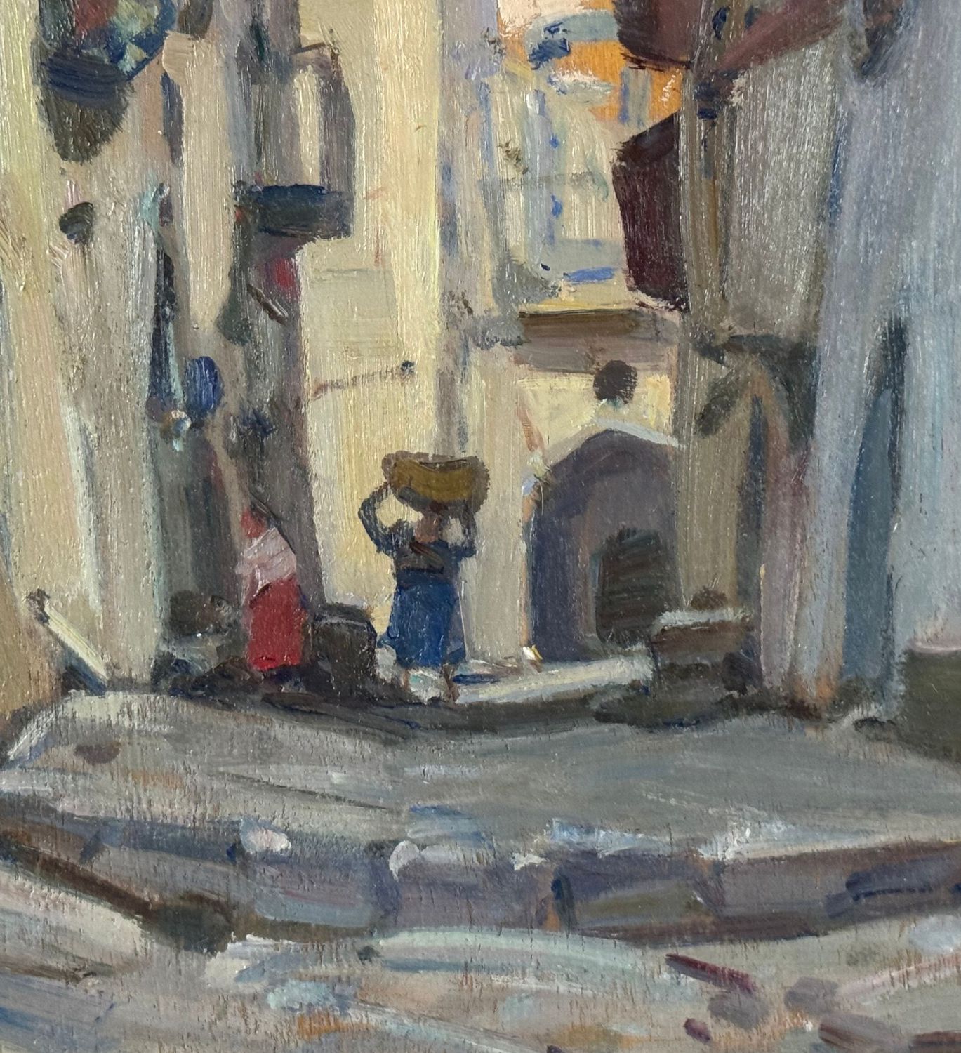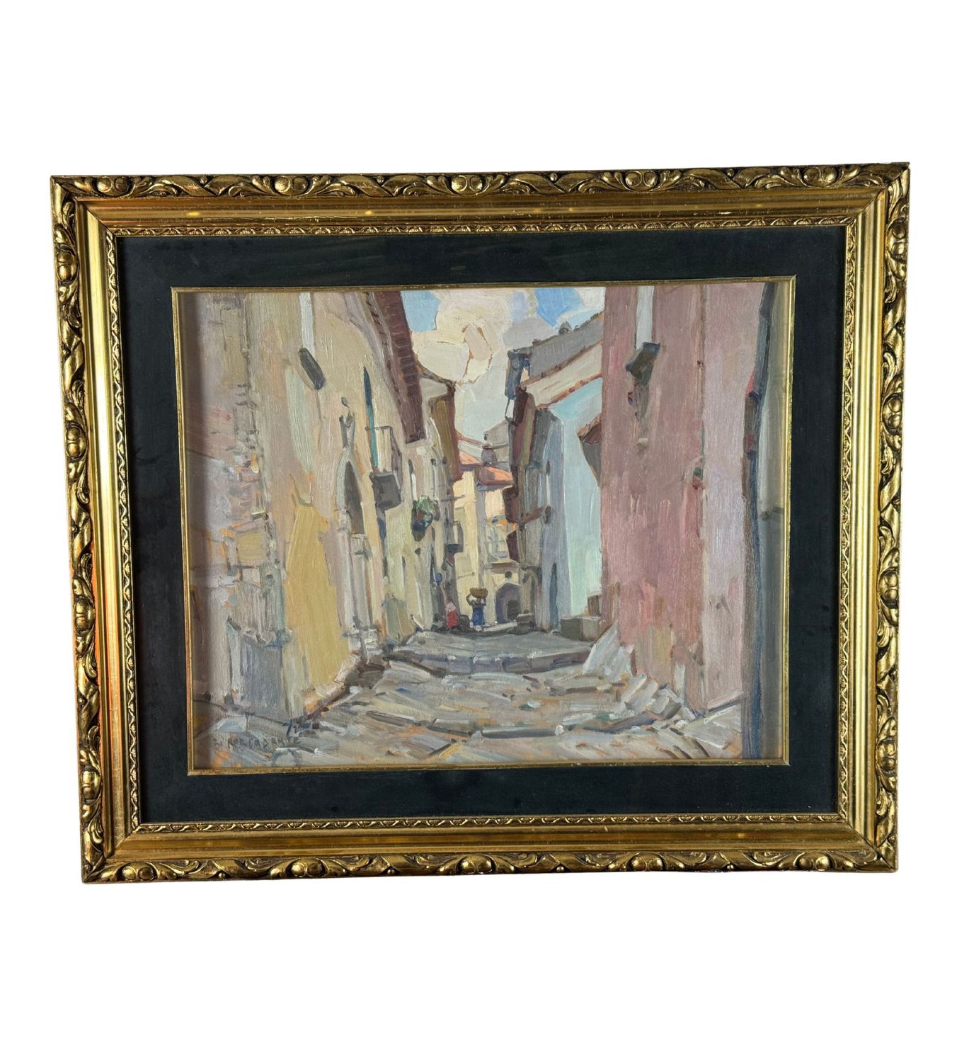 Biagio Mercadante - Dipinto olio su pannello, periodo XX secolo, scuola Italiana, raffigurante Strada con personaggi. Dimensioni compreso cornice: 66x56 cm. Dimensioni interno cornice: 50x40 cm. Reca firma in basso a sinistra Biagio Mercadante. Opera in buone condizioni.