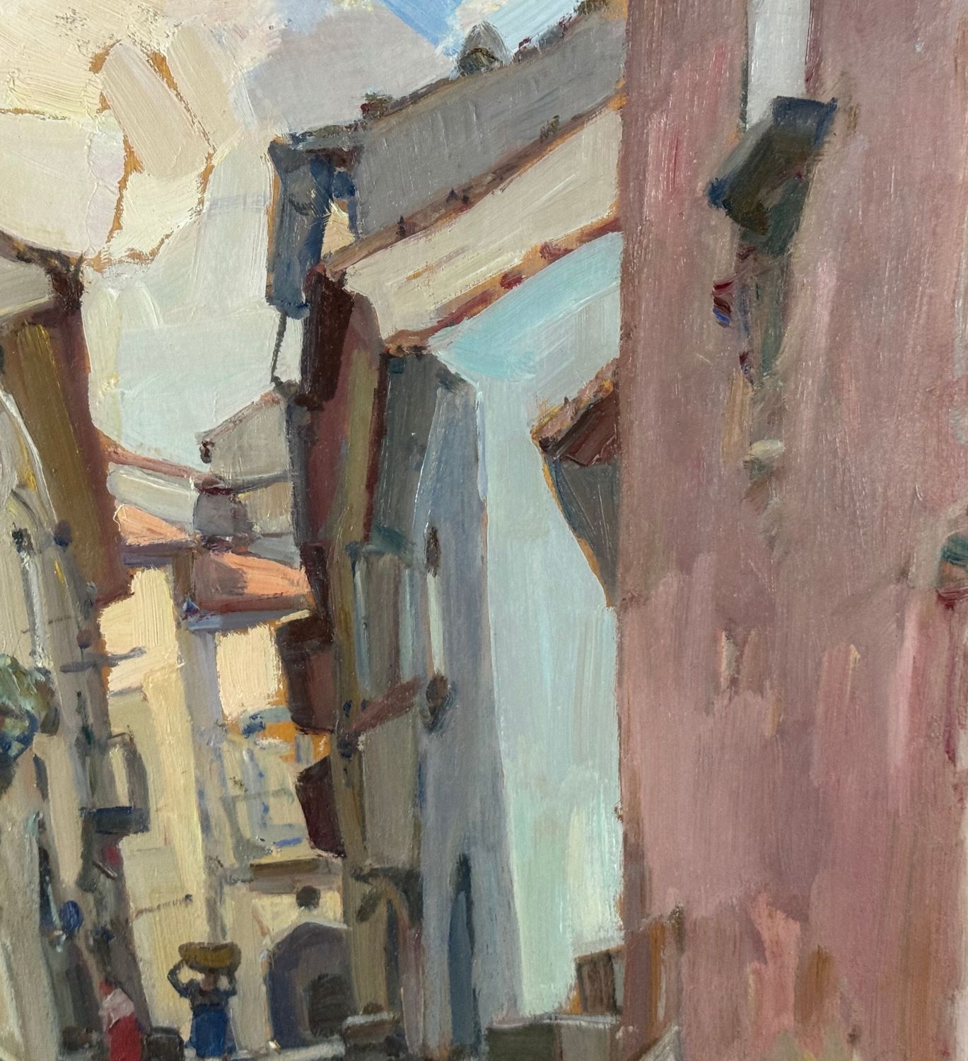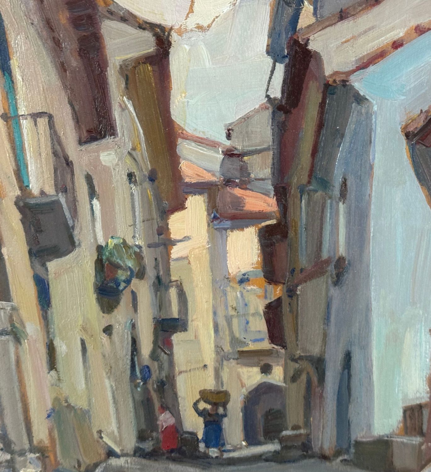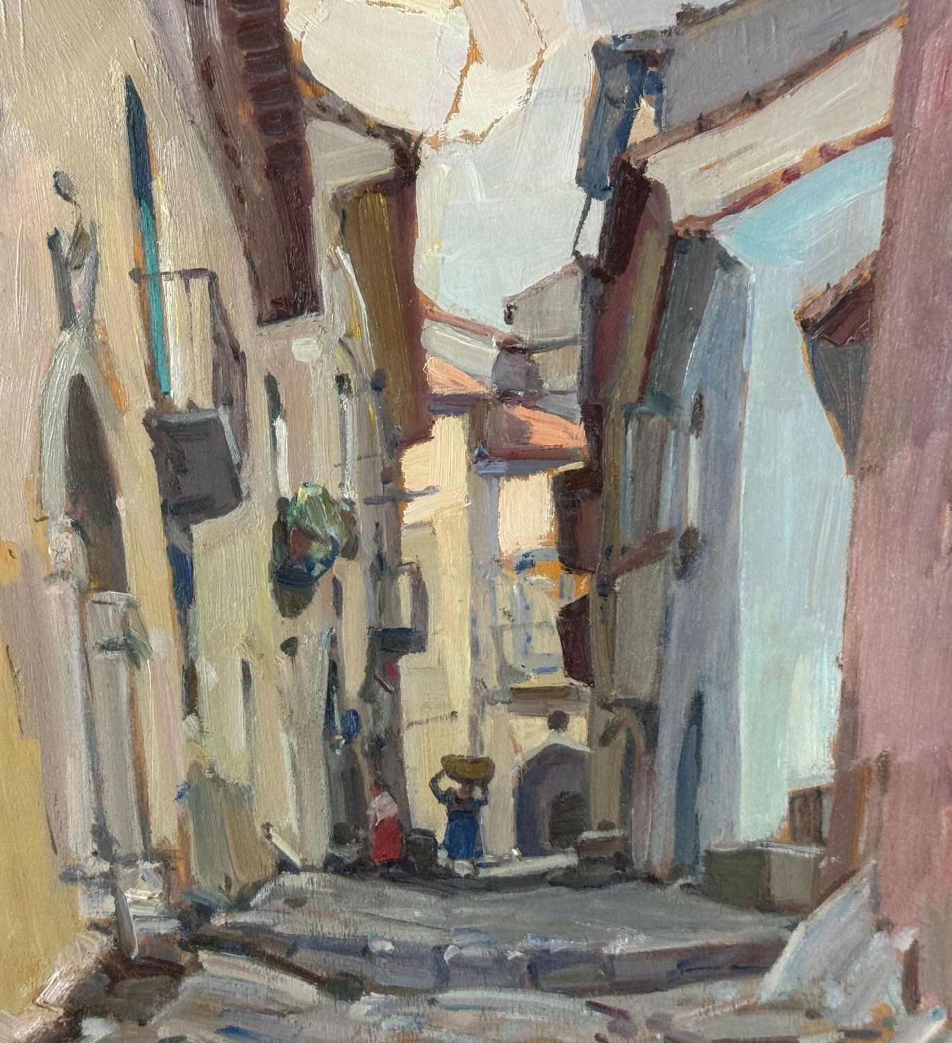 Biagio Mercadante - Dipinto olio su pannello, periodo XX secolo, scuola Italiana, raffigurante Strada con personaggi. Dimensioni compreso cornice: 66x56 cm. Dimensioni interno cornice: 50x40 cm. Reca firma in basso a sinistra Biagio Mercadante. Opera in buone condizioni.