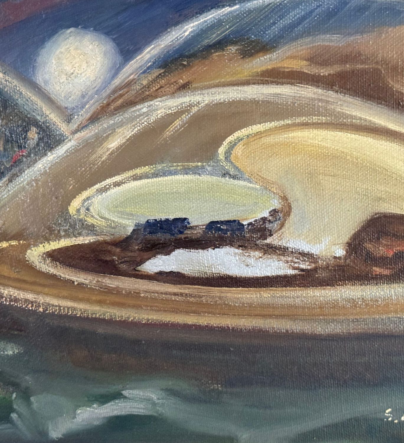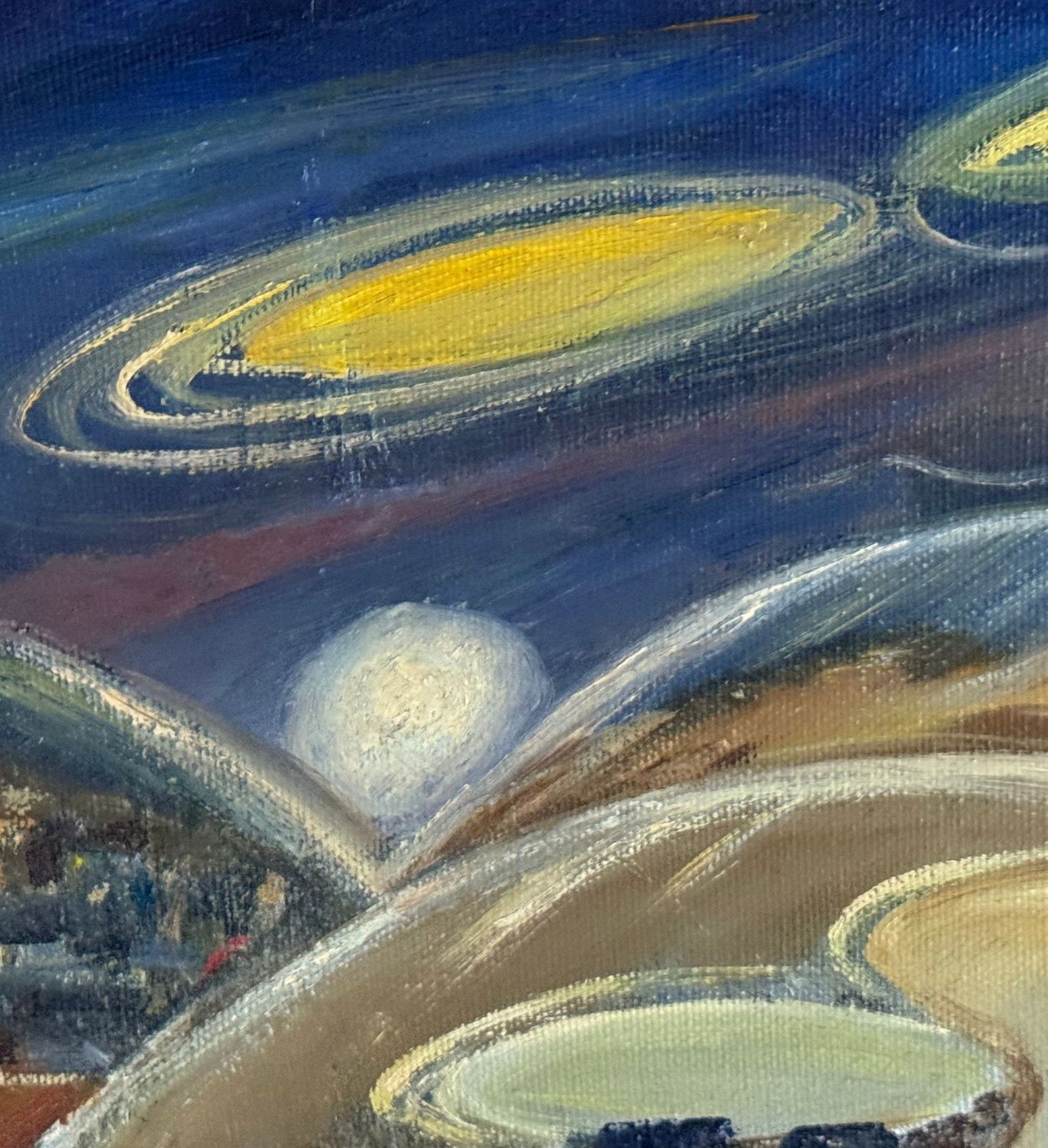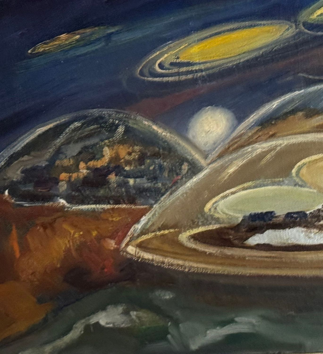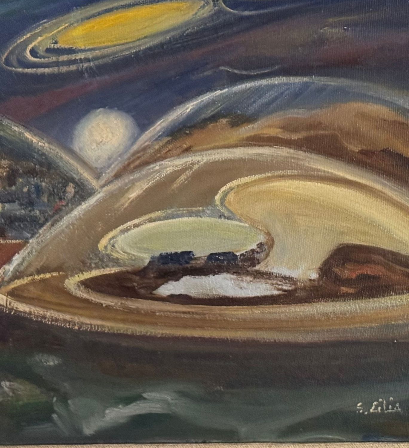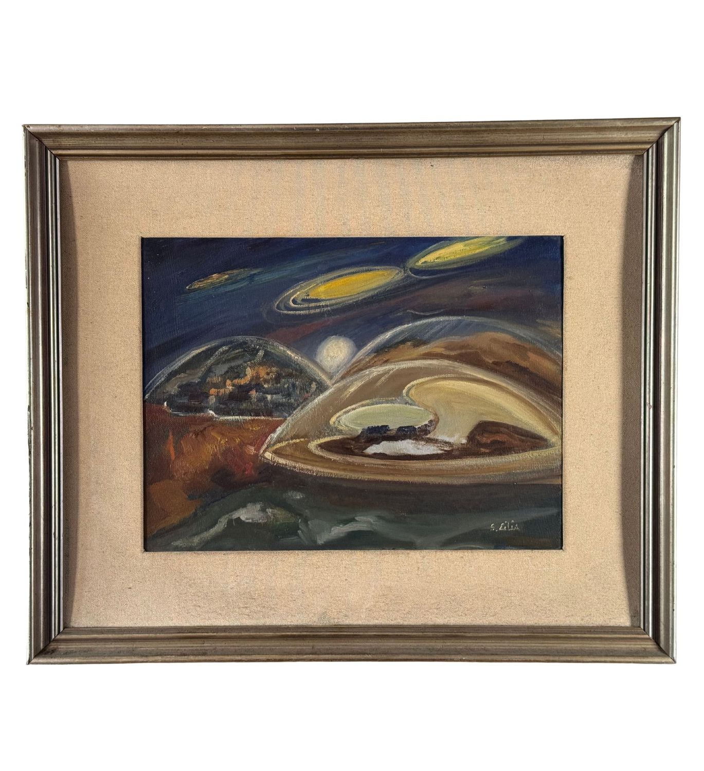 Salvatore Cilia - Dipinto olio su tela, periodo XX secolo, scuola Italiana, raffigurante Misteri dei dischi volanti. Dimensioni compreso cornice: 59x49 cm. Dimensioni interno cornice: 30x40 cm. Firmato in basso a destra e sul retro Salvatore Cilia. Opera in ottime condizioni.
