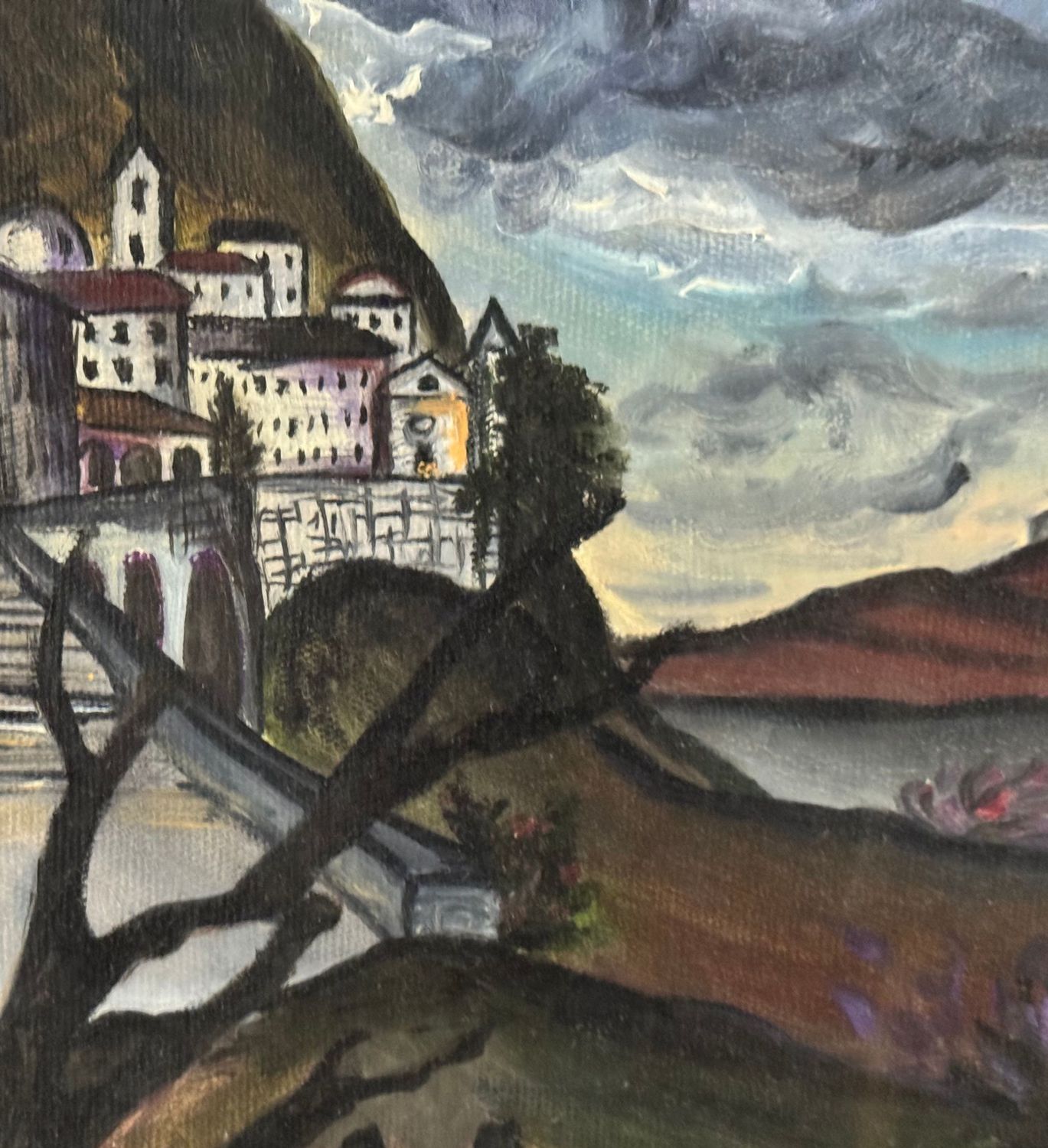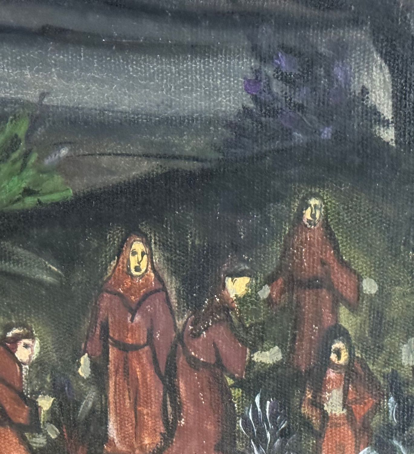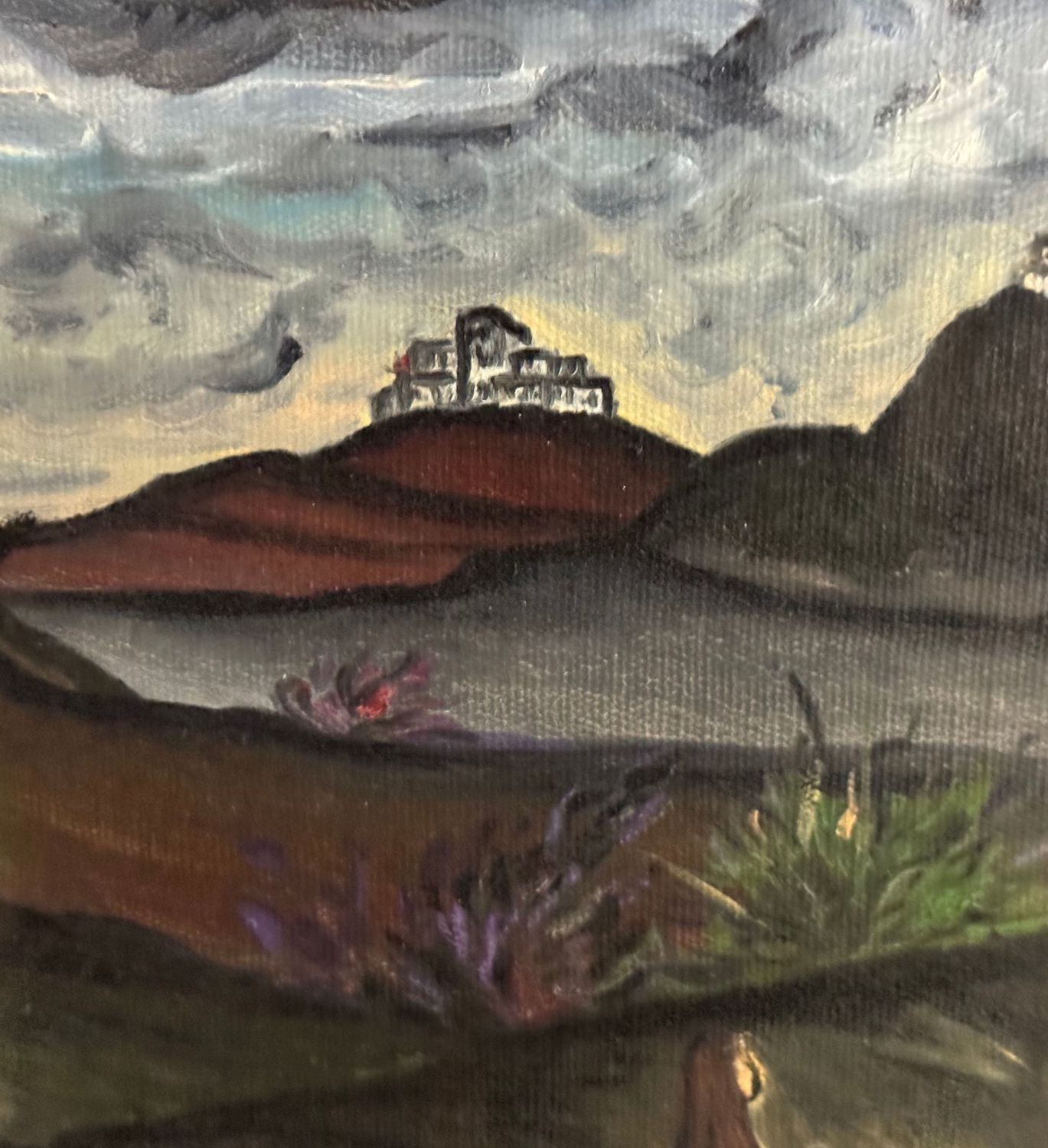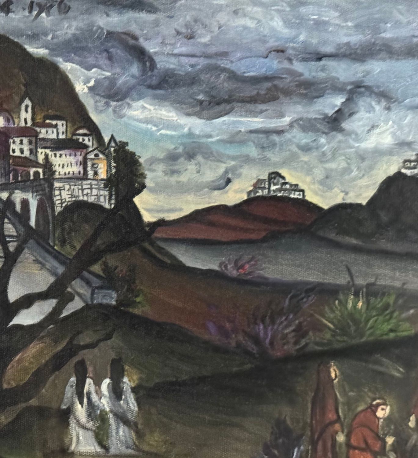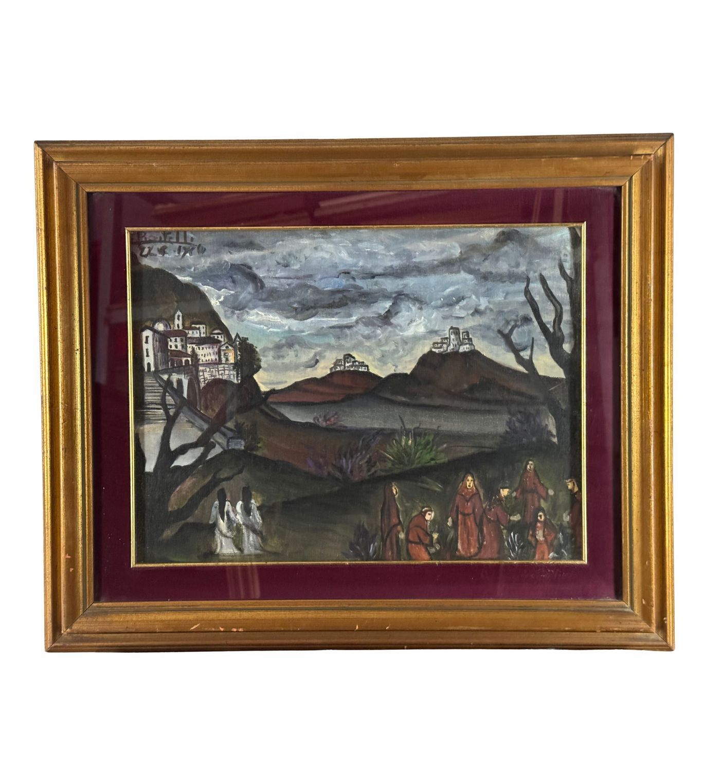 UNIDENTIFIED SIGNATURE - Dipinto olio su tela, periodo XX secolo, scuola Italiana, raffigurante Paesaggio di montagna con personaggi. Dimensioni compreso cornice: 55x44 cm. Dimensioni interno cornice: 30x40 cm. Firmato in alto a sinistra da artista non identificato. Opera in buone condizioni.
