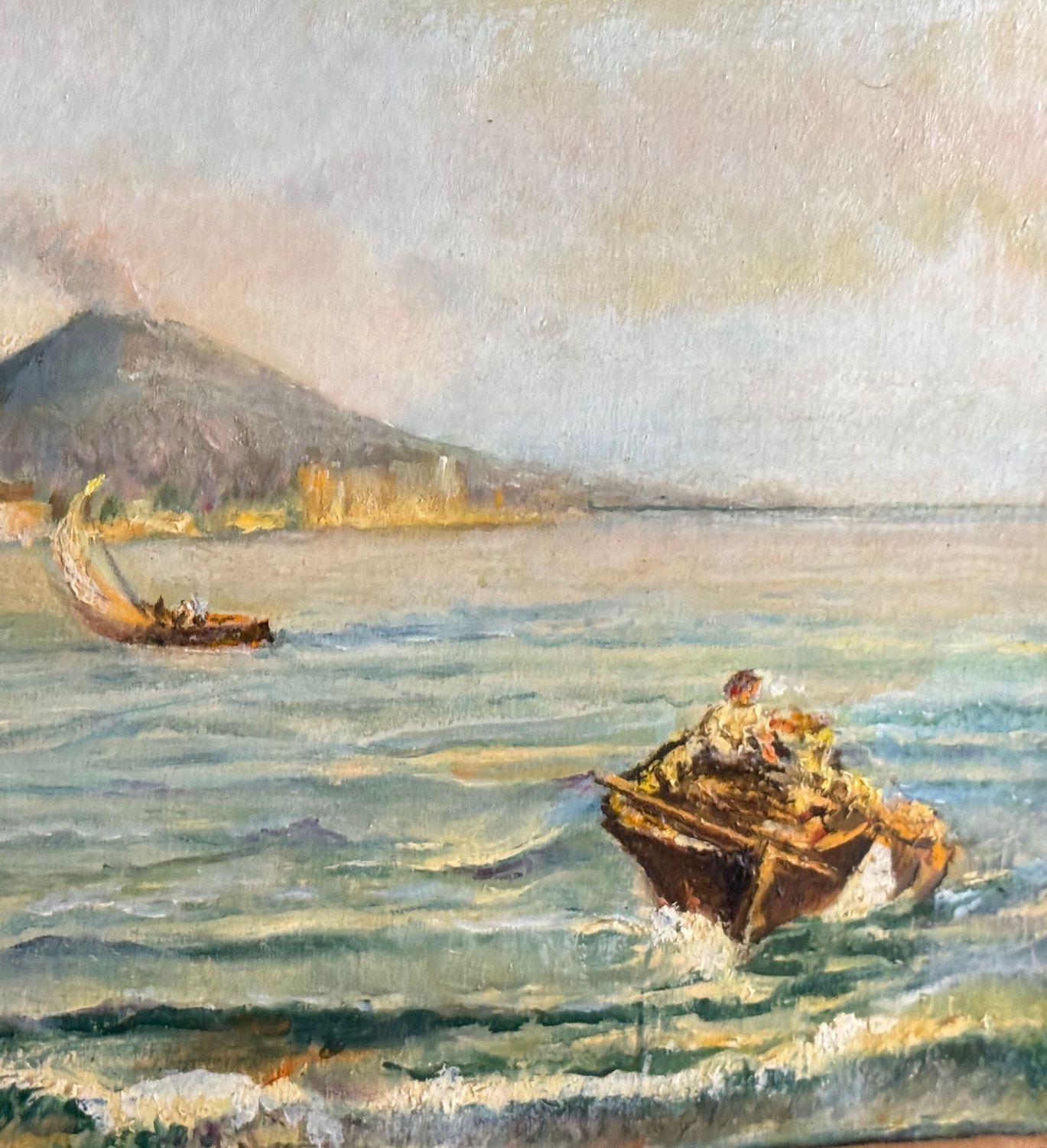ANONIMO - Dipinto olio su tavola, periodo XX secolo, scuola Napoletana, raffigurante Scorcio di marina napoletana con barche e pescatori. Dimensioni compreso cornice: 58x48 cm. Dimensioni interno cornice: 30x40 cm. Da artista anonimo. Opera in buone condizioni con lievi segni di vissuto come da foto allegate.