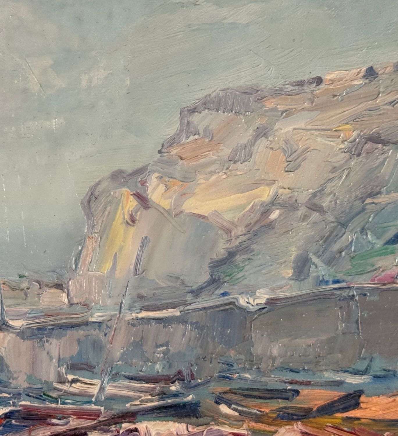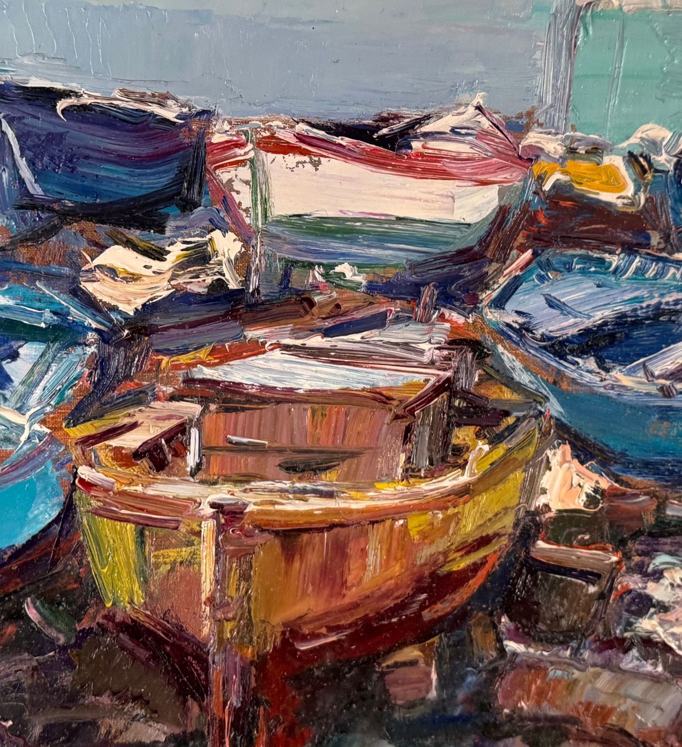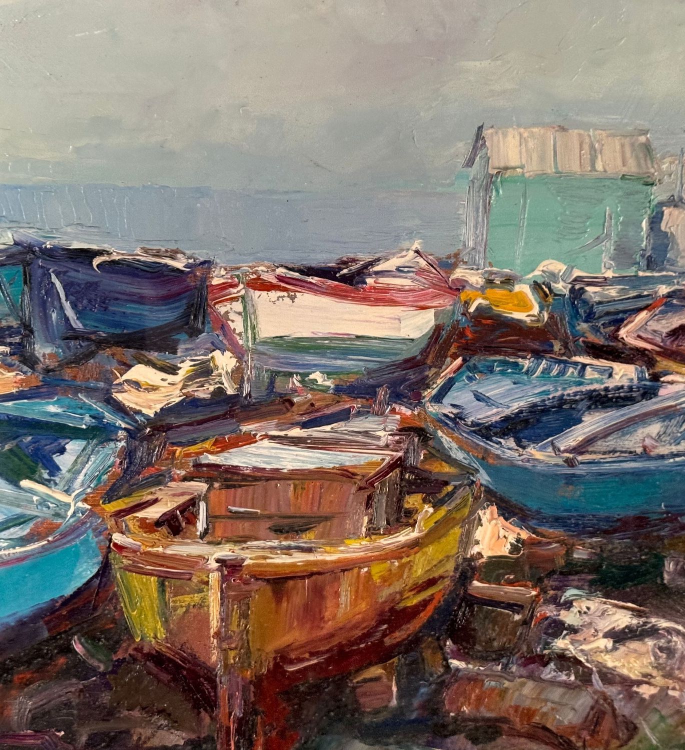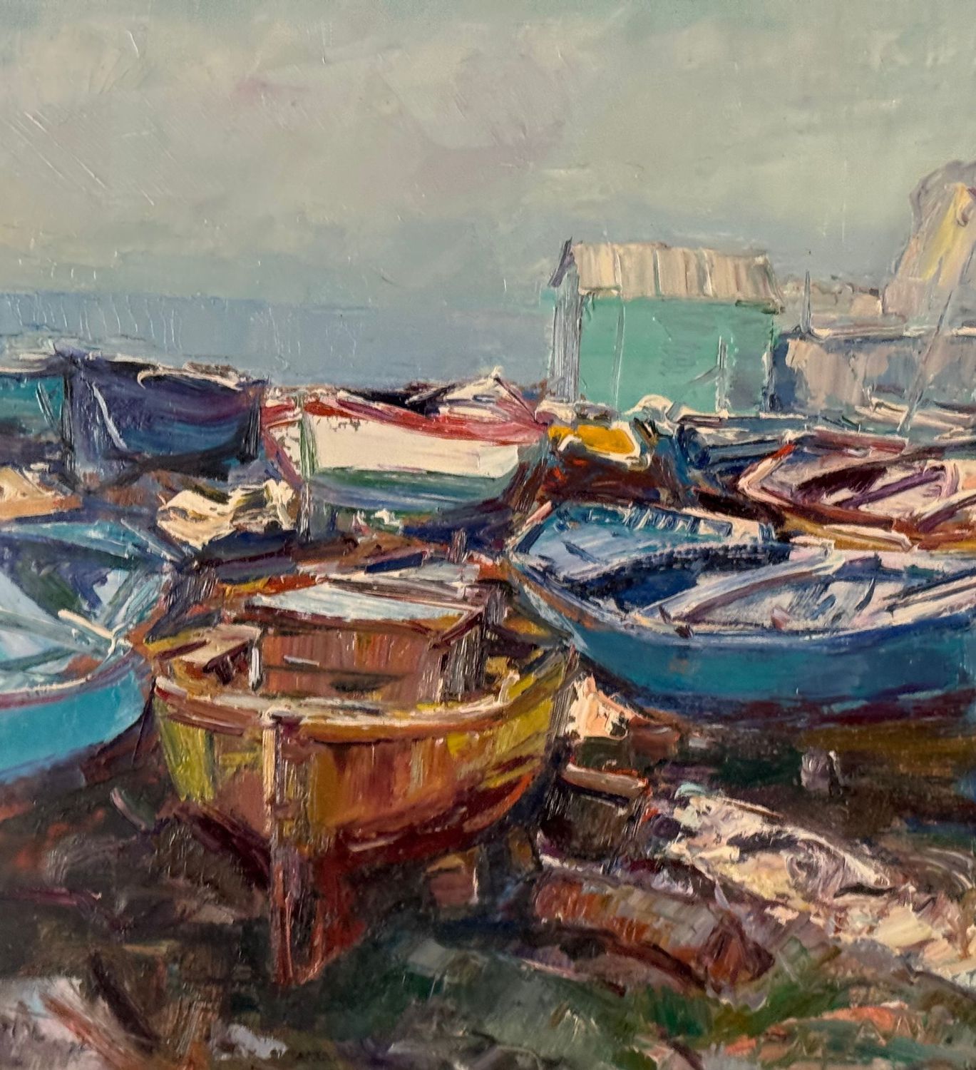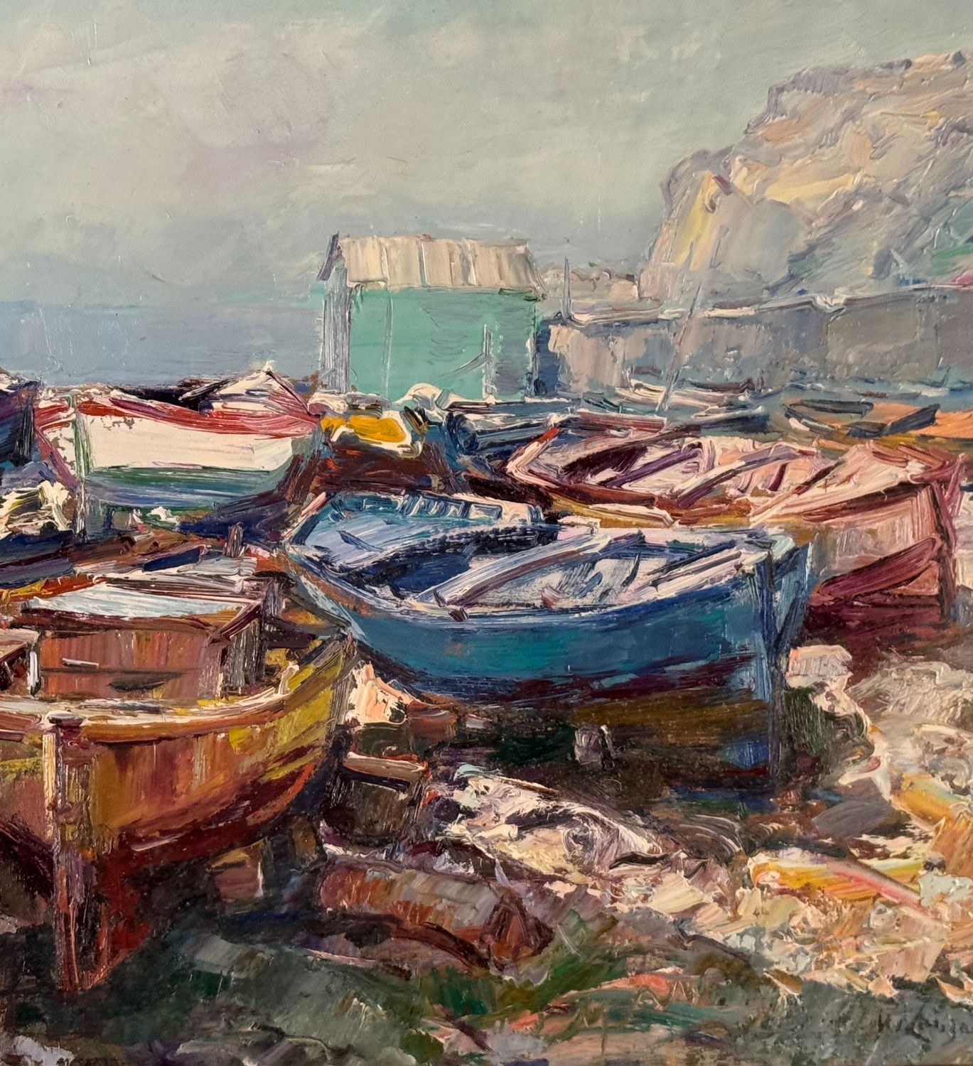 NICOLA CANZANELLA - Dipinto olio su tela, periodo XX secolo, scuola Italiana, raffigurante Scorcio di marina con barche a secco. Dimensioni compreso cornice: 85x75 cm. Dimensioni interno cornice: 60x50 cm. Firmato in basso a destra Nicola Canzanella. Opera in buone condizioni. Cornice da restaurare.