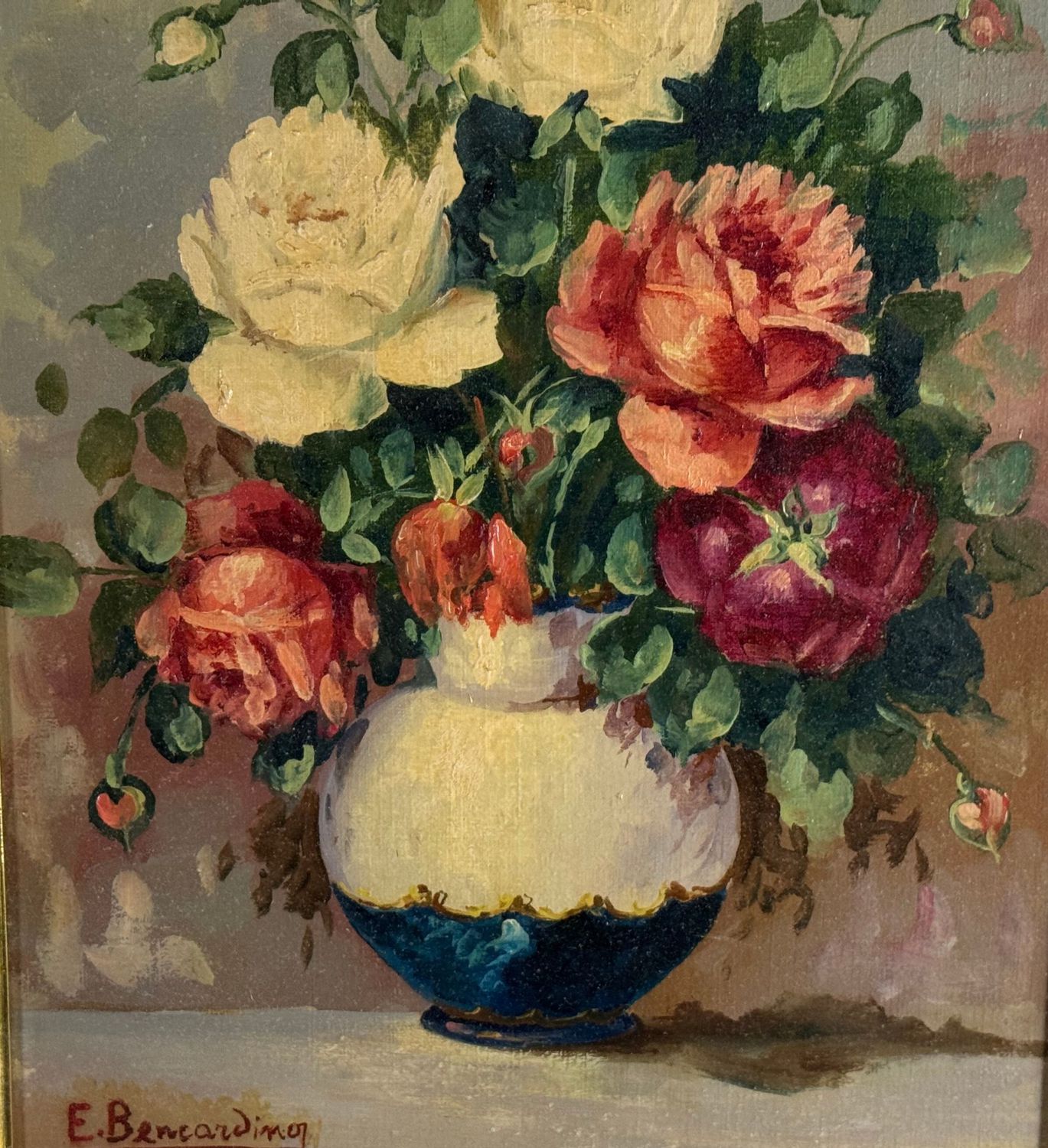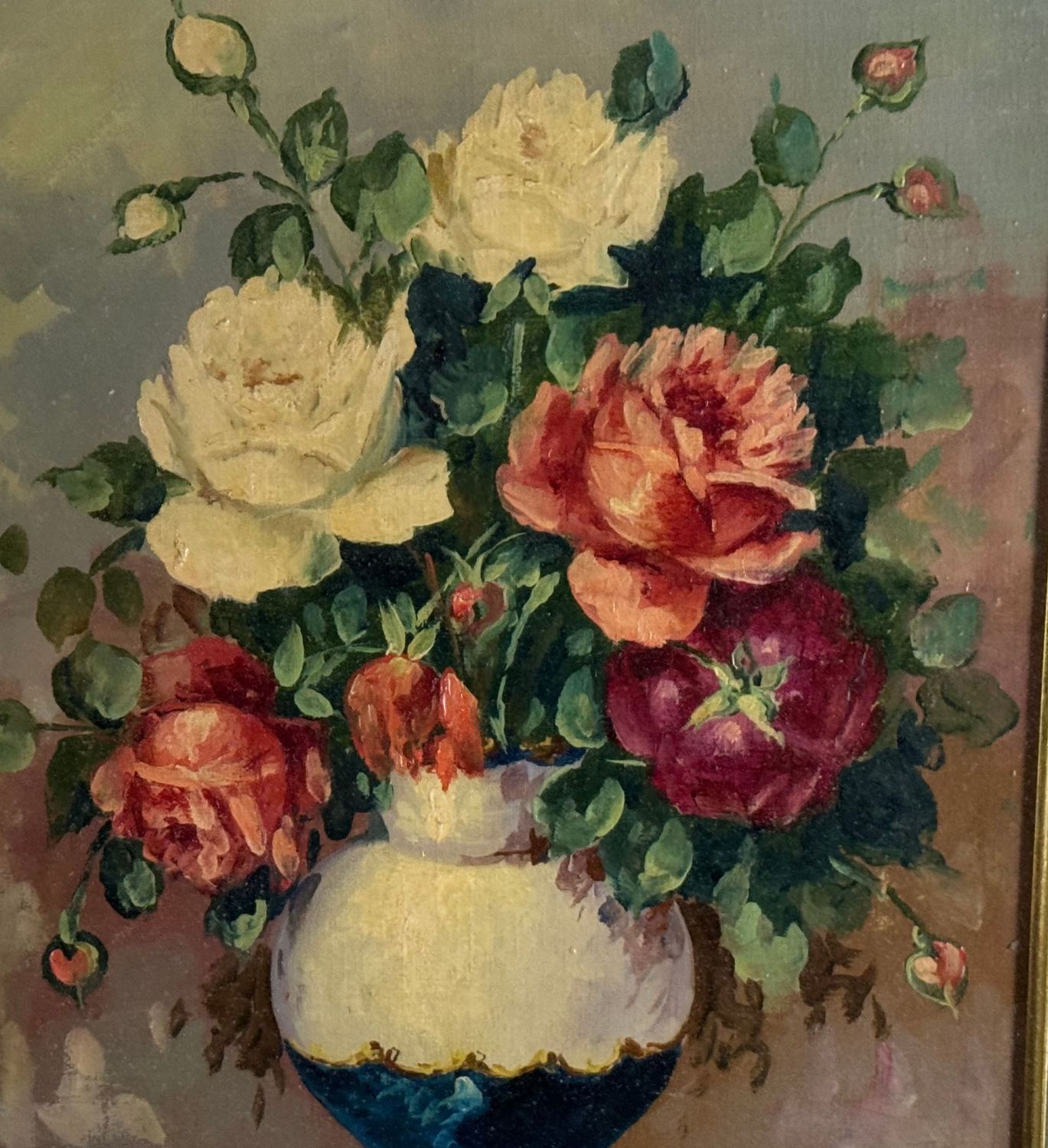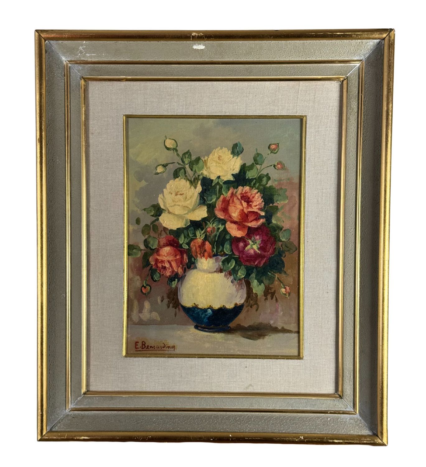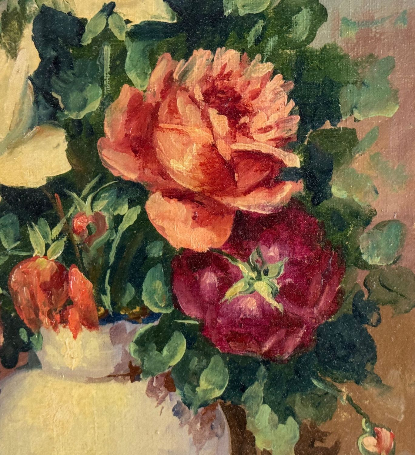 UNIDENTIFIED SIGNATURE - Dipinto olio su tela, periodo XX secolo, scuola Italiana, raffigurante Composizione di fiori. Dimensioni compreso cornice: 55x65 cm. Dimensioni interno cornice: 30x40 cm. Firmato in basso a sinistra artista non identificato. Opera in buone condizioni.