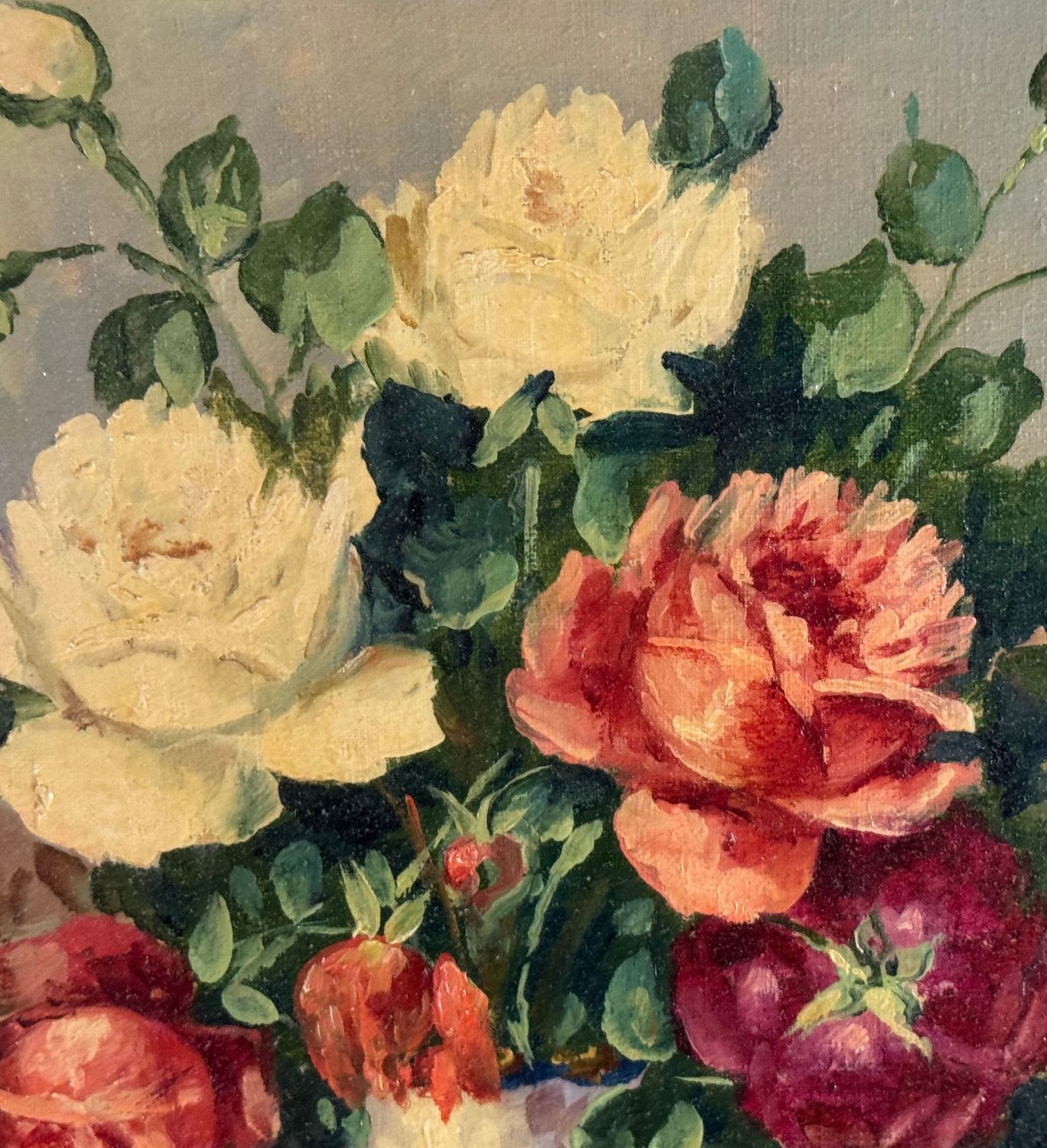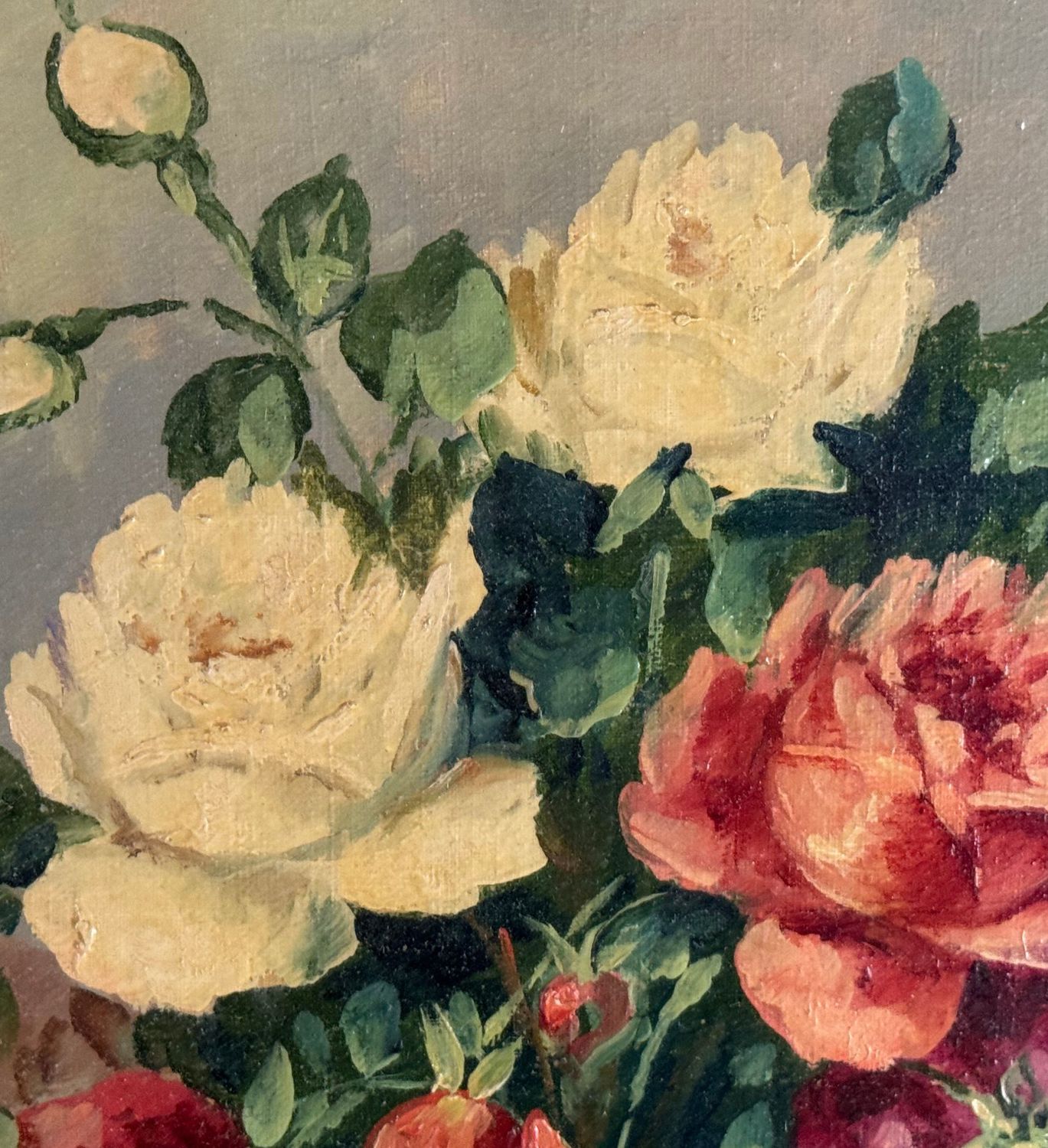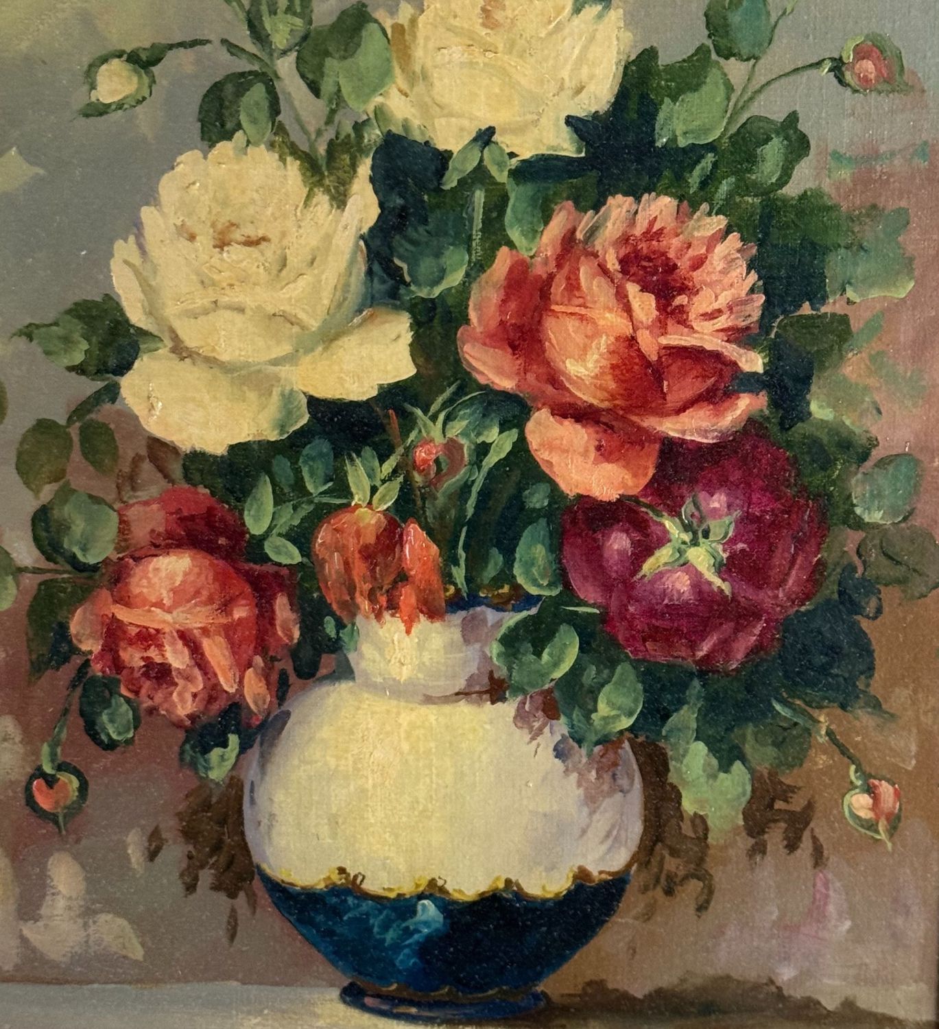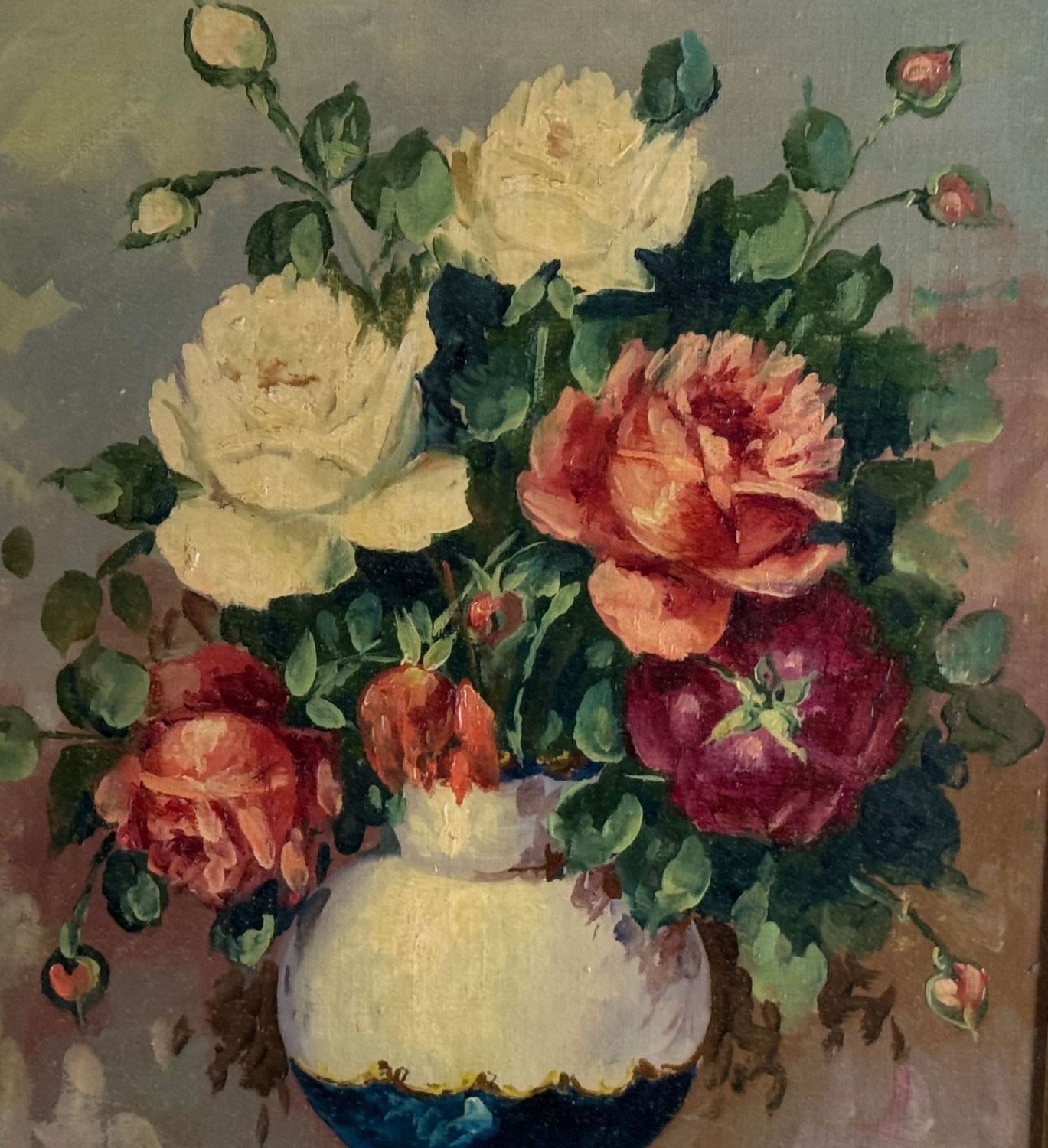 UNIDENTIFIED SIGNATURE - Dipinto olio su tela, periodo XX secolo, scuola Italiana, raffigurante Composizione di fiori. Dimensioni compreso cornice: 55x65 cm. Dimensioni interno cornice: 30x40 cm. Firmato in basso a sinistra artista non identificato. Opera in buone condizioni.