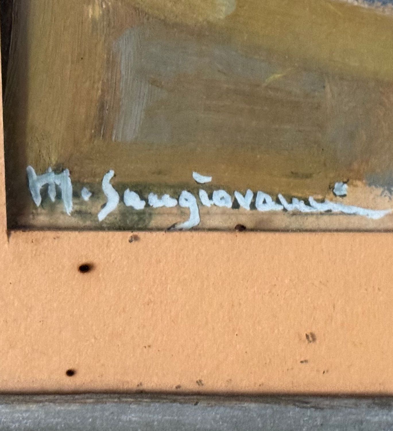 M. Sangiovanni - Dipinto olio su pannello, periodo XX secolo, scuola Italiana, raffigurante SENZA TITOLO. Dimensioni compreso cornice: 57x48 cm. Dimensioni interno cornice: 33x25 cm. Firmato in basso a sinistra da SanGiovanni. Opera in buone condizioni.
