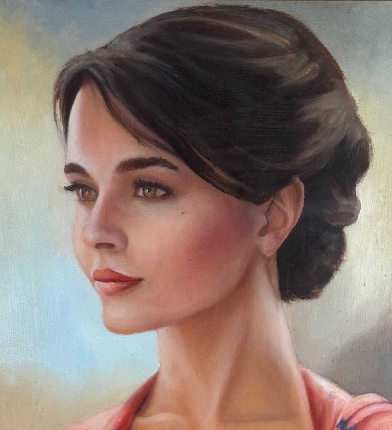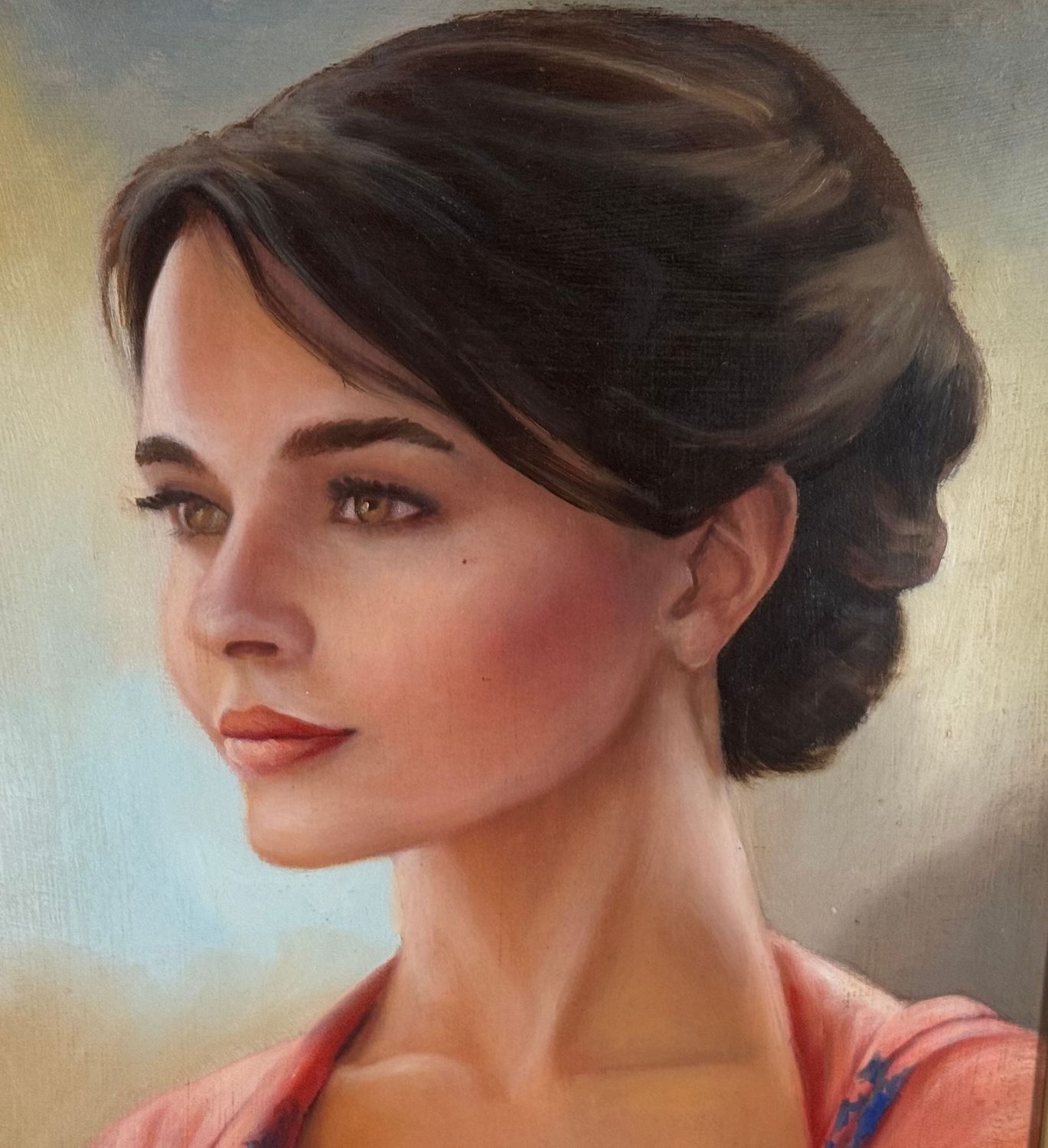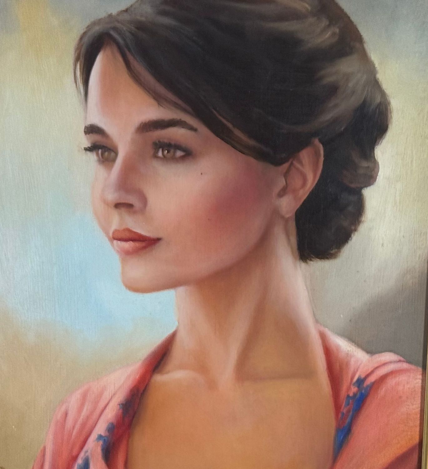 ANONIMO - Dipinto olio su pannello, periodo XX secolo, scuola Italiana, raffigurante Ritratto di donna. Dimensioni compreso cornice: 59x69 cm. Dimensioni interno cornice: 30x40 cm. Artista anonimo. Opera in buone condizioni.
