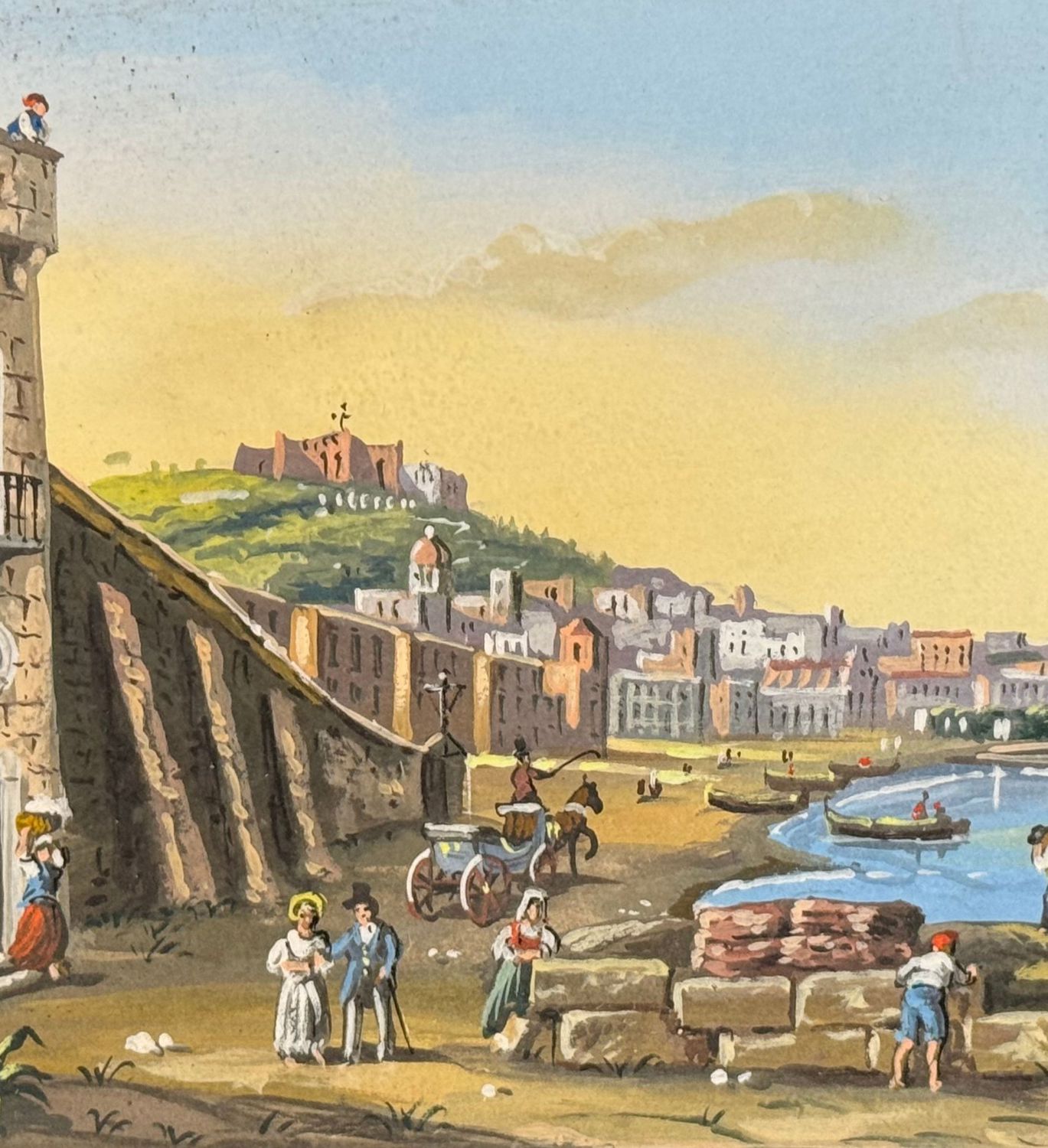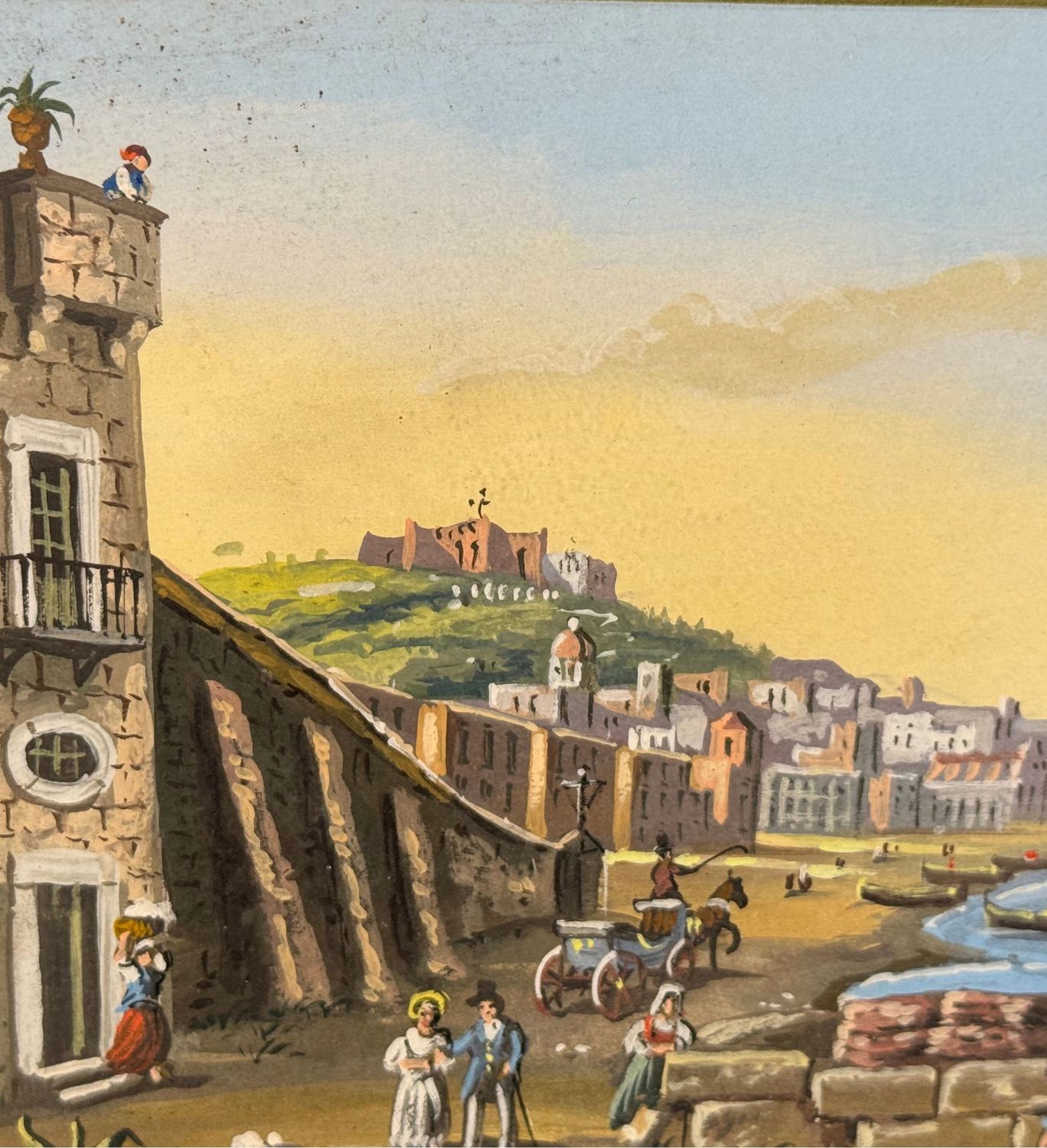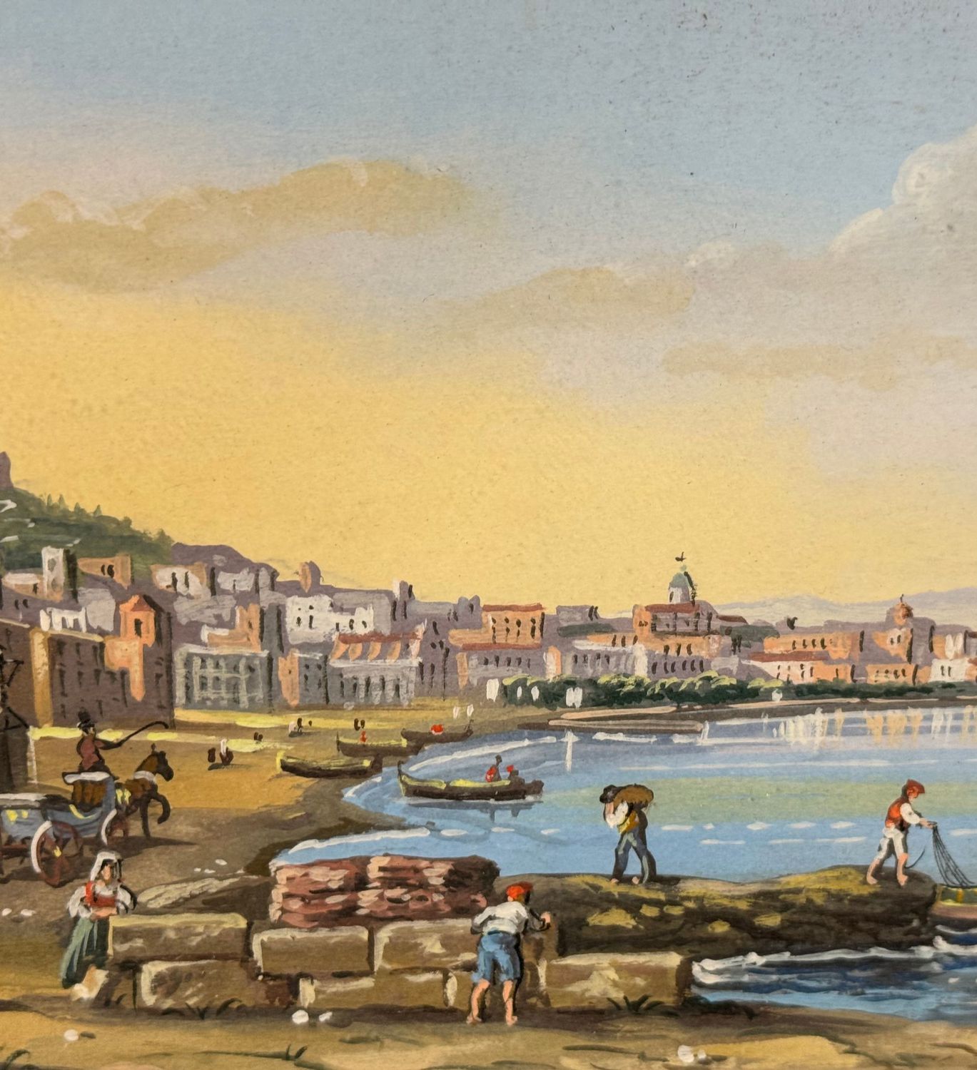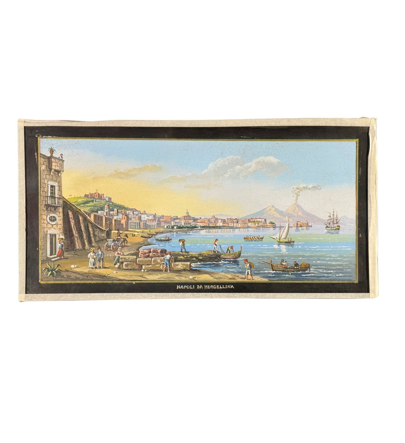 SCUOLA ITALIANA - Dipinto guazzo (tempera su carta), periodo XX secolo, scuola Italiana, raffigurante Napoli da Mergellina. Dimensioni: 40x20 cm. Artista anonimo. Opera in buone condizioni.