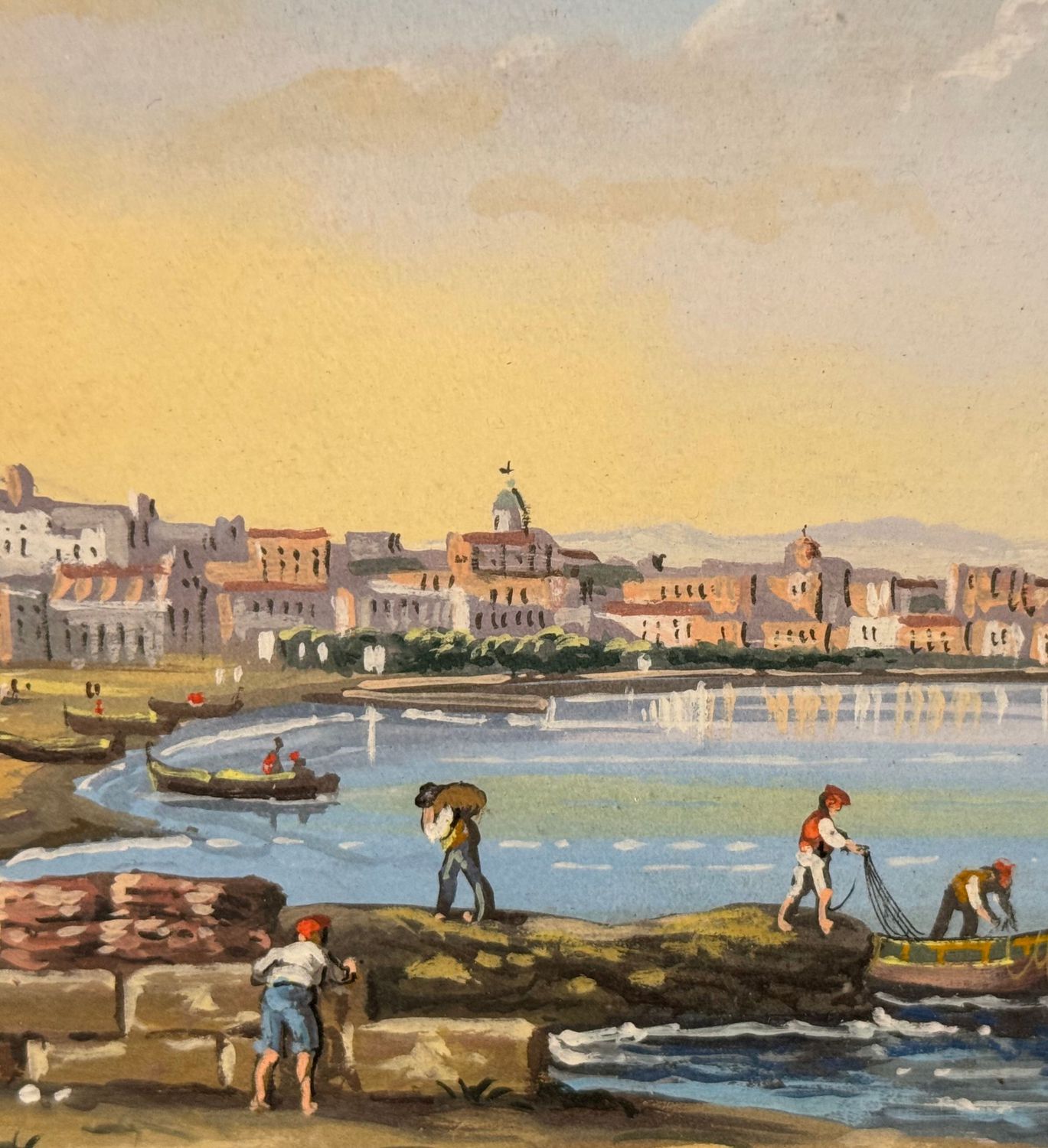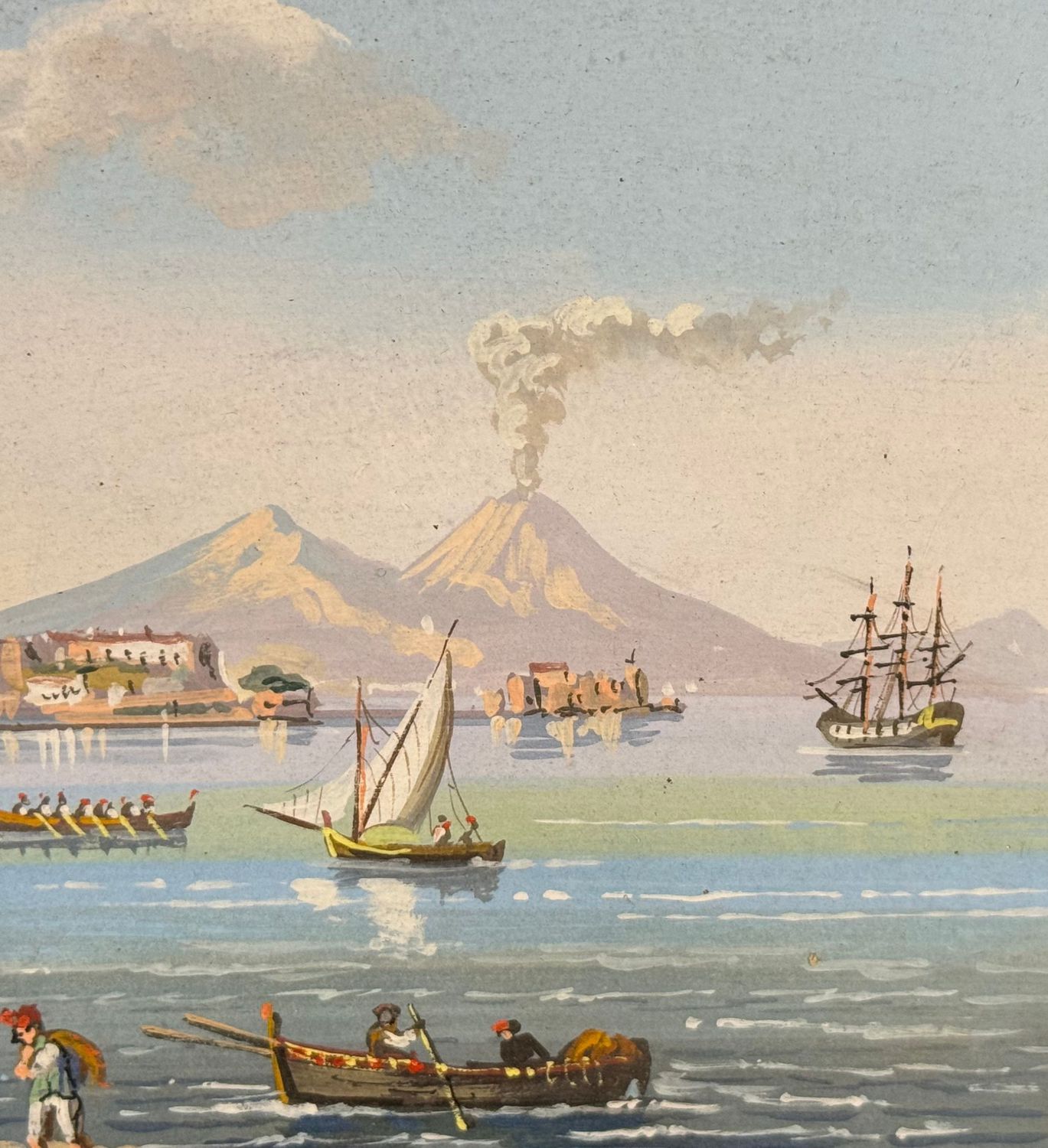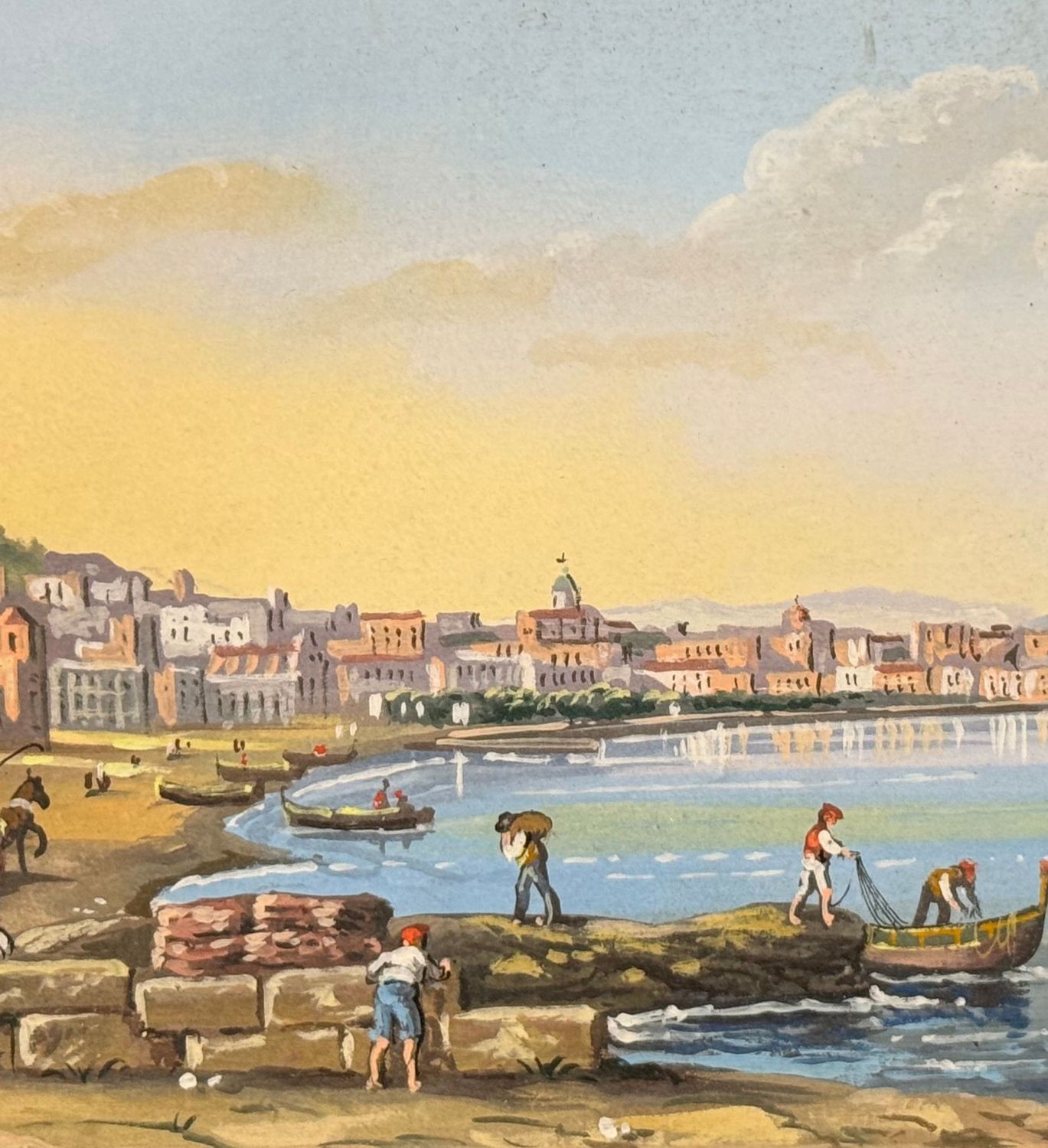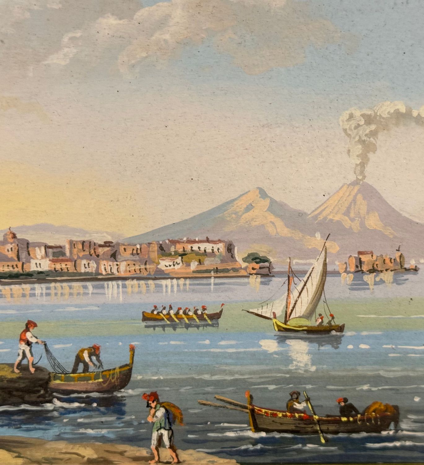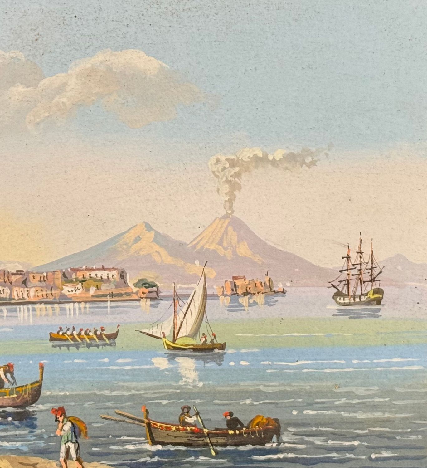 SCUOLA ITALIANA - Dipinto guazzo (tempera su carta), periodo XX secolo, scuola Italiana, raffigurante Napoli da Mergellina. Dimensioni: 40x20 cm. Artista anonimo. Opera in buone condizioni.