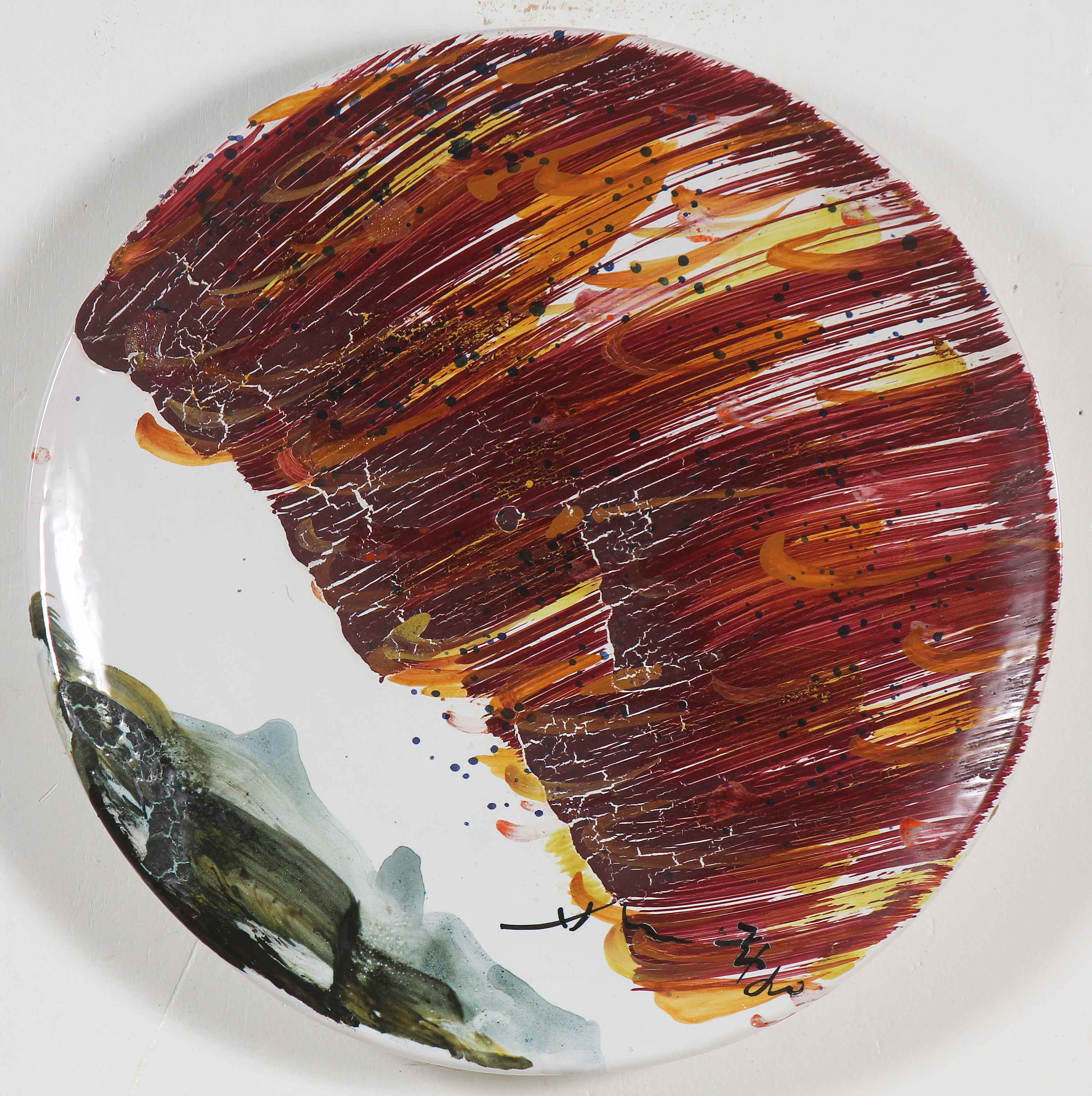 CHIN HSIAO (n. 1935) Piatto. Ceramica dipinta. Cm 32,00. Pezzo unico. Firma...