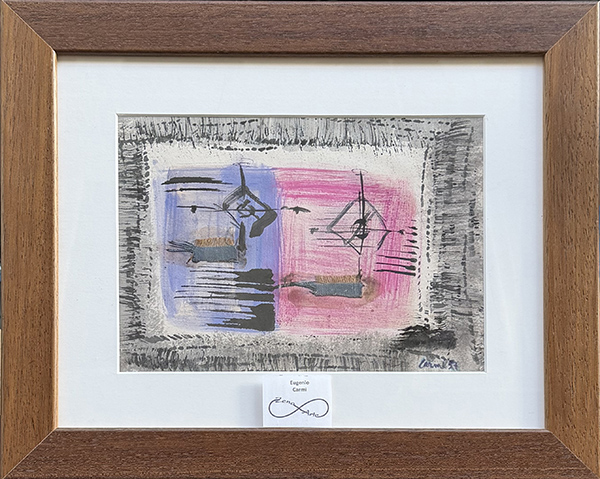 EUGENIO CARMI, "Studio", 1957, tecnica mista su carta, cm 20x27. Al fronte: firma e anno in basso a destra. Opera accompagnata da certificato di provenienza. Opera con cornice in omaggio