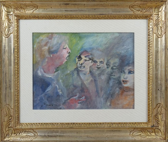 MINO MACCARI, olio su cartone, cm 30x40. Opera accompagnata da autentica su foto dell'artista e con timbro della galleria Di Summa. Opera con cornice