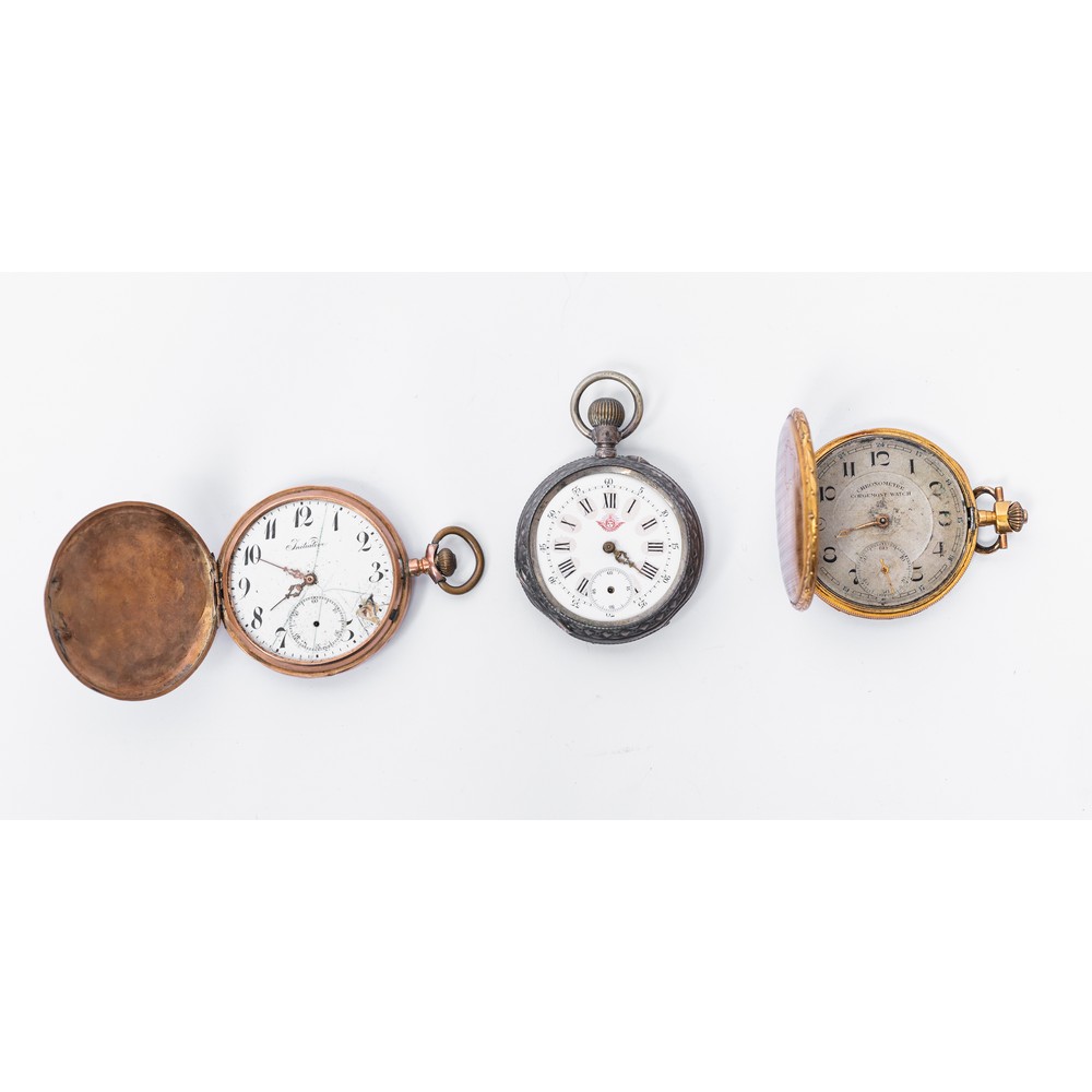 Orologio Corgemont Watch Chronometre in oro giallo 18 KT e metallo, orologio Initiative in oro giallo 9 KT e metallo e orologio Perrin 10 Rubis Geneve in argento (usure e mancanze).
