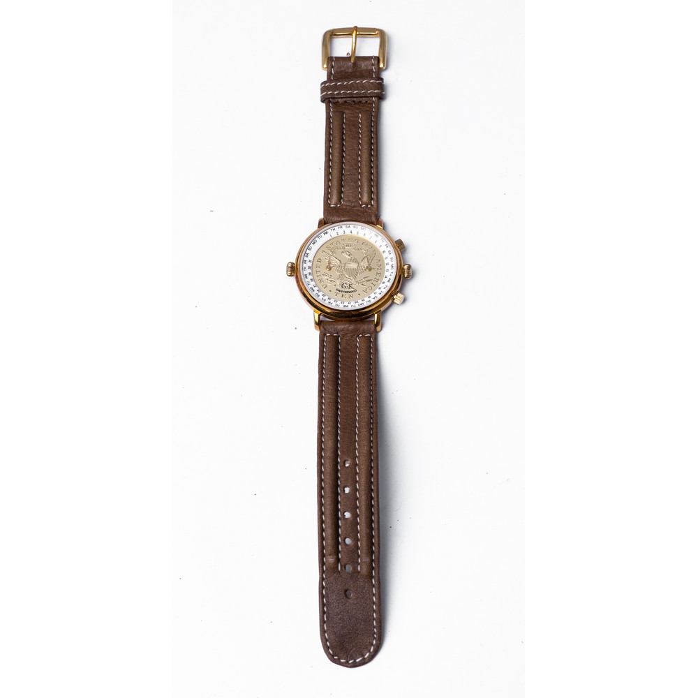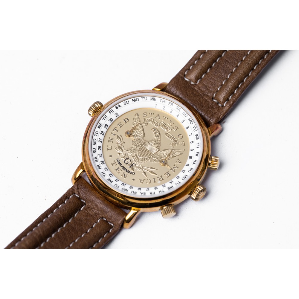 OROLOGIO GIANI FERNANDO, cassa in acciaio, carica al quarzo, cinturino in pelle marrone (da revisionare).