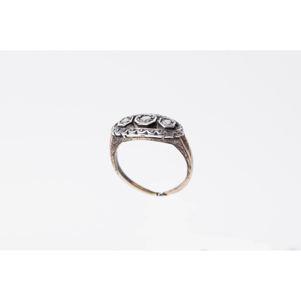ANELLO in oro giallo 9 KT e argento con diamanti ct. 0,04 peso di stima (g. 2,90).