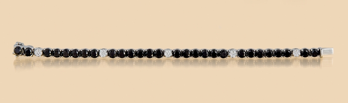 BRACCIALE TENNIS. In oro bianco 18 kt percorso da diamanti neri taglio brillante per tot. cts. 20,00 ca. alternati a settori in diamanti incolore taglio brillante per tot. cts. 0,50 ca.
