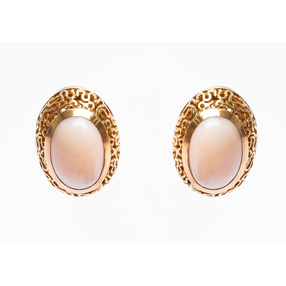 Lot 72 | ORECCHINI in oro giallo 18 KT con cabochon in corallo