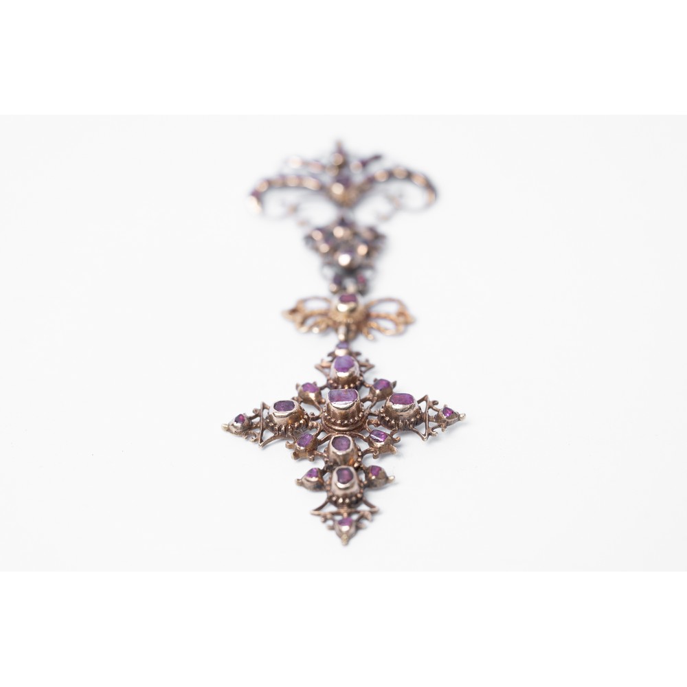 PENDENTE in oro giallo 12 KT con rubini ct. 0,50 peso di stima (g. 13,50).