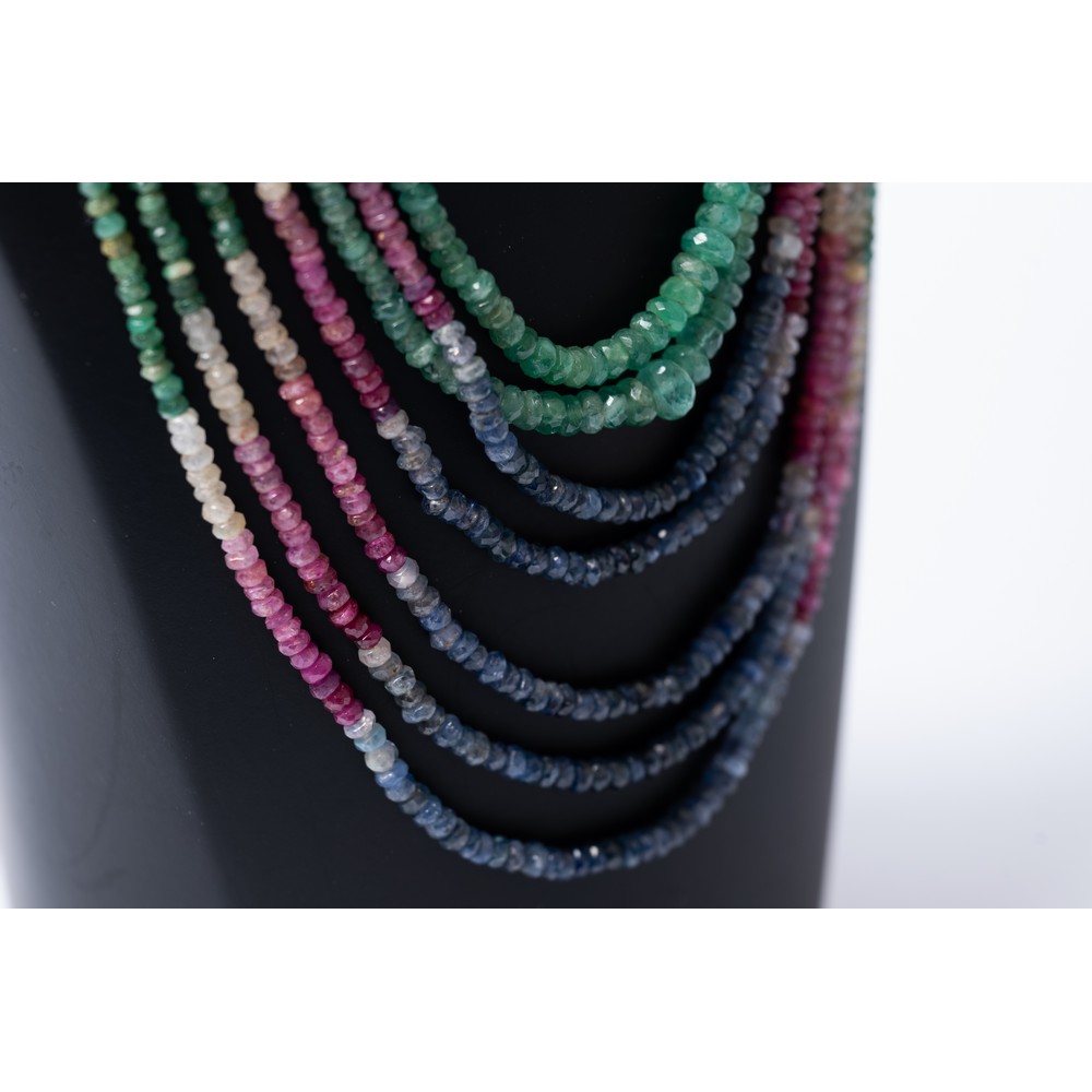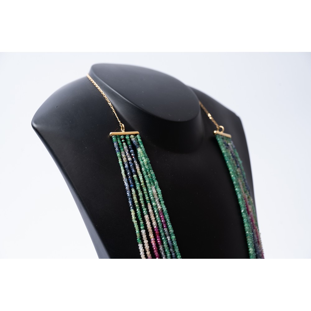 COLLANA 7 fili smeraldi, zaffiri, rubini, chiusura oro 18 KT