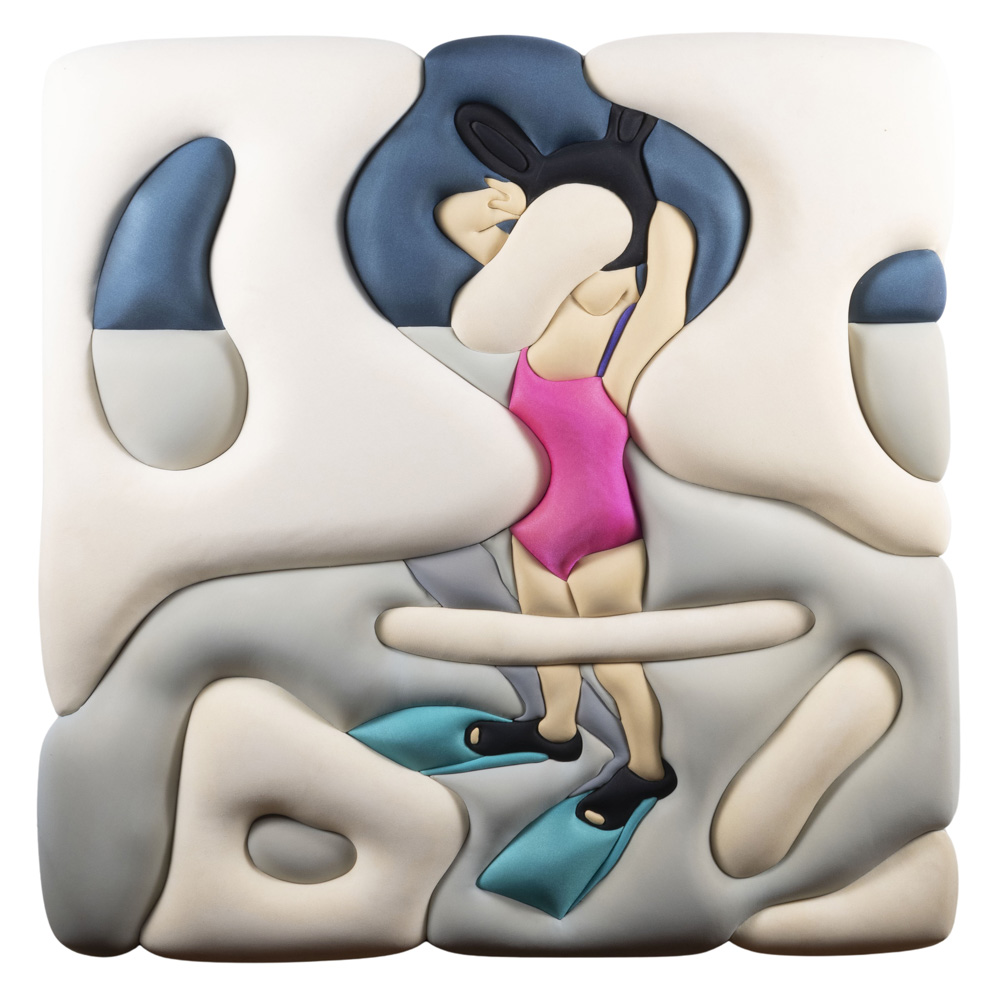 gommapiuma e lycra su tavola di legno, firmato, datato e titolato sul retro