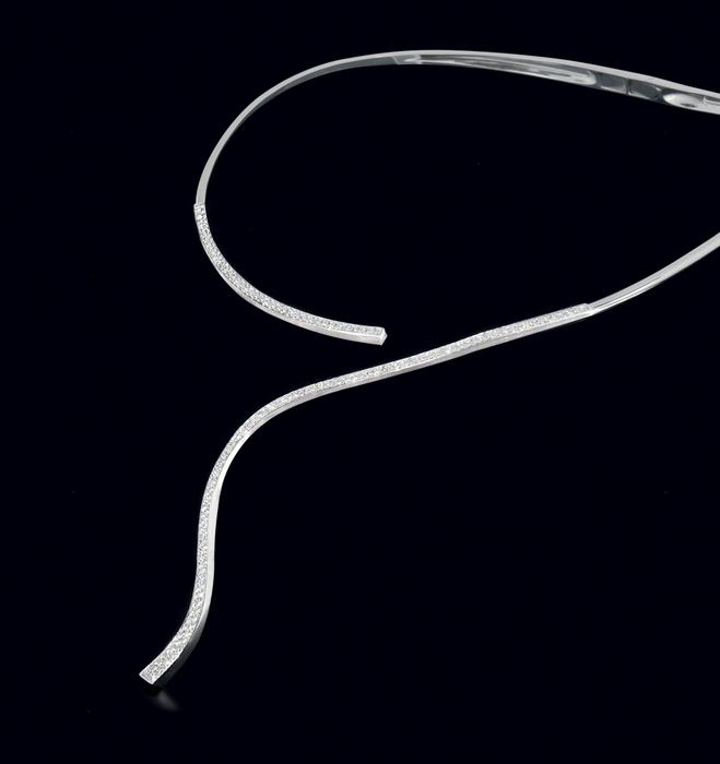 COLLANA GIROCOLLO. In oro bianco 18 kt montatura rigida con chiusura a molla,...