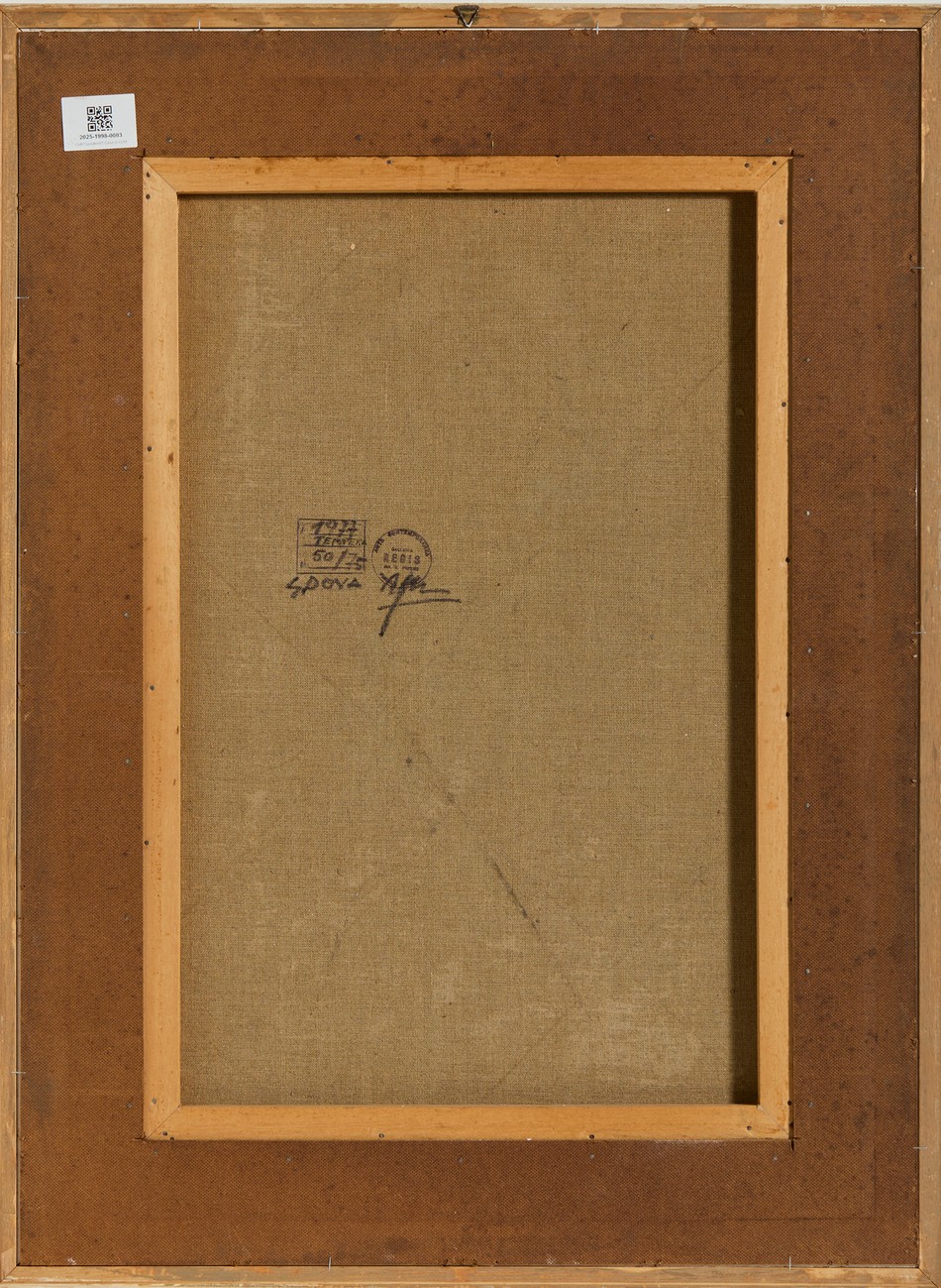 L'opera è accompagnata da autentica dell'artista su fotografia con timbro a cura della Galleria Regis, Finale Ligure (tecnica errata)