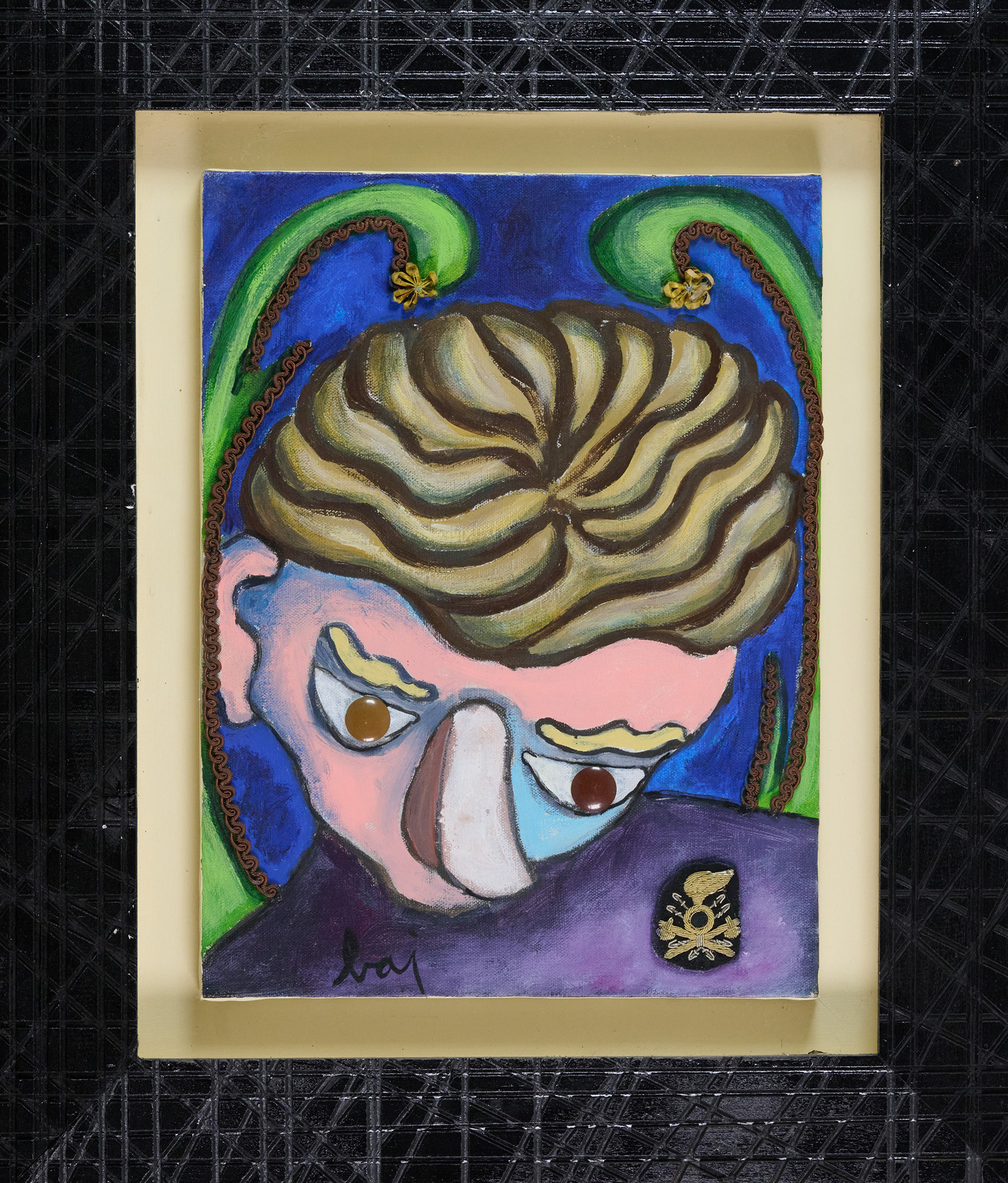 Enrico Baj (Milano, 1924 - 2003) Testa 1991 Acrilici e collage su tela cm....