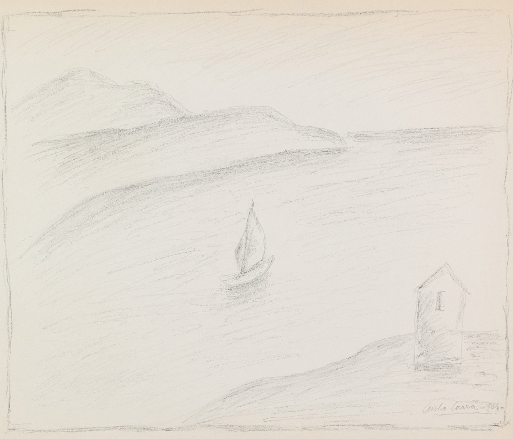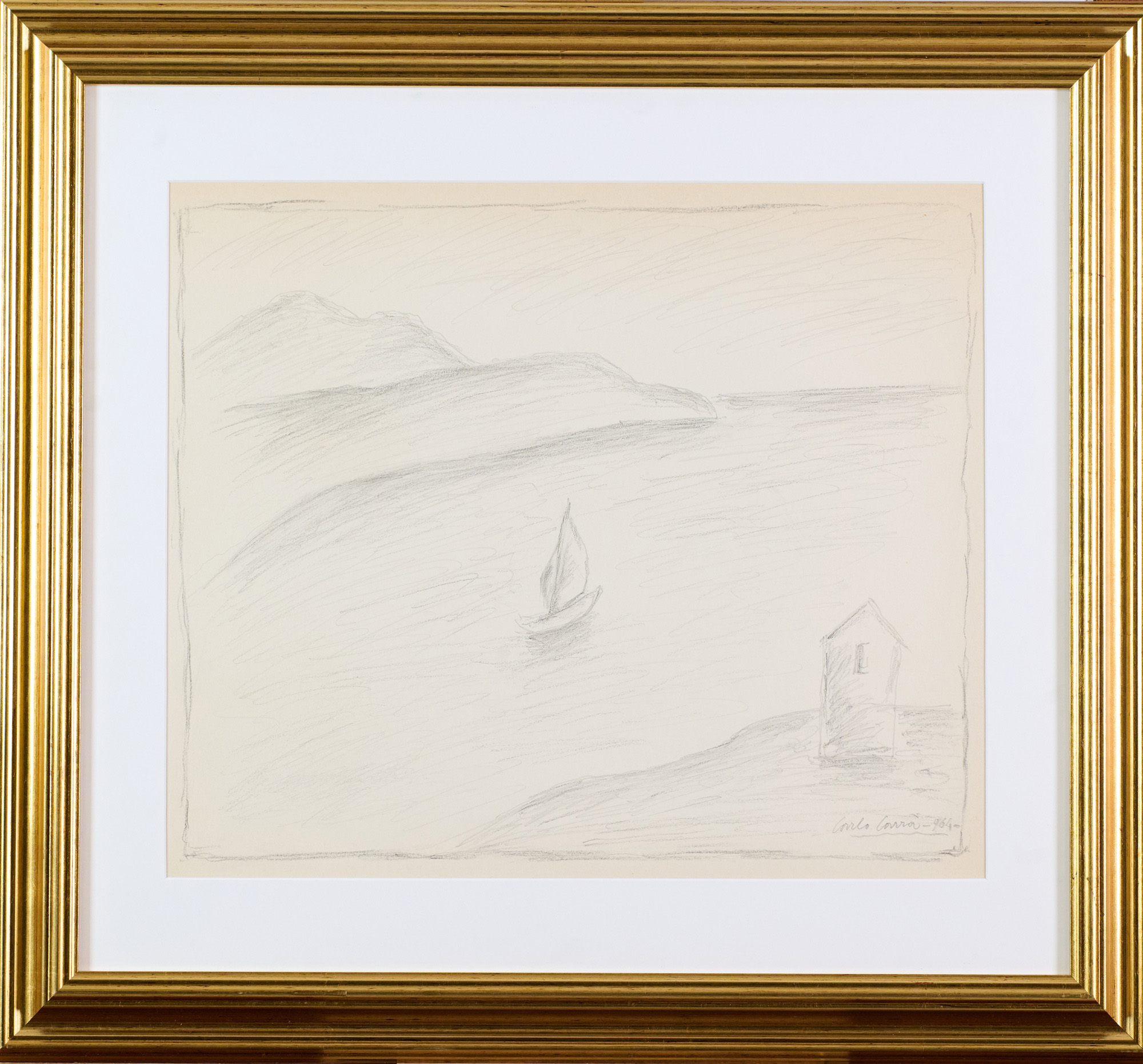 Carlo Carrà (Quargnento (Al), 1881 - Milano, 1966) Marina 1964 Matita su...