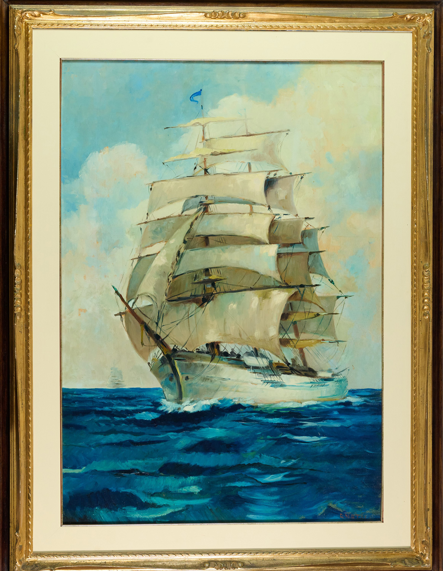 Renato Natali (Livorno, 1883 - 1979) Veliero Olio su tavola cm. 100x70...
