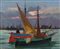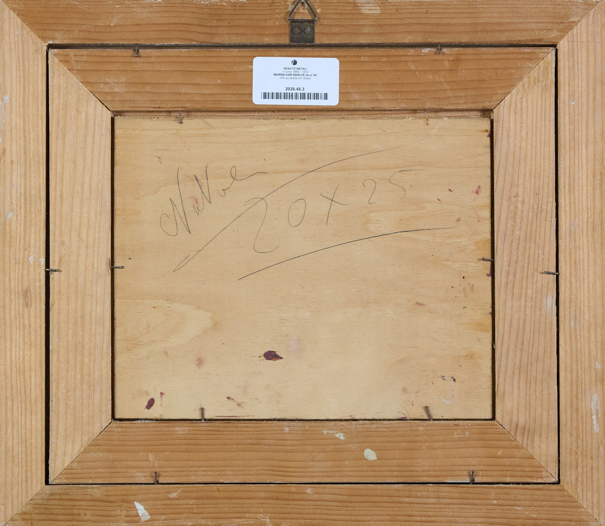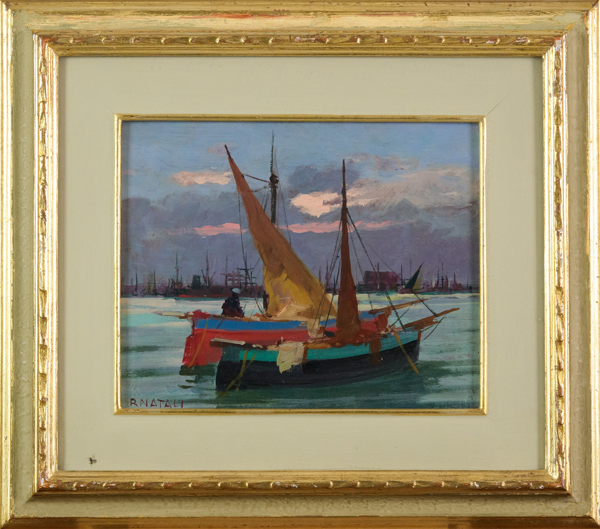 Renato Natali (Livorno, 1883 - 1979) Marina con barche Anni '40 Olio su...