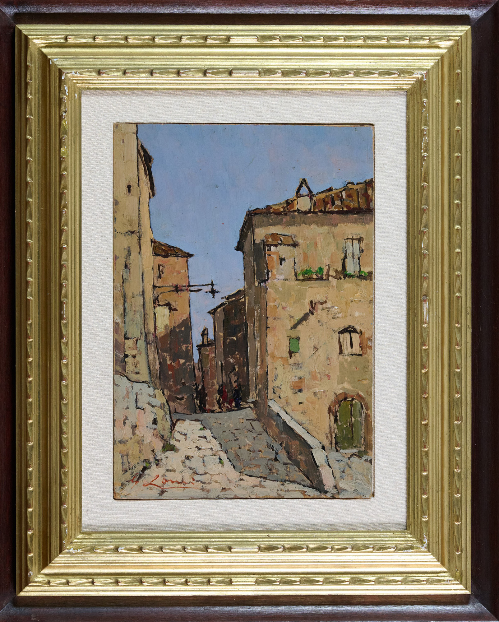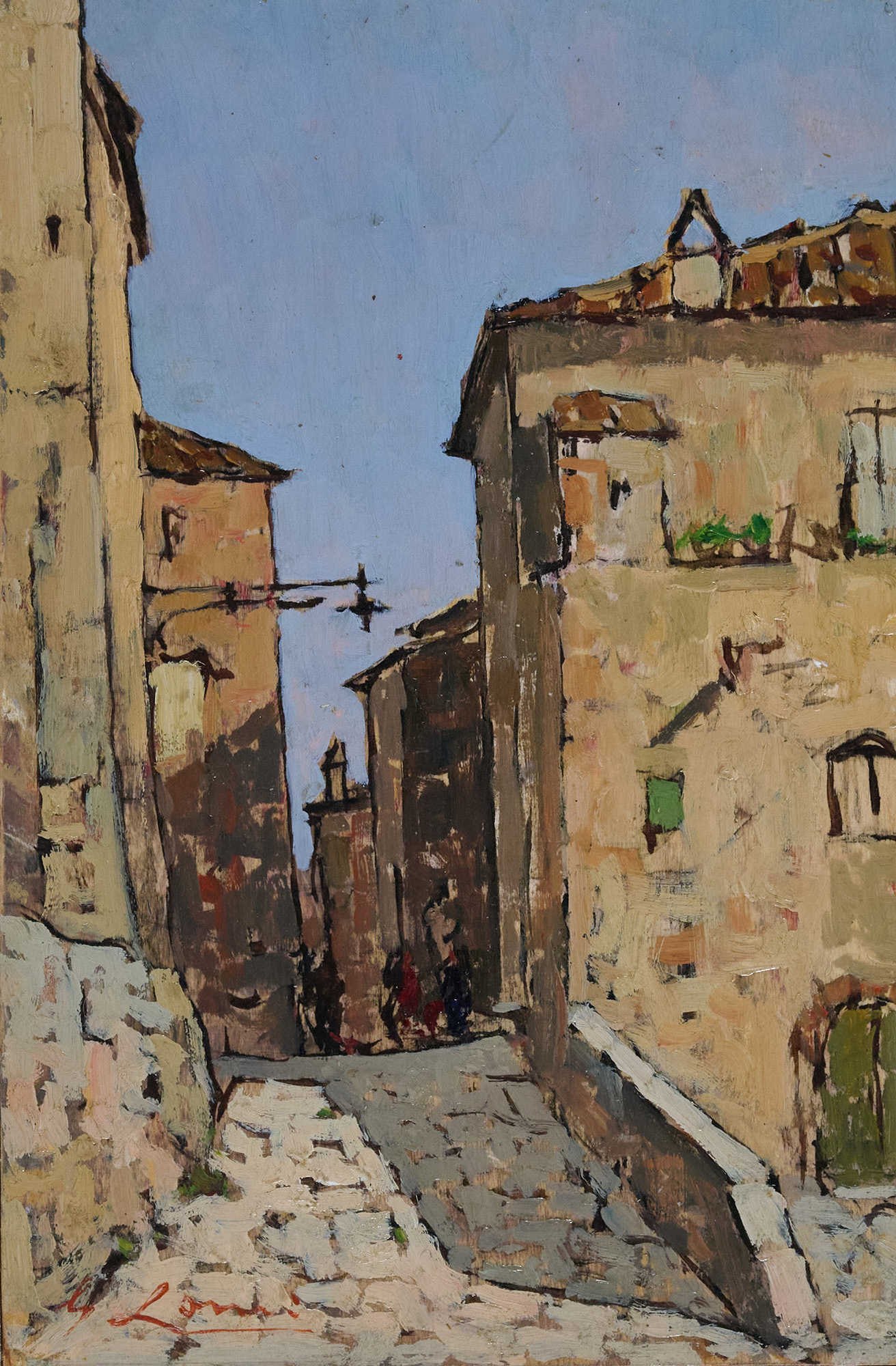 Giovanni Lomi (Livorno, 1889 - Livorno, 1969) Via di mezzo Olio su tavola cm....