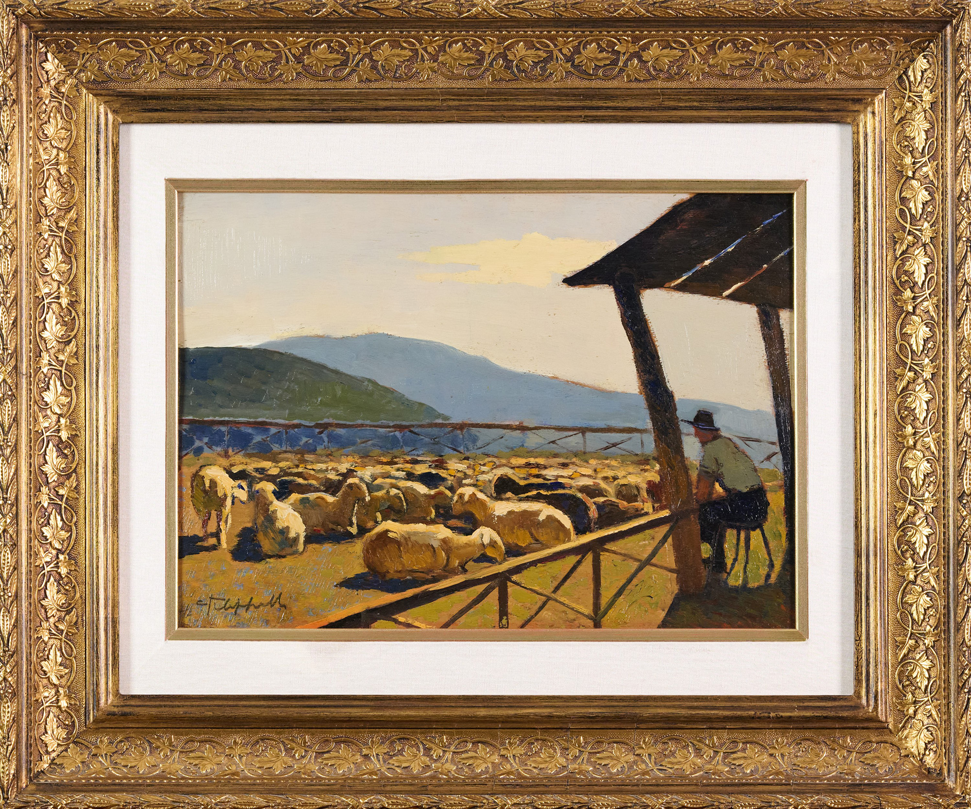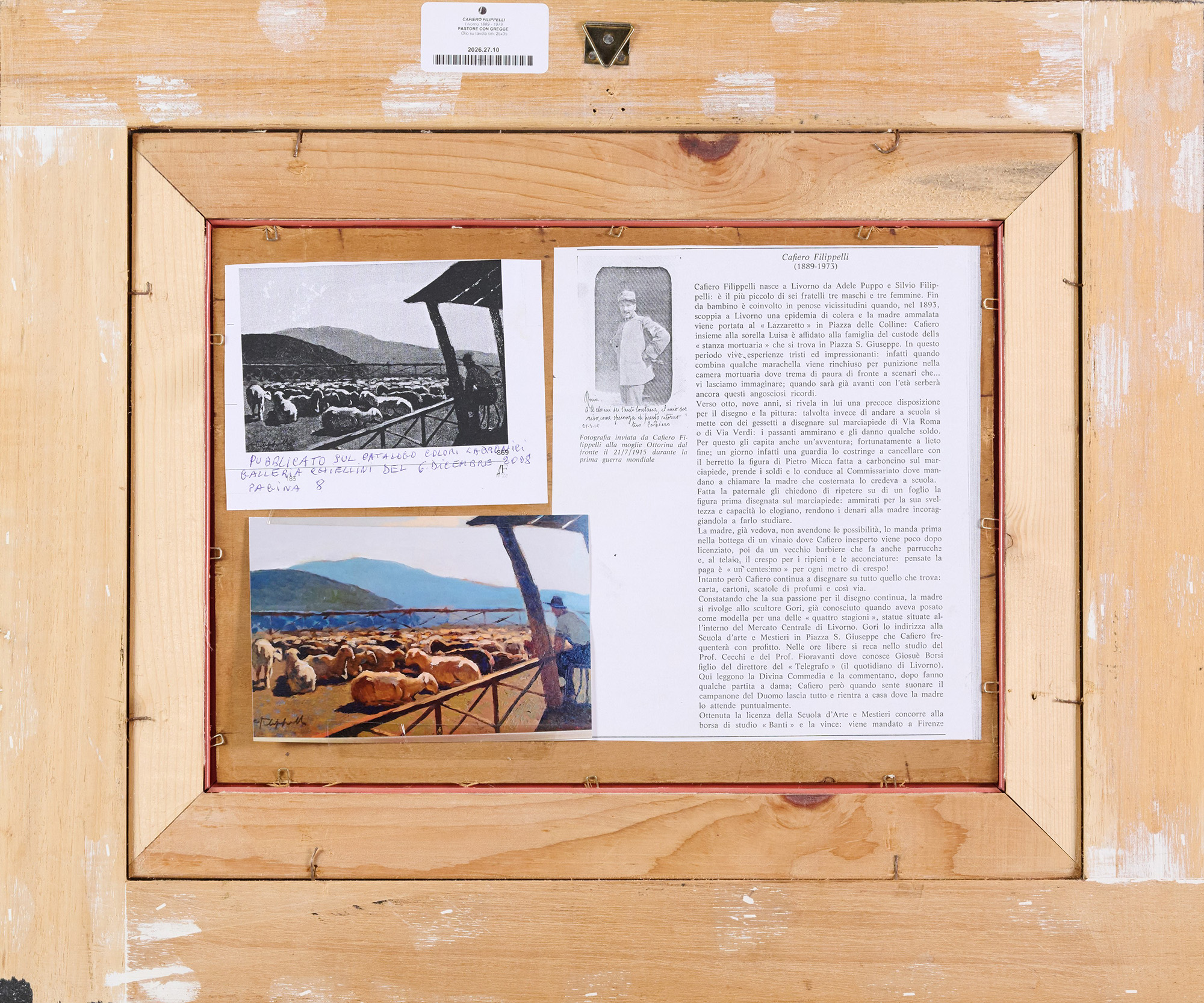 Cafiero Filippelli (Livorno, 1889 - 1973) Pastore con gregge Olio su tavola...