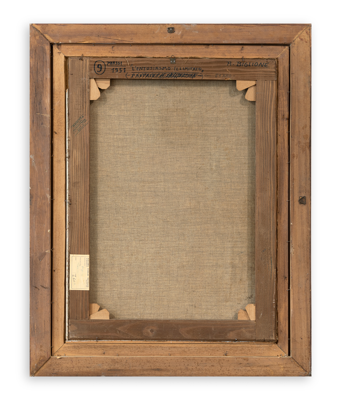 Etichetta della Galleria Ferrari (BG) al retro