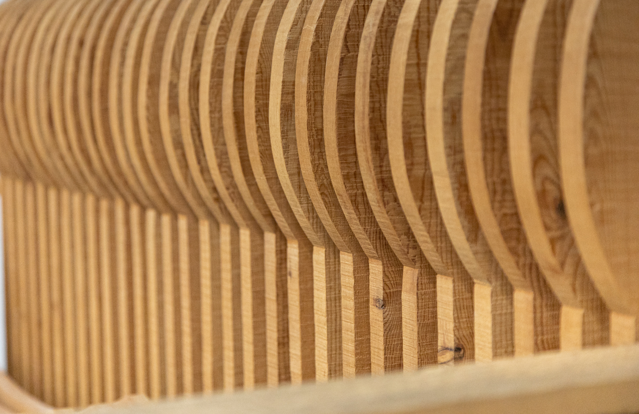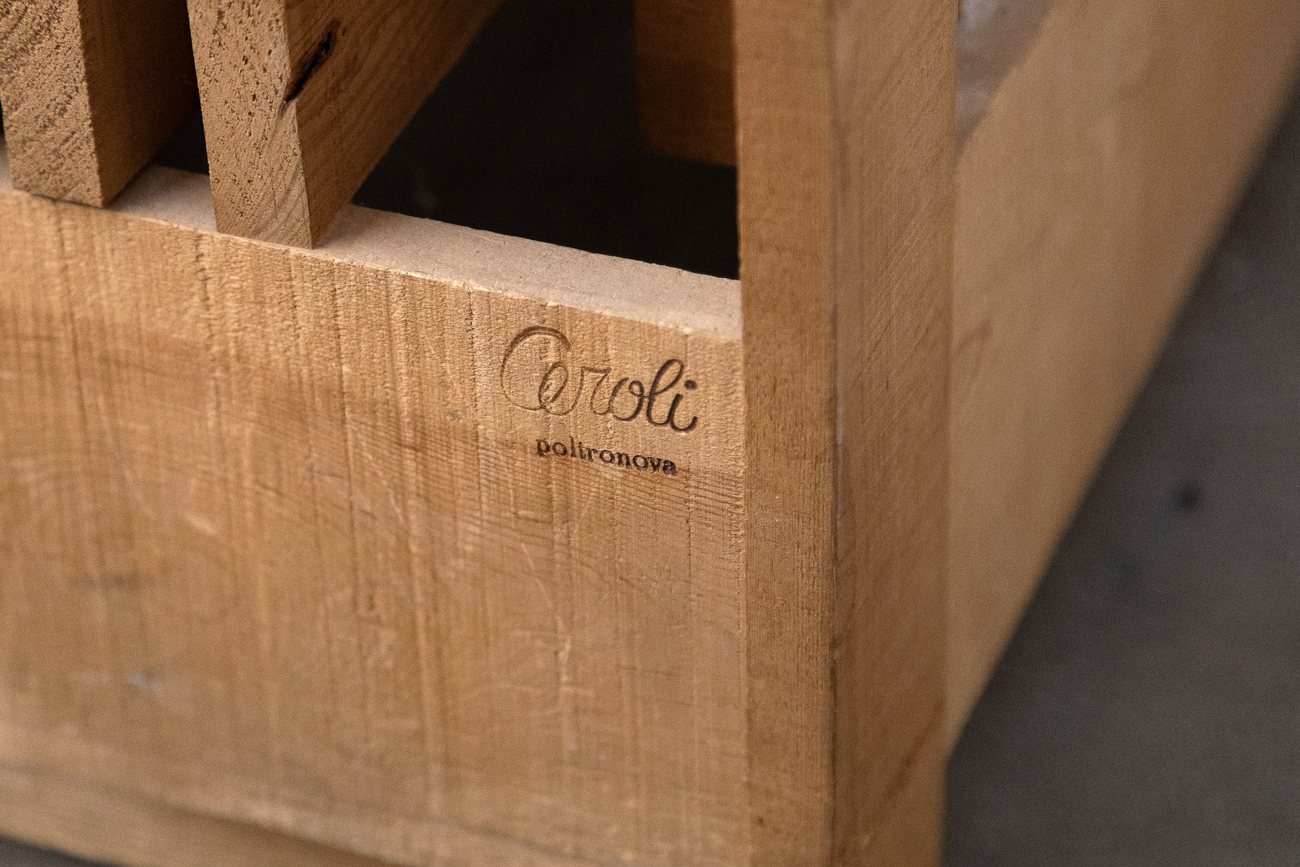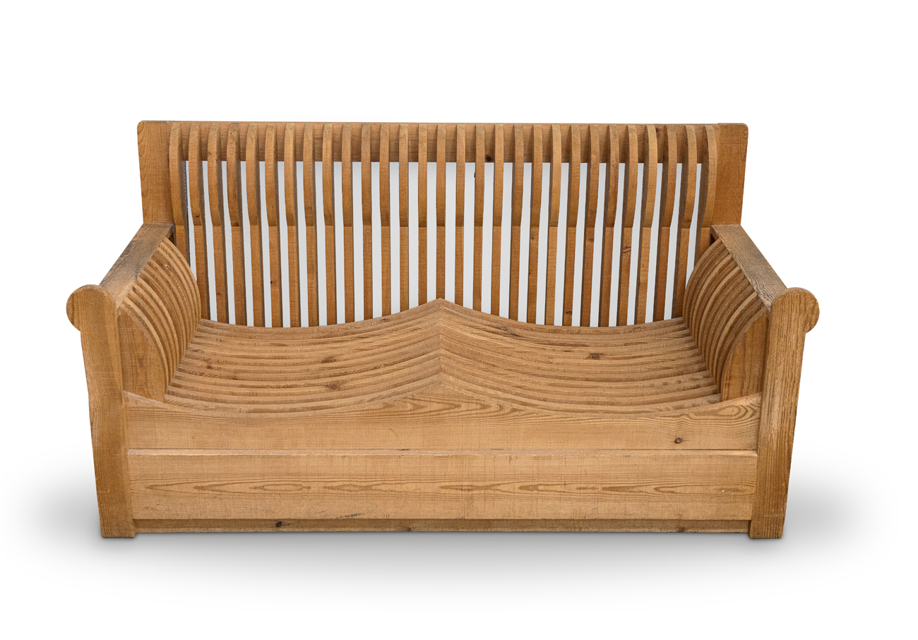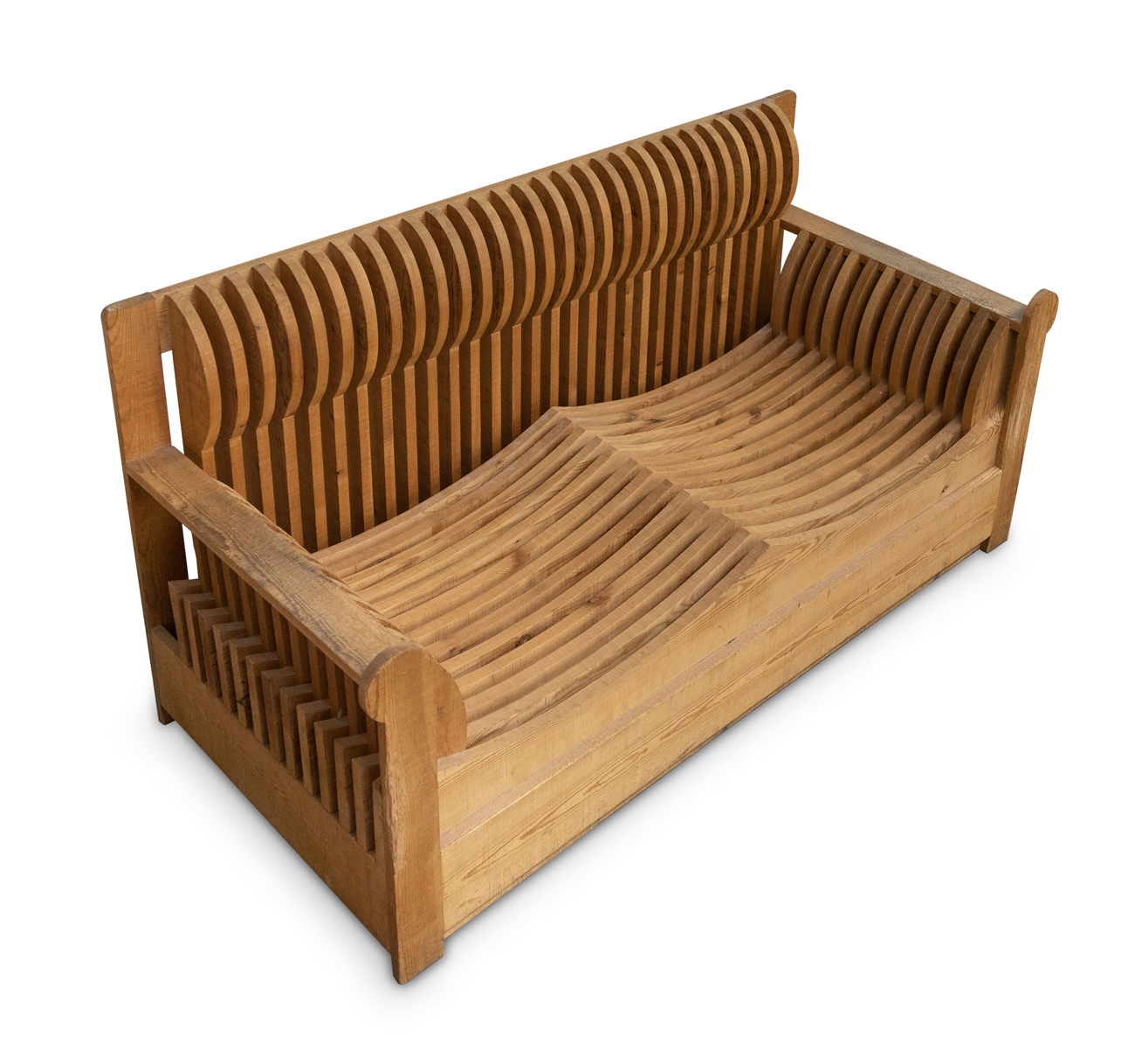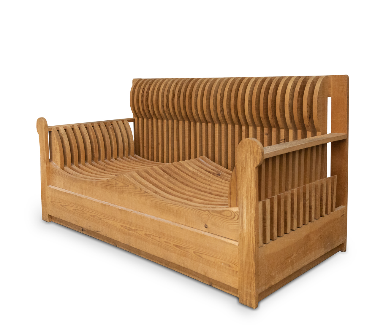 Divano a due posti modello 'DC2' della serie 'Mobili della Valle' in legno di pino grezzo