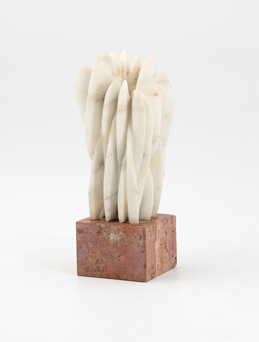 Scultura in marmo bianco su base in granito
