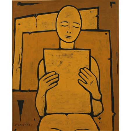 Felice Casorati (1883/1963) "Uomo che legge" Tempera su cartone in cornice. Opera archiviata su carta dal Prof. Cavallo per l'Archivio Casorati. Expertise sul retro del Prof. Alberto Perlenghini, Genova. Cm 55x45
