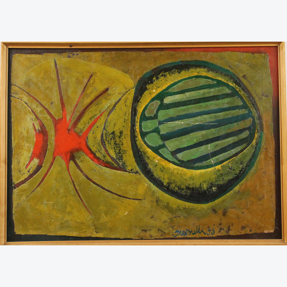 Gigi Martorelli (1936/2015) "Astratto" Dipinto ad olio su tela (danni). Cm 50x70