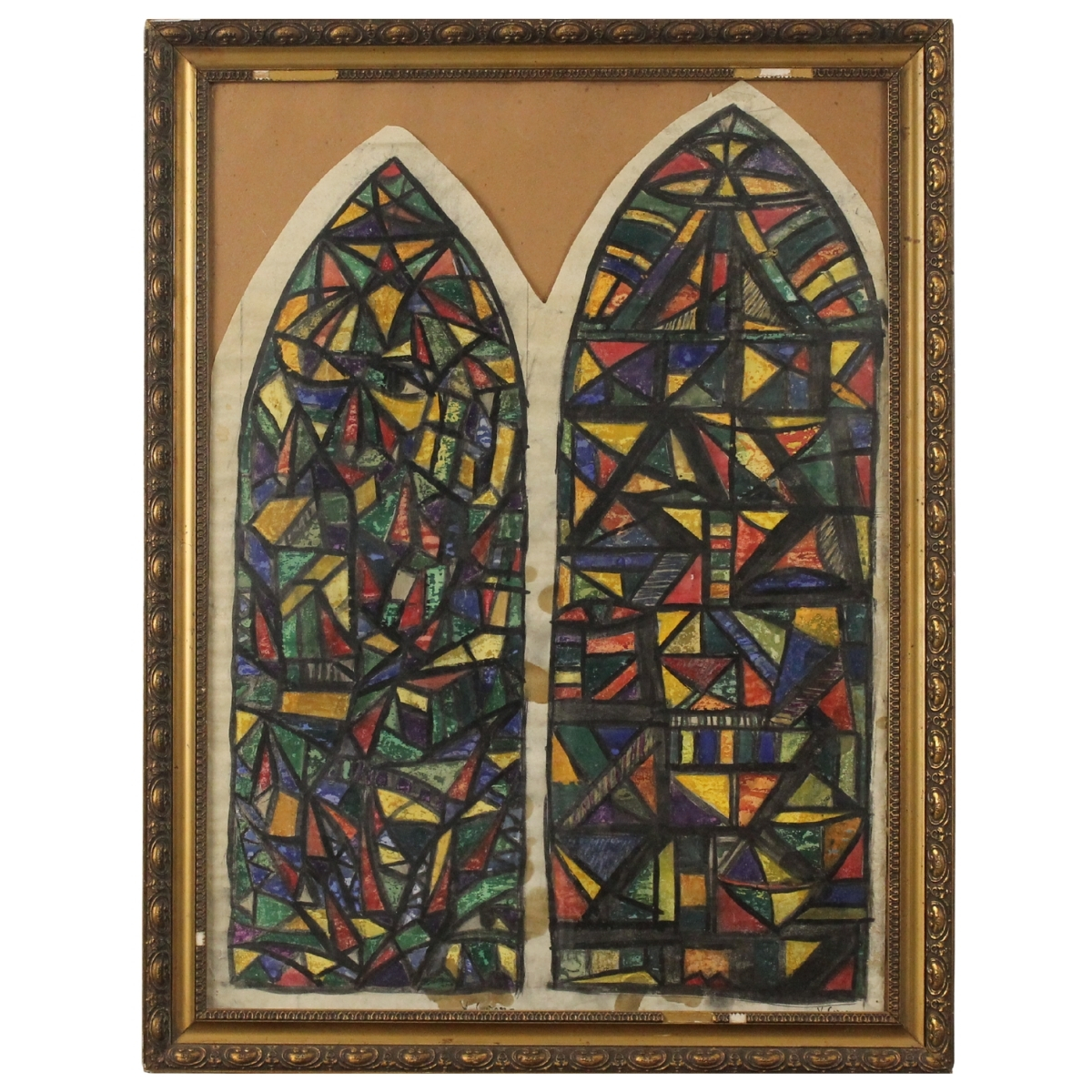 Vittorio Corona (1901/1966) "Studi per vetrate" Coppia di pastelli su carta in cornici in legno dorato (danni). Cm 68x50