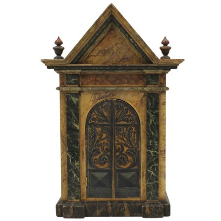 Tabernacolo Legno laccato con decoro a finto marmo e motivi vegetali policromi. Sicilia. Secolo XIX. Cm h 43