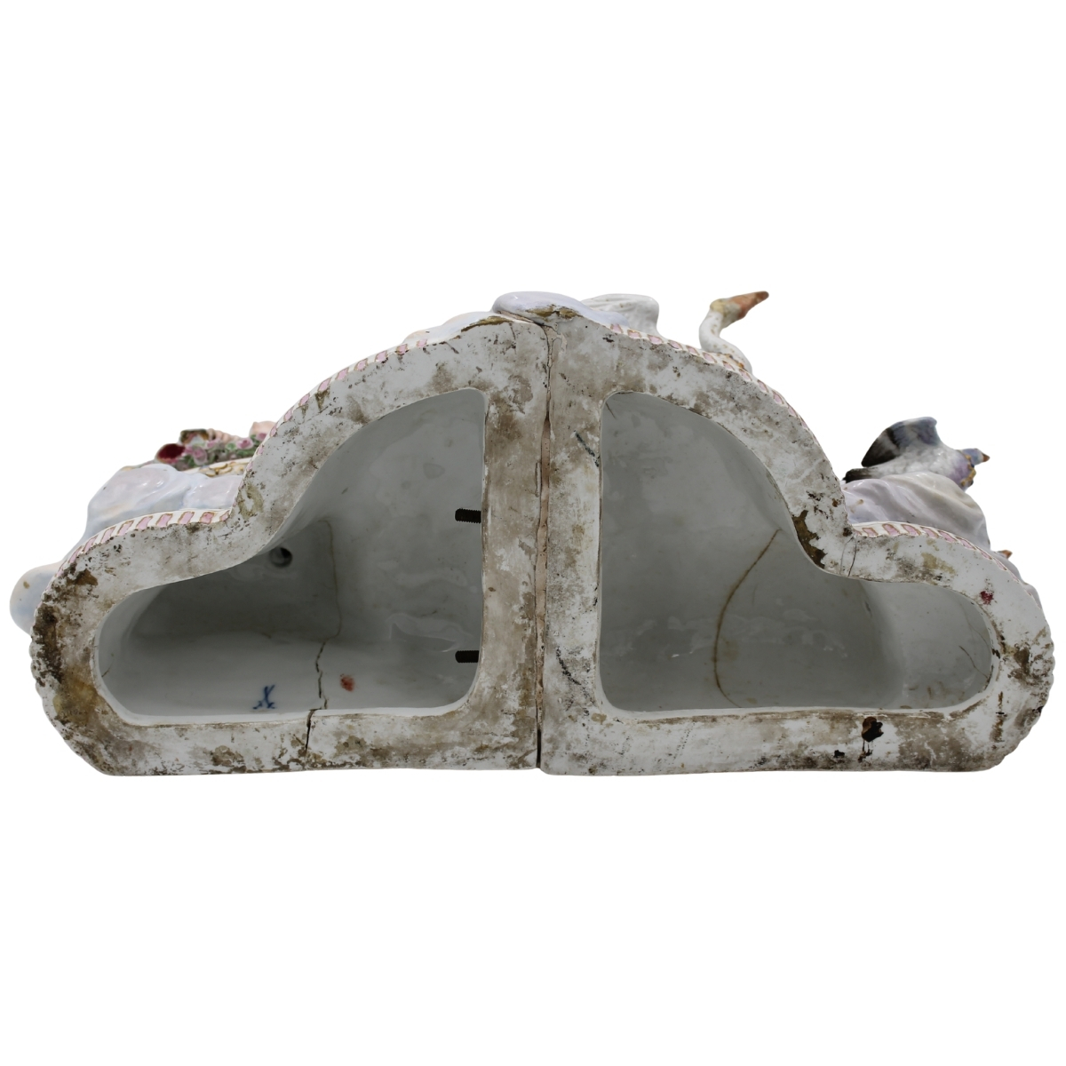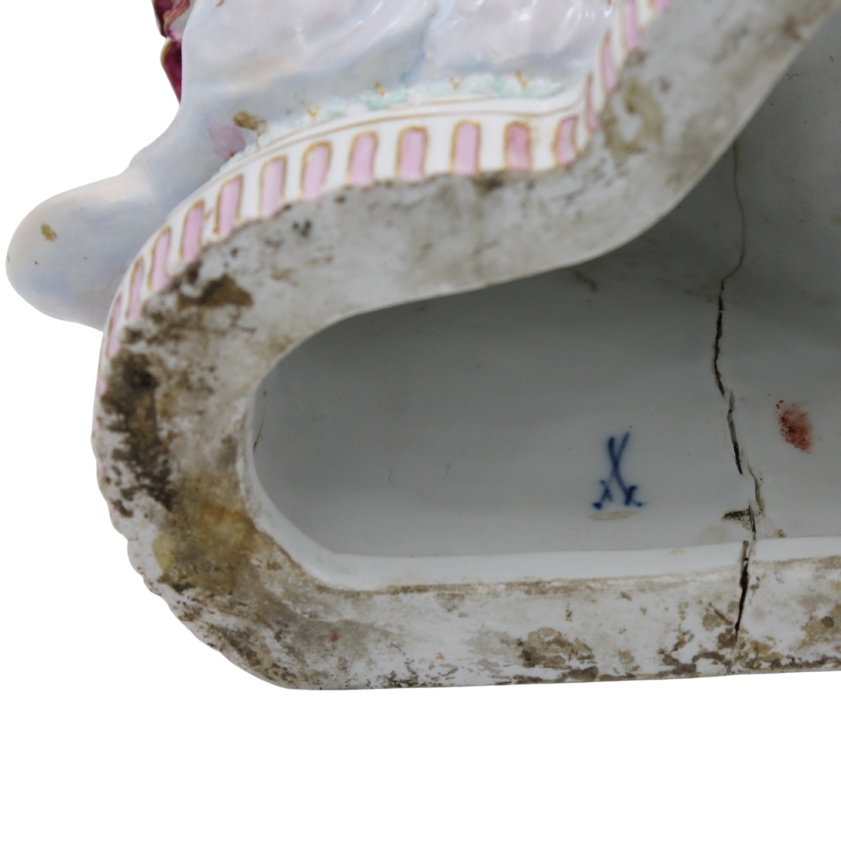 "Carro di Venere" Grande gruppo in porcellana policroma Meissen (restauri e mancanze). Fine secolo XIX. Cm 45x20x29